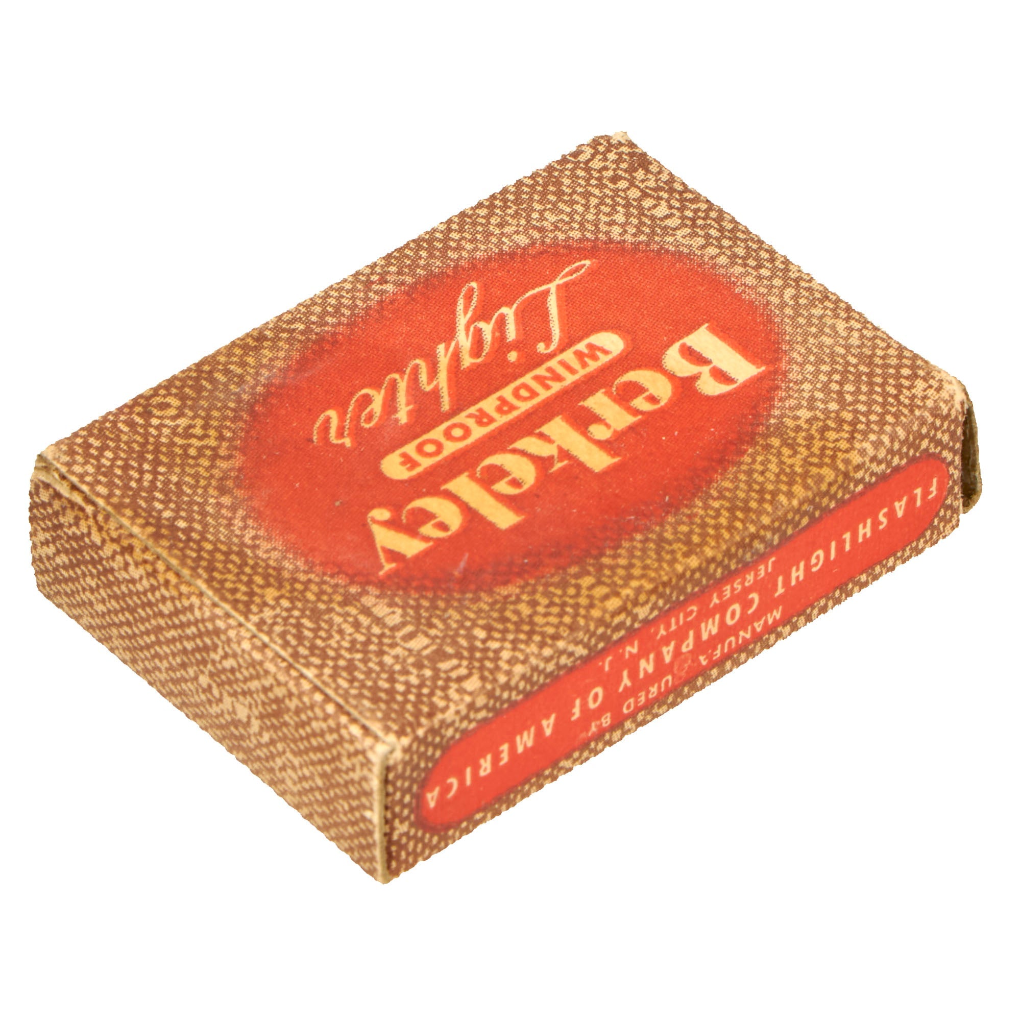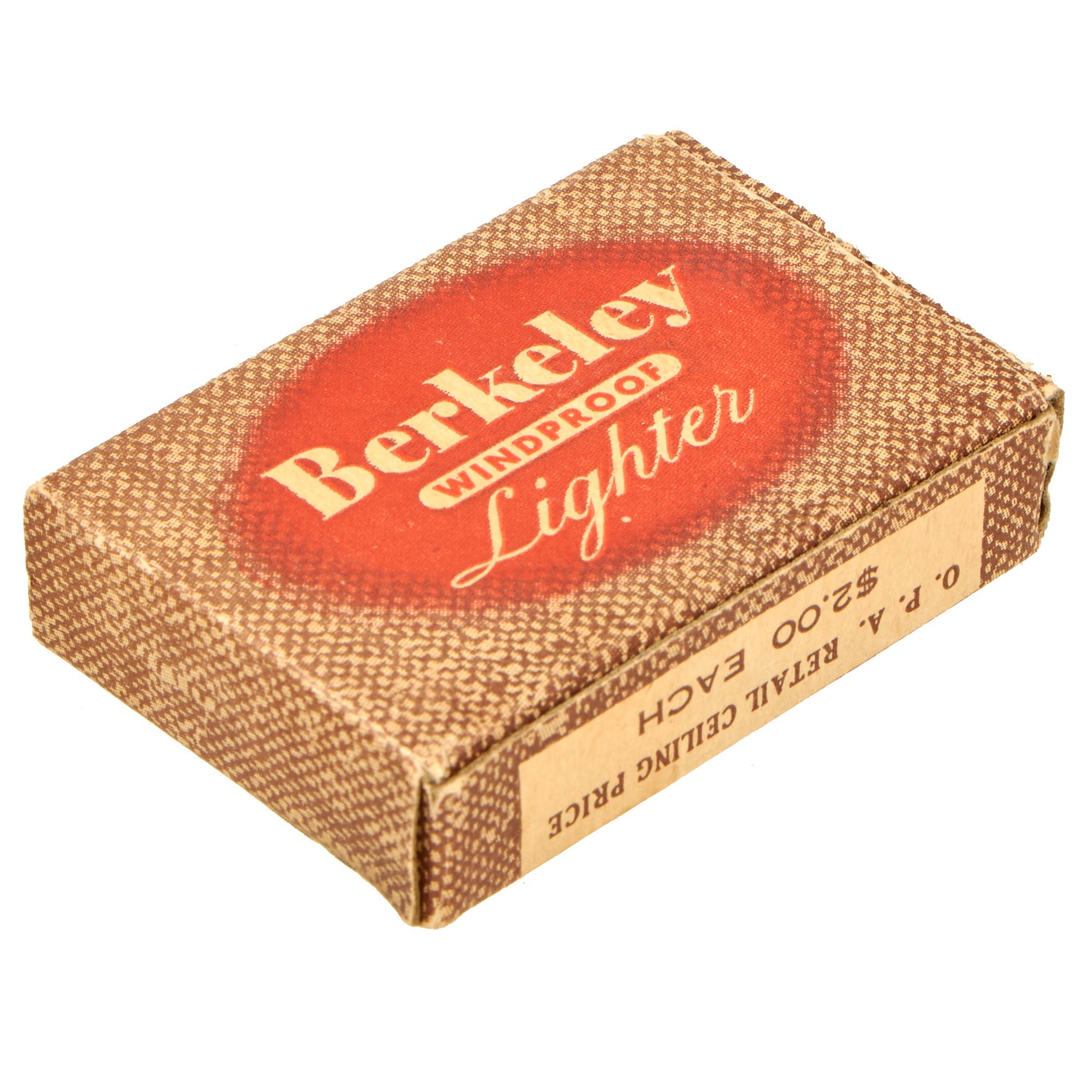 Berkeley Windproof lighter in original box. Some wick remaining, likely would work with some TLC.