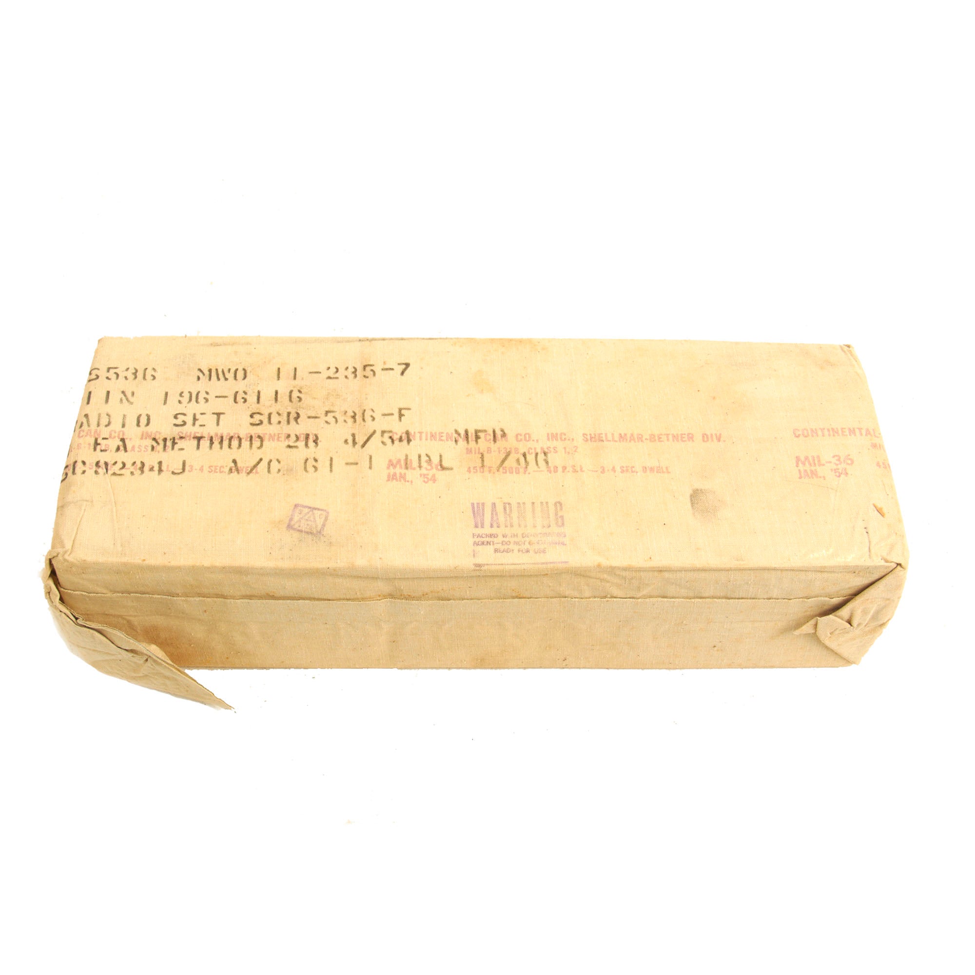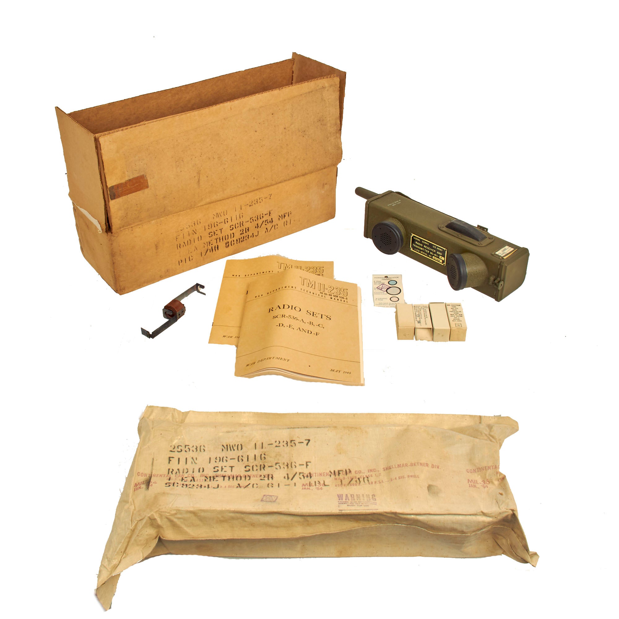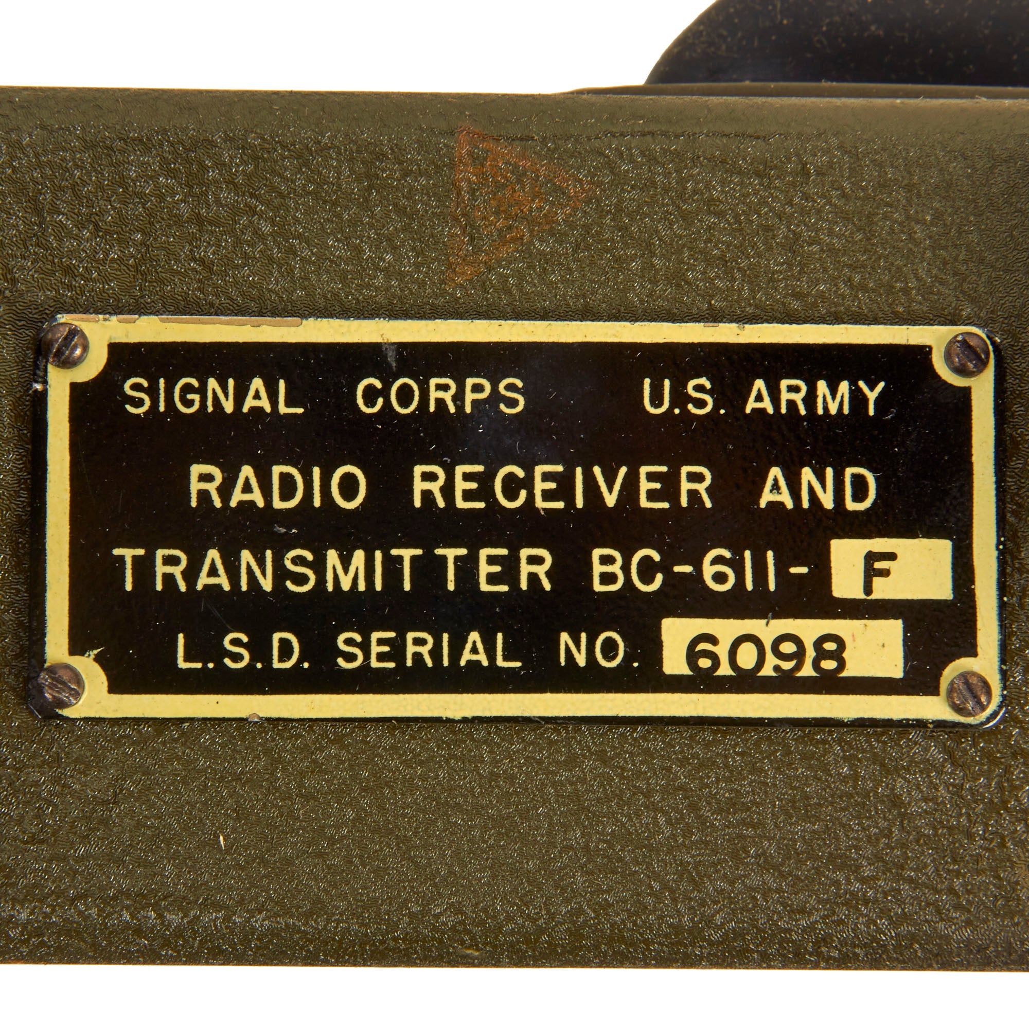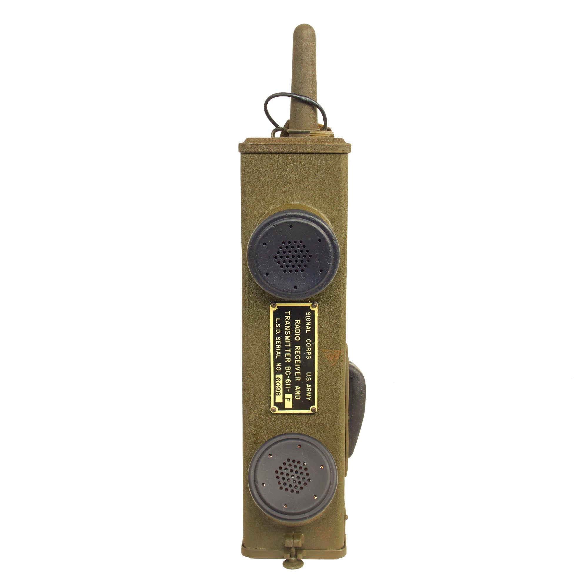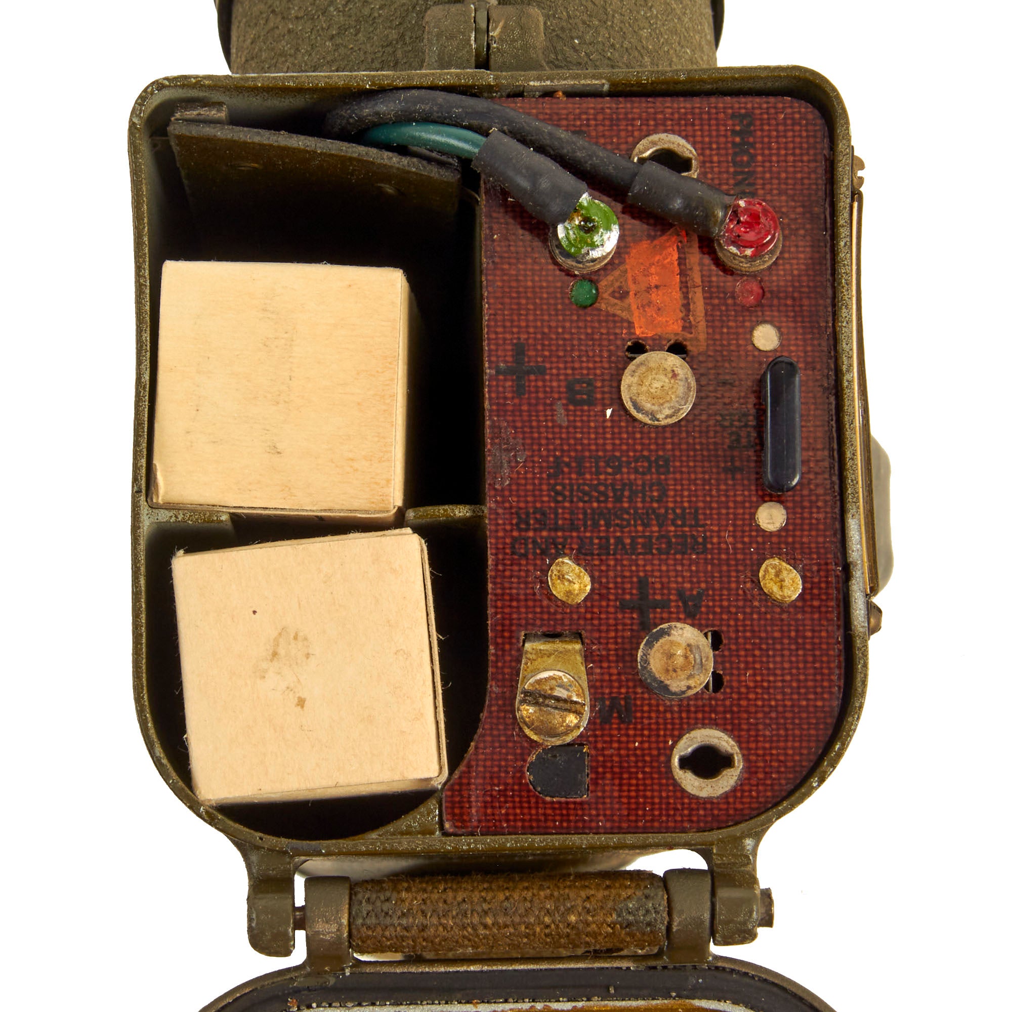 Original Items: Only One Available. This genuine WW2 issue BC-611 hand-held radio is offered in excellent unissued condition. It has not been tested for functionality but appears complete and undamaged. The inner box has the the complete complement of tubes and the manuals that came with these when issued new, and was contained in a hermetically sealed moisture package dated JAN., '54, and remained unsealed until it was photographed. The box is dated a few months later at 4/54, so this has been completely untouched for just under 50 years! The moisture seal was good, making this a fantastic opportunity for a radio enthusiast looking for top quality unit!