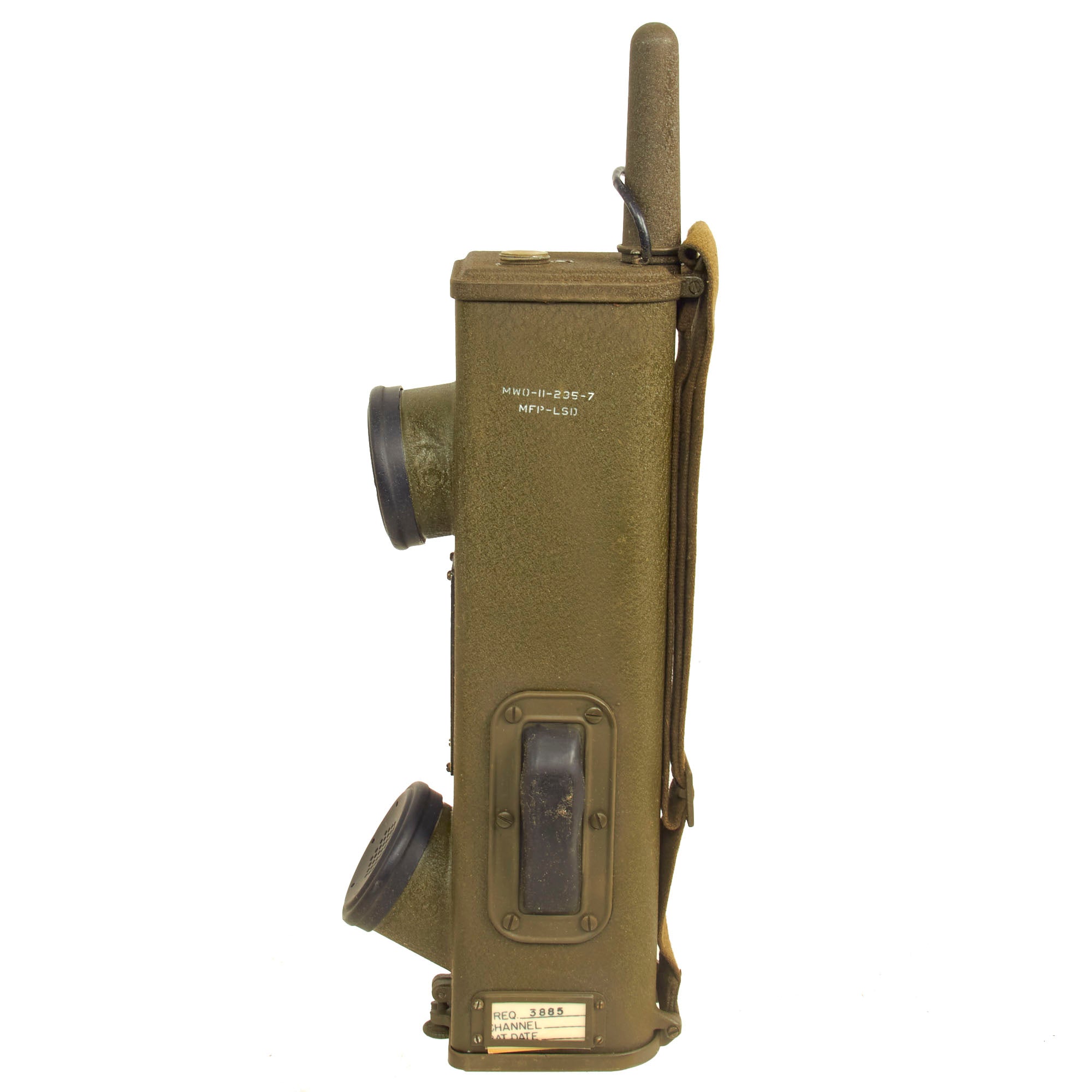 These are popularly referred to as walkie talkies, although they were originally designated as "handie talkies”. This fine example still has the original data plate on the side: