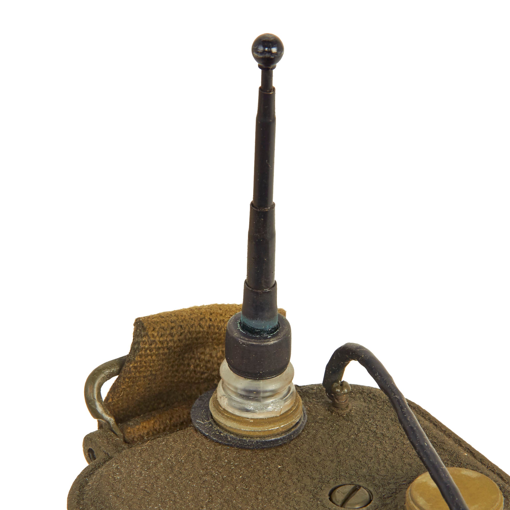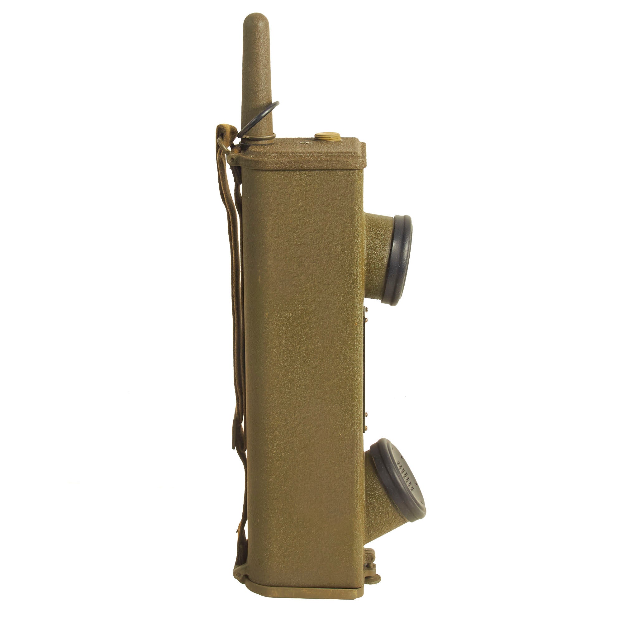 The battery door opens, and the contacts appear to be in good condition. It also still has its complete extendable antenna with removable cover. The sling is complete, and in very good condition. Overall this is a great Handie Talkie radio, complete with all the original accessories, ready to add to your collection, or to use in reenactments!