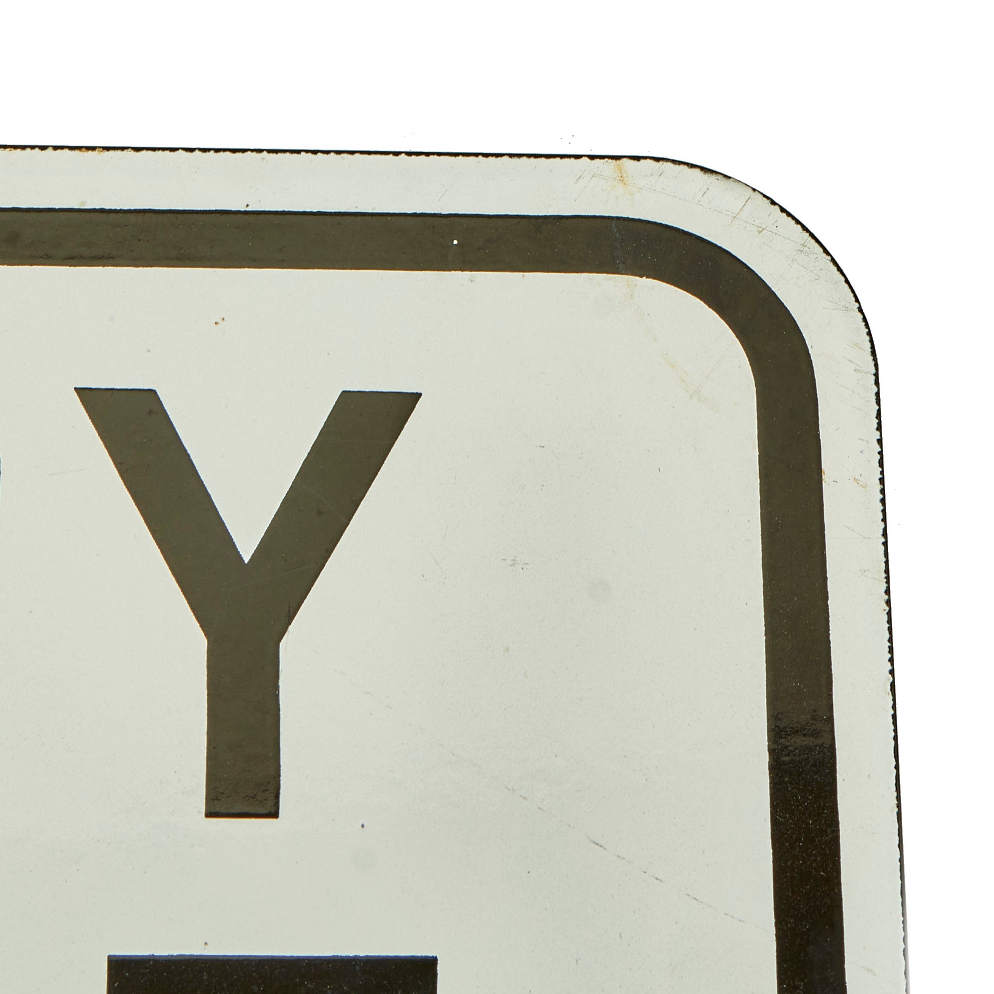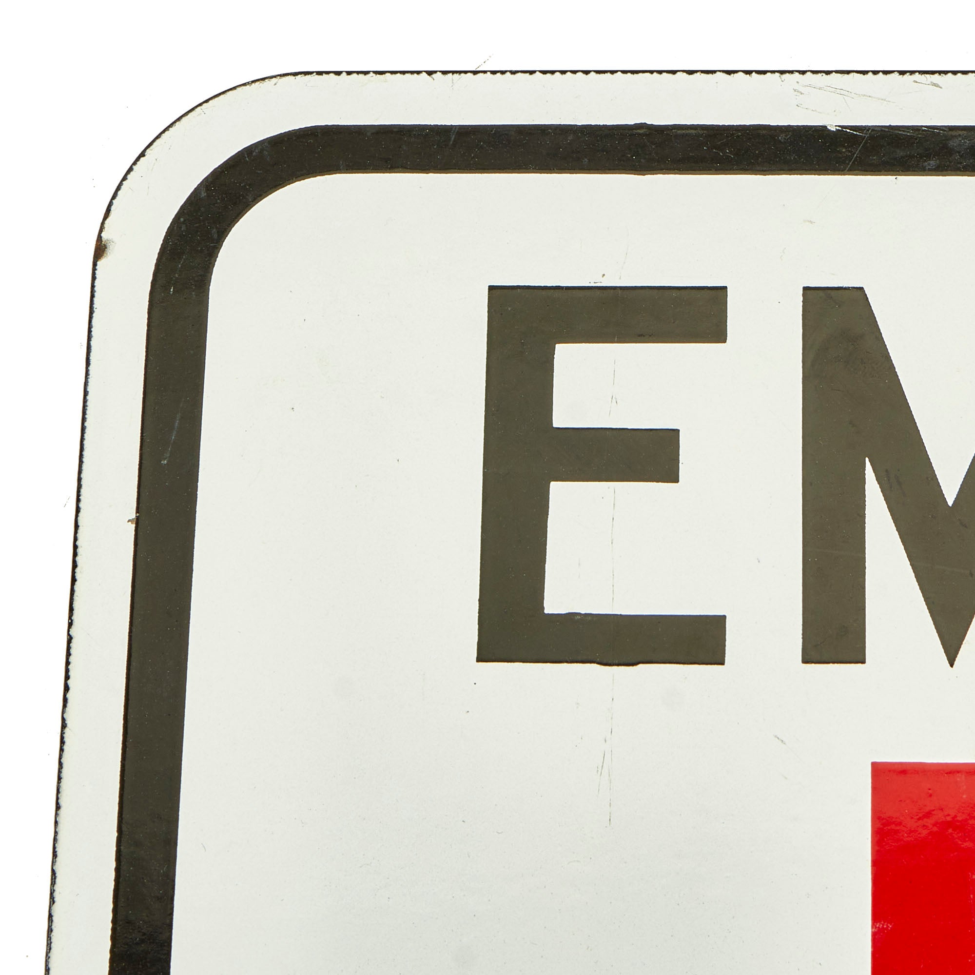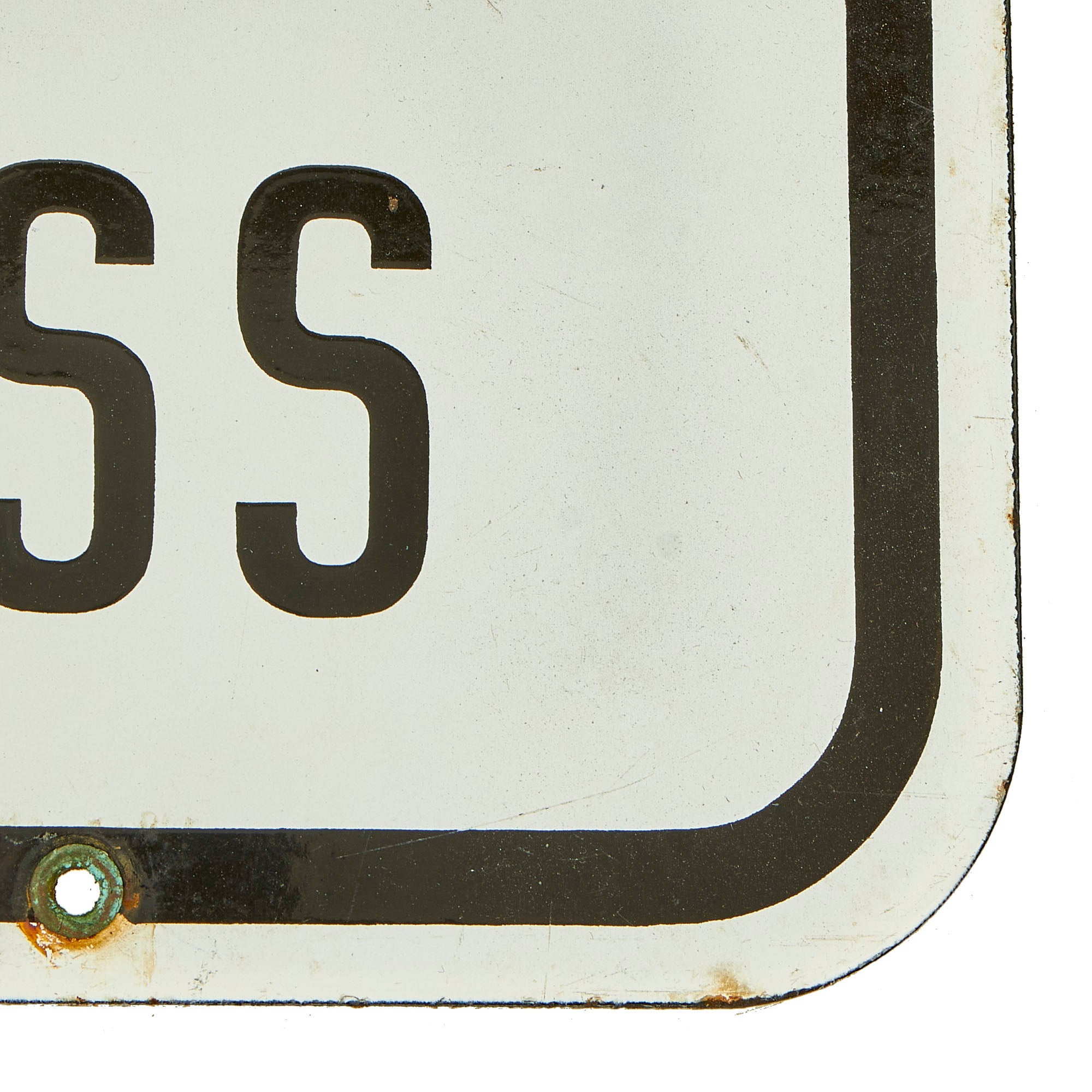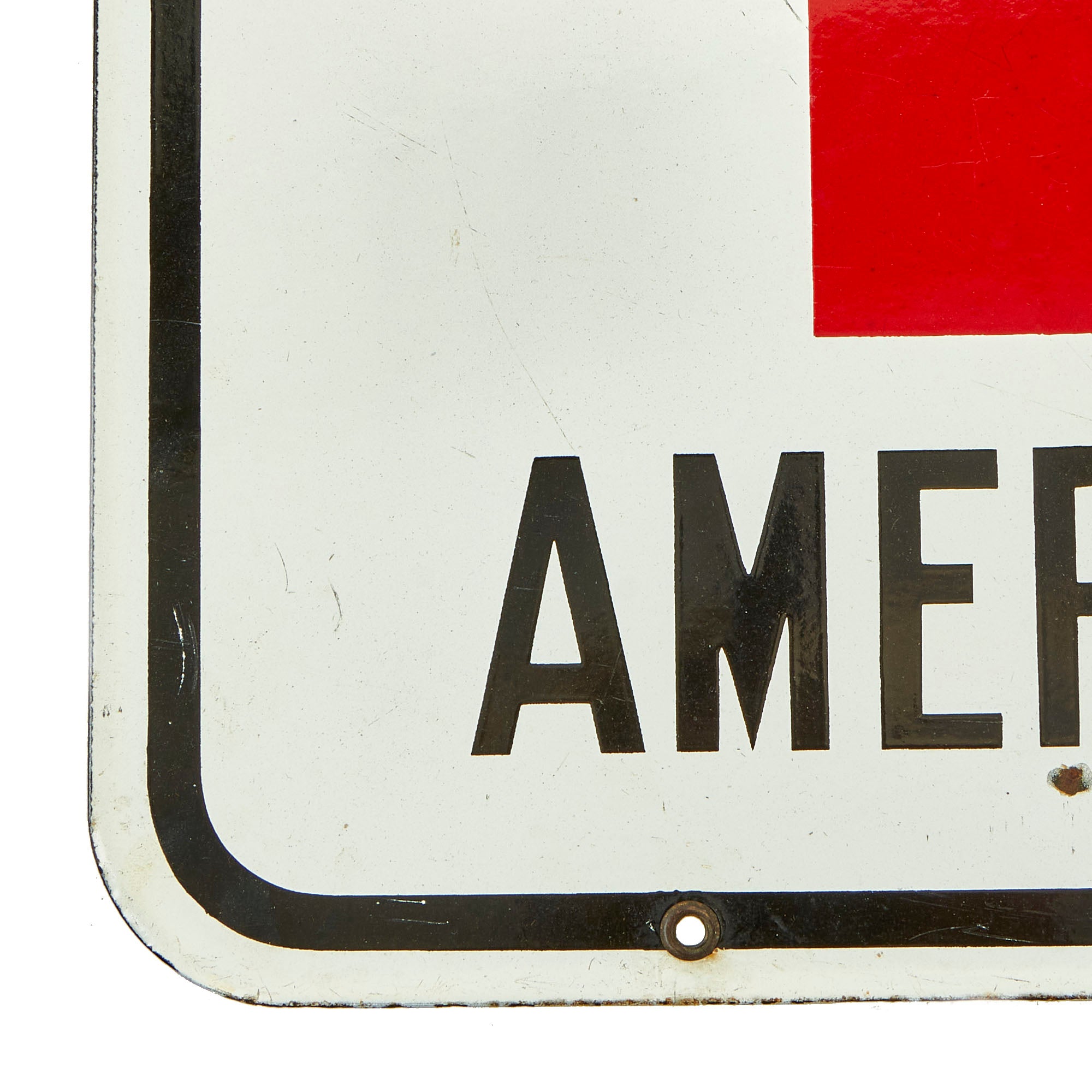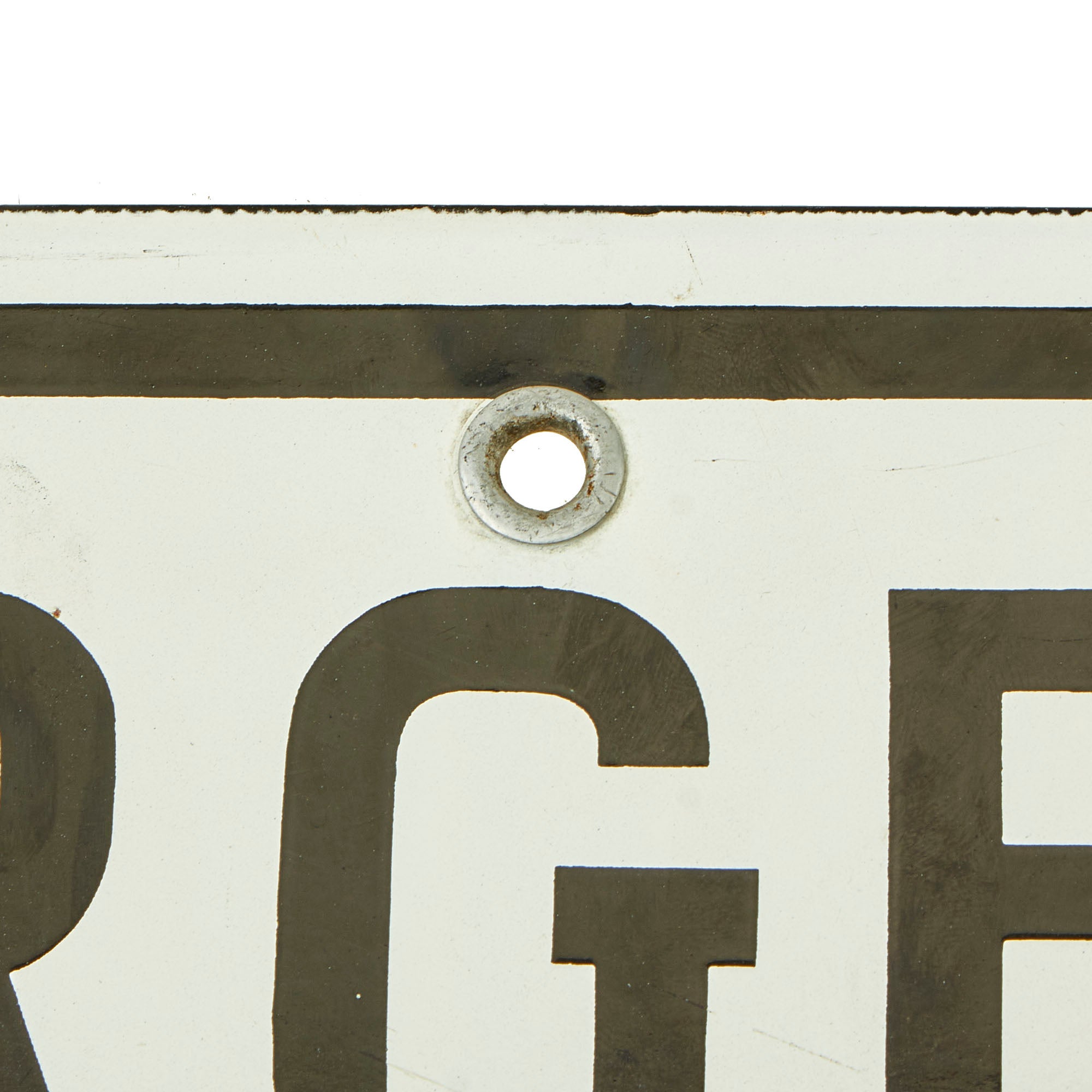 This wonderful example stood the test of time and has retained nearly all of the original porcelain with minor areas of loss. The areas that chipped away are now oxidized but do not subtract from the beauty of it. There are holes still present for means of hanging the sign.