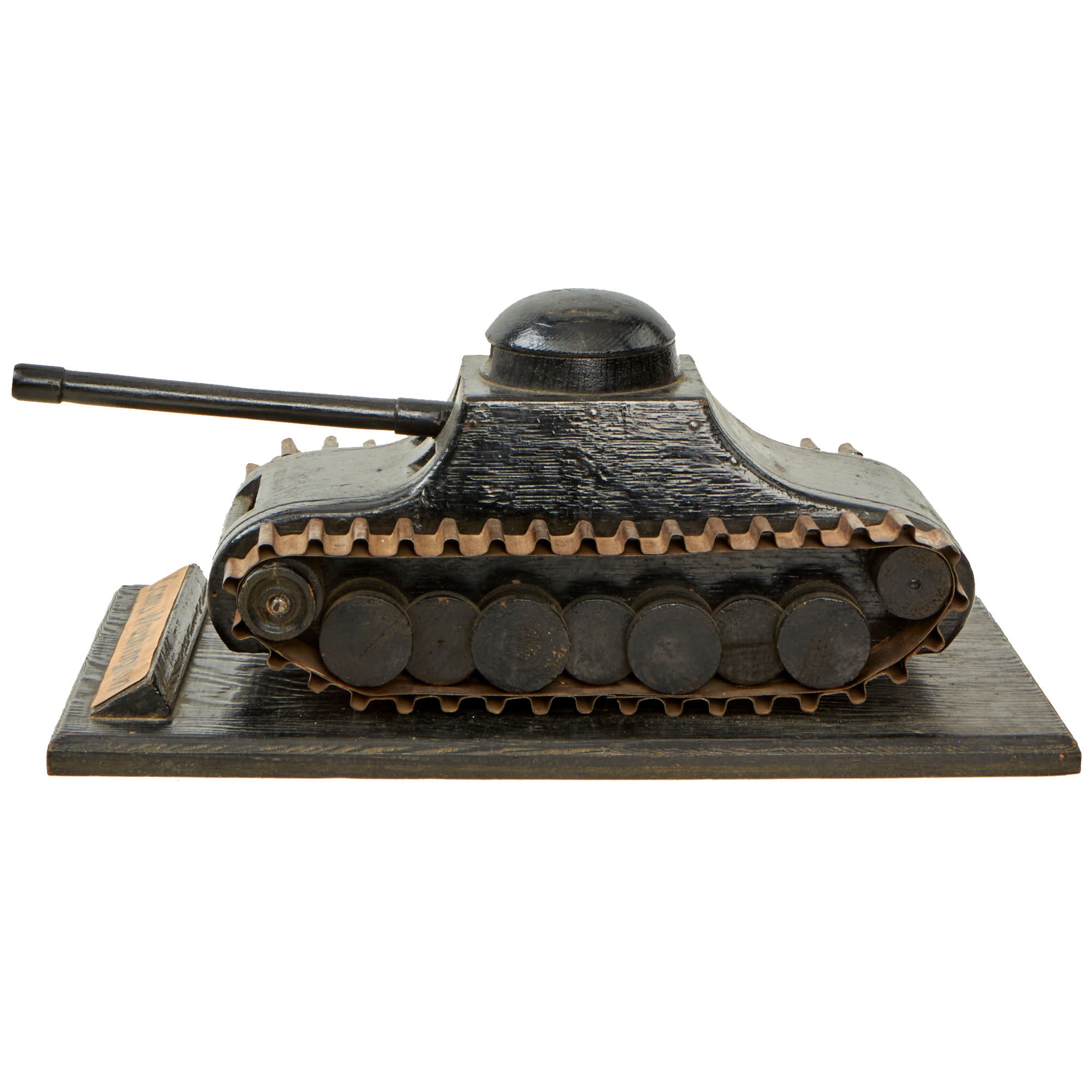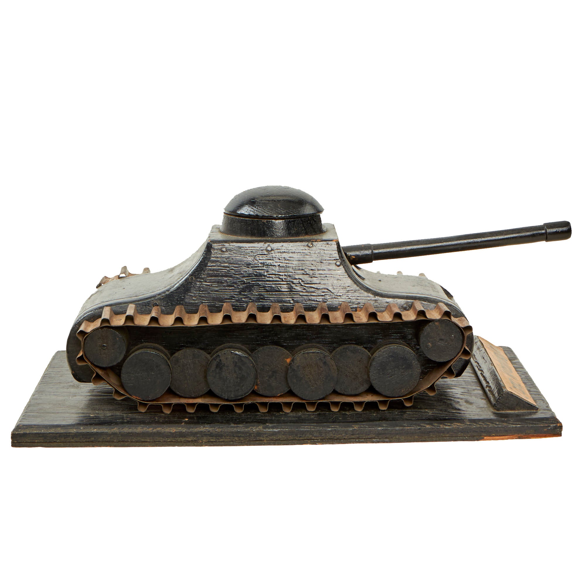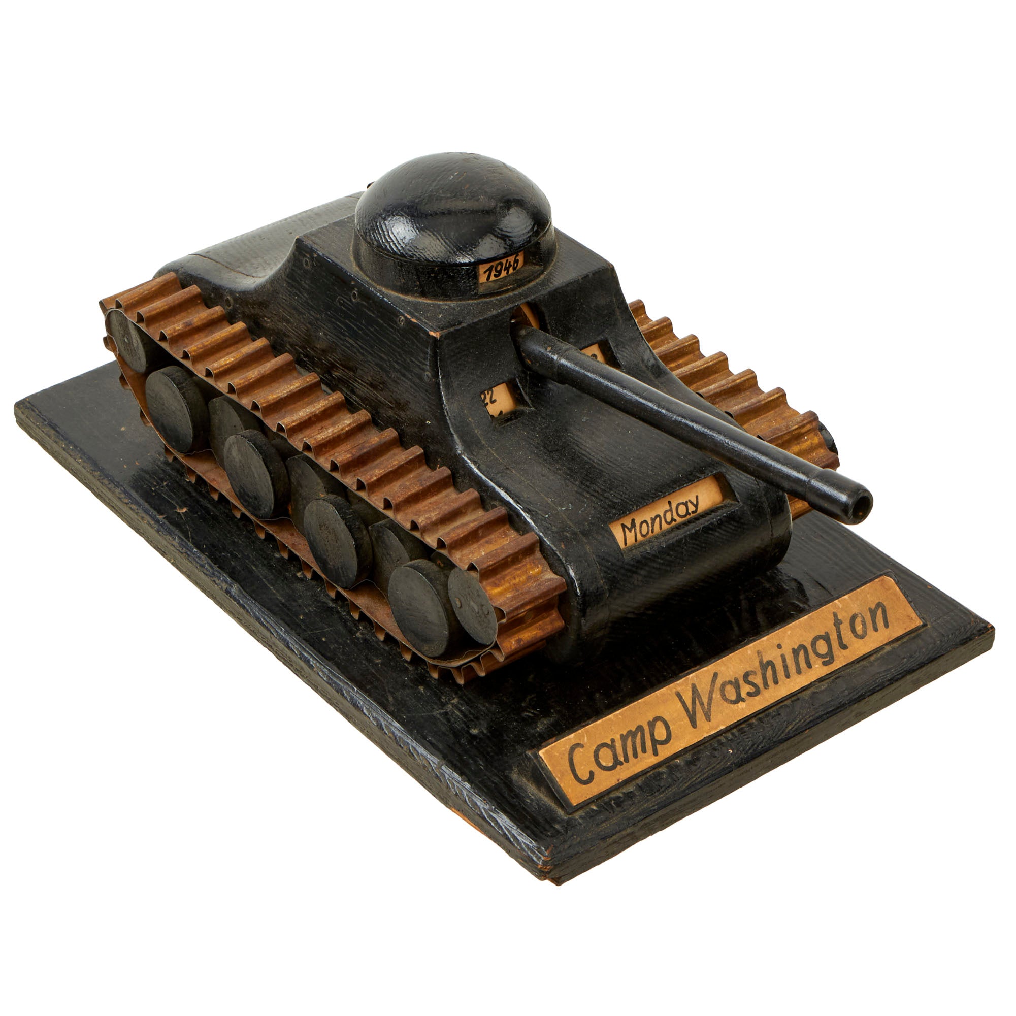 Original Item. One-of-a-Kind. This is an absolutely tremendous piece of POW-made trench art, a Tank Calendar with pieces that rotate to change the year, month, day, and weekday, made in 1945 by a German Prisoner of War at Camp Washington in Washington, Illinois. POW Trench art has always been very desirable, and this is a stellar example.