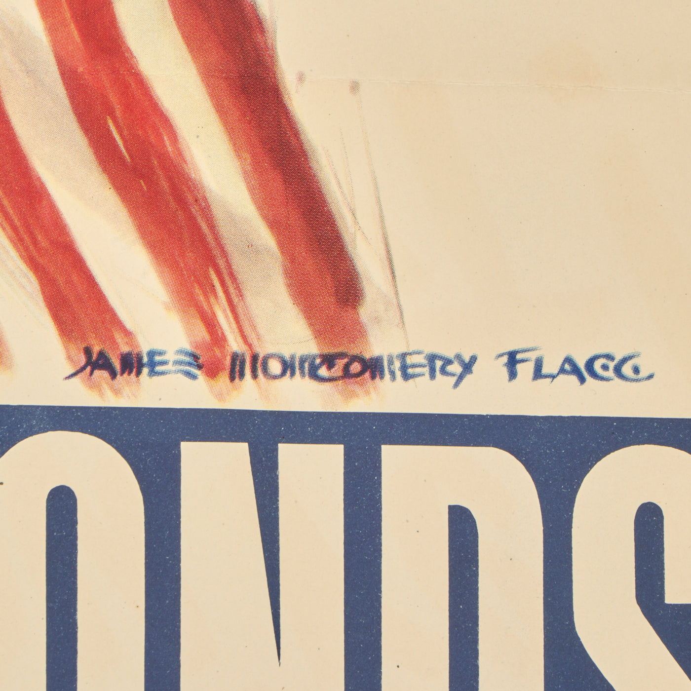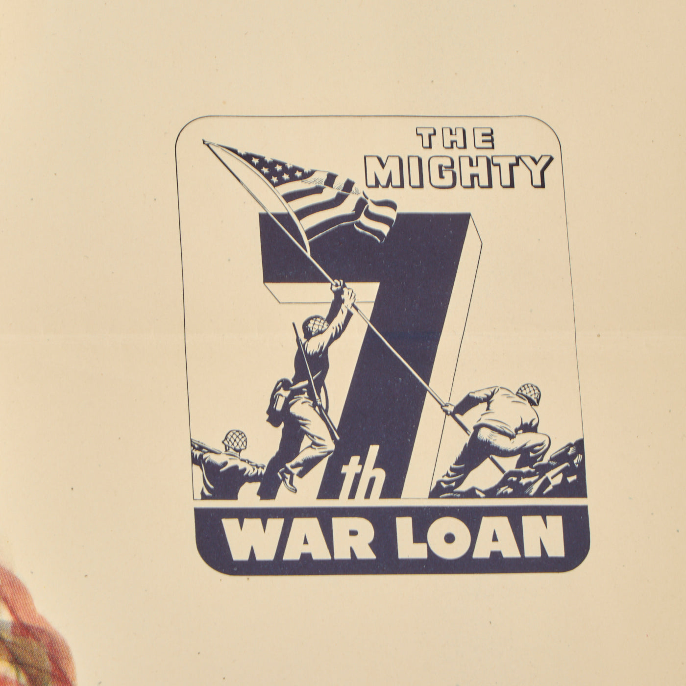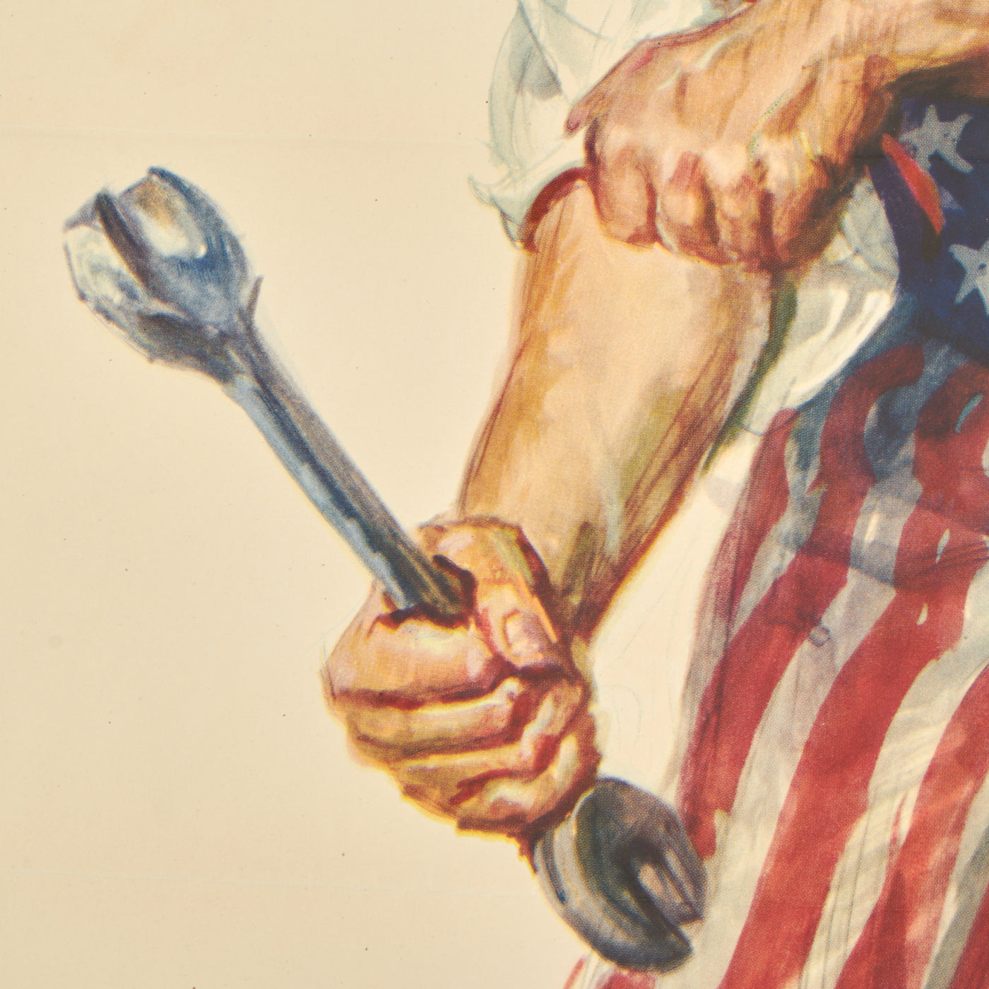 Only One Available. This U.S. WWII Poster is in great condition and is one of the most iconic and sought after home front posters from World War Two. The poster shows Uncle Sam rolling up his shirt sleeves. On the right is an icon for the 7th War Loan. This poster was designed by James Montgomery Flagg. He was an American illustrator, poster artist and portrait painter known for his World War I recruiting poster of a pointing Uncle Sam with the caption “I want you”. This poster was also reissued during the second world war.