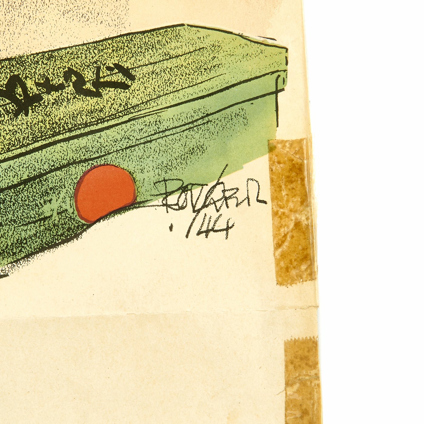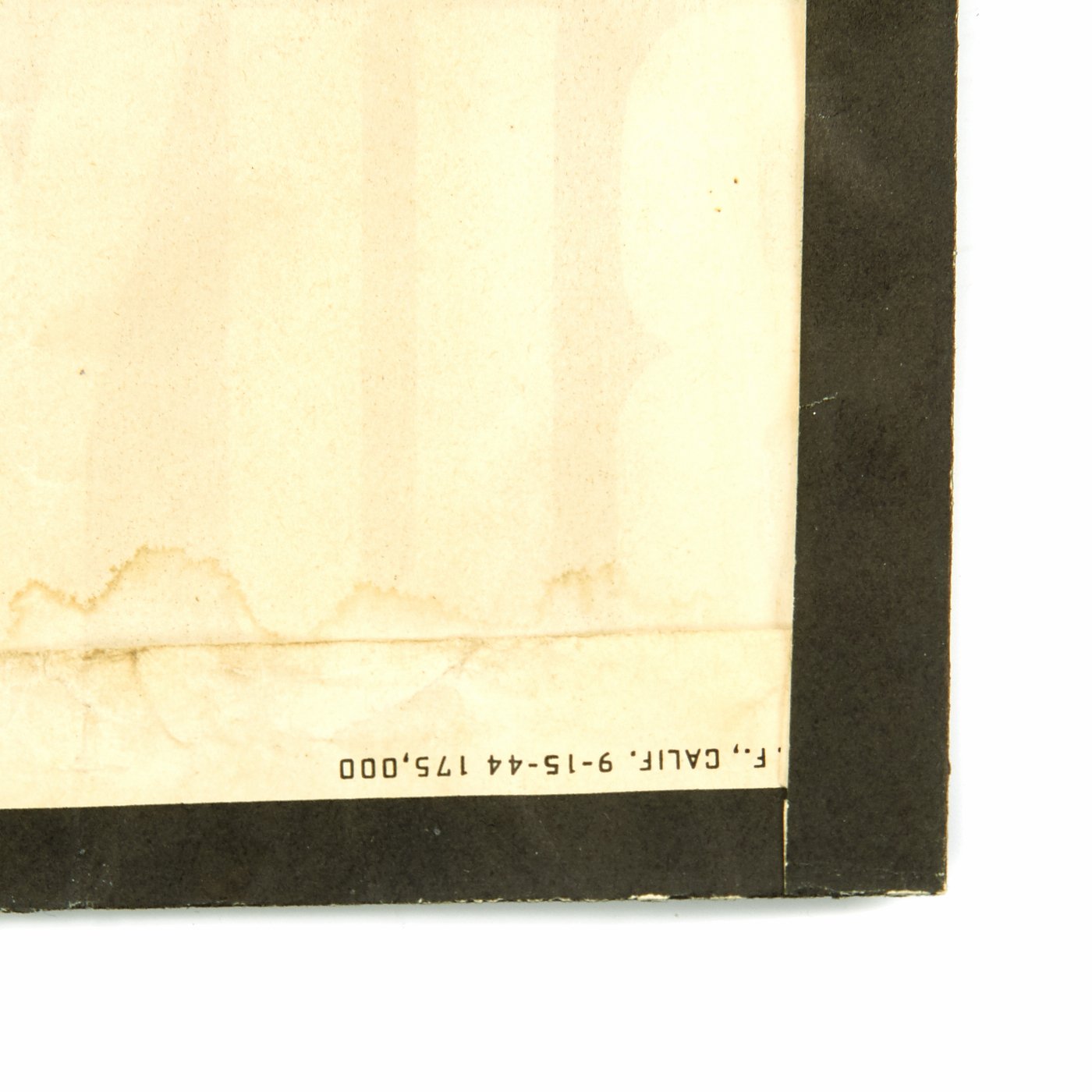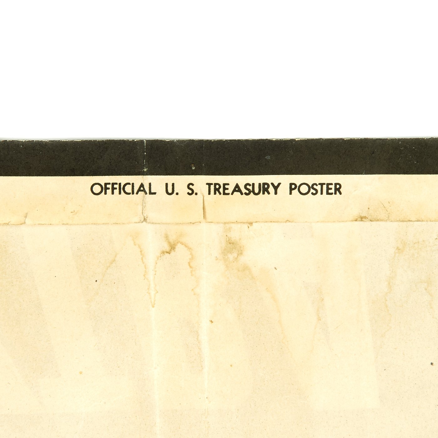 This U.S Treasury Department World War II war bonds poster depicts a confused American Marine on a beach in Japan, telling the viewer, "Don't tell me the war's over," to remind the homefront that although the Germans had been defeated in Europe, the war still continued in the Pacific, and support was still needed. An unrestored poster with good color and an overall very presentable appearanceIt has edge and fold wear, minor fold separation, creasing, rippling, small chips and tears, staining, some smudges, old areas of mounting tape along the edges and minor toning.