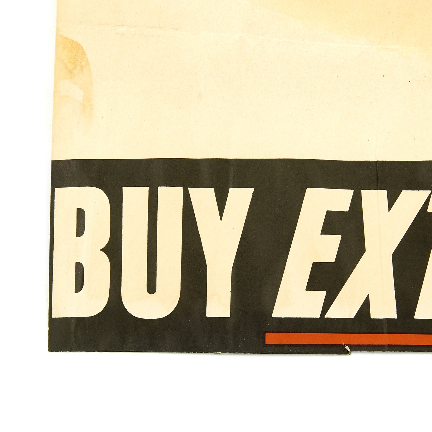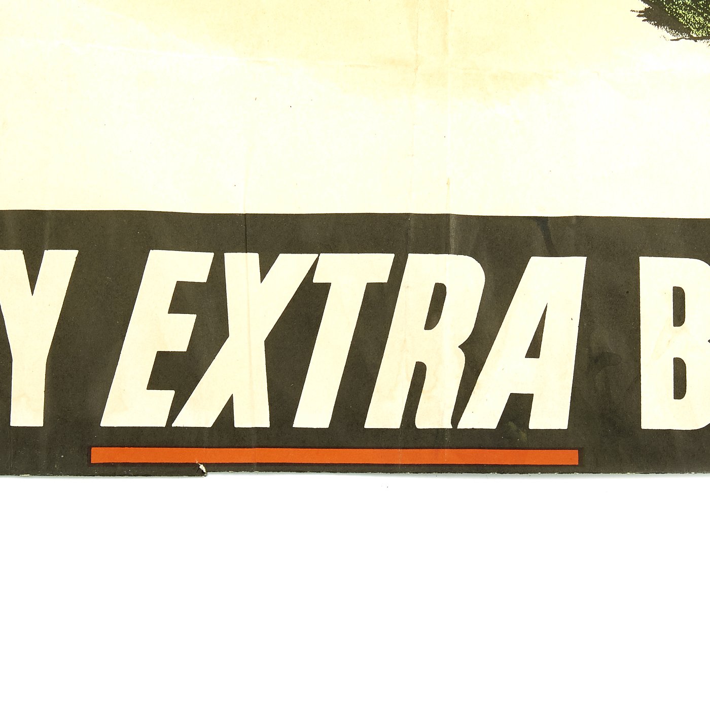 Original Item: Only One Available. This genuine World War Two United States Propaganda Poster was published by the U.S. Government Printing Office in 1944. Folded, in Fine+ condition, Poster measures 16.75" X 22" and reads "Don't Tell Me the War's Over, Buy Extra Bonds," Artwork signed Roger '44.