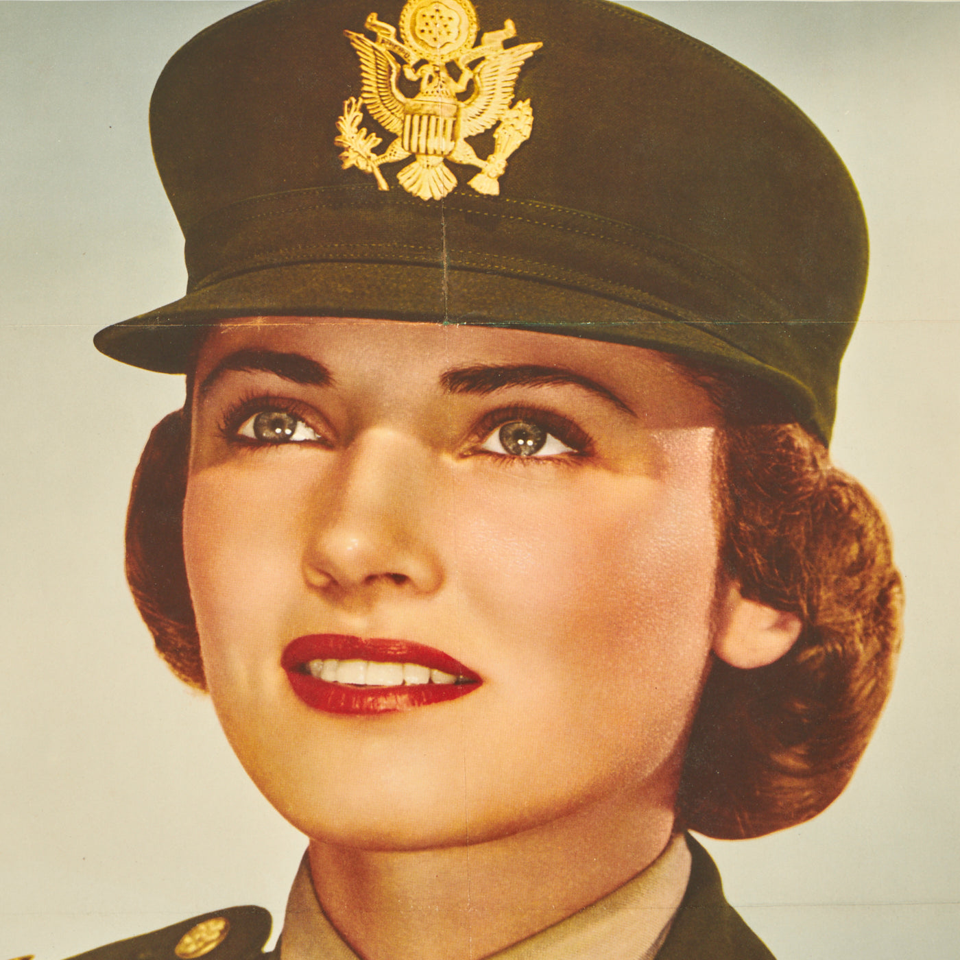 Original Item: Only One Available. This U.S. WWII Poster is in great condition. The poster shows a picture of a smiling woman in a Military WAC Nurse uniform. Her jacket and cap are army green, and her shirt and tie are khaki-colored.