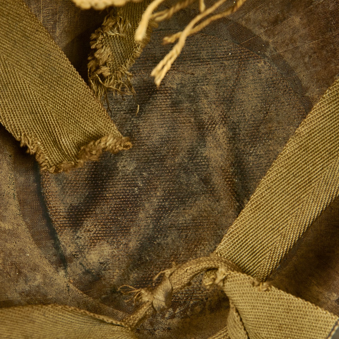 This rare early-war "low pressure" liner, was constructed of rubber fiber, and these were the thinnest construction of all WWII Liners. Due to wear and dirt, there is no maker marking that we are able to see, but this is definitely the low pressure version, as indicated by the pattern on the inside. The low pressure liners were quickly deemed insufficient by the military, so new contractors were found to make the "high pressure" liners. These liners are rare in and of themselves, but with this camouflage paint, it is a real treat.