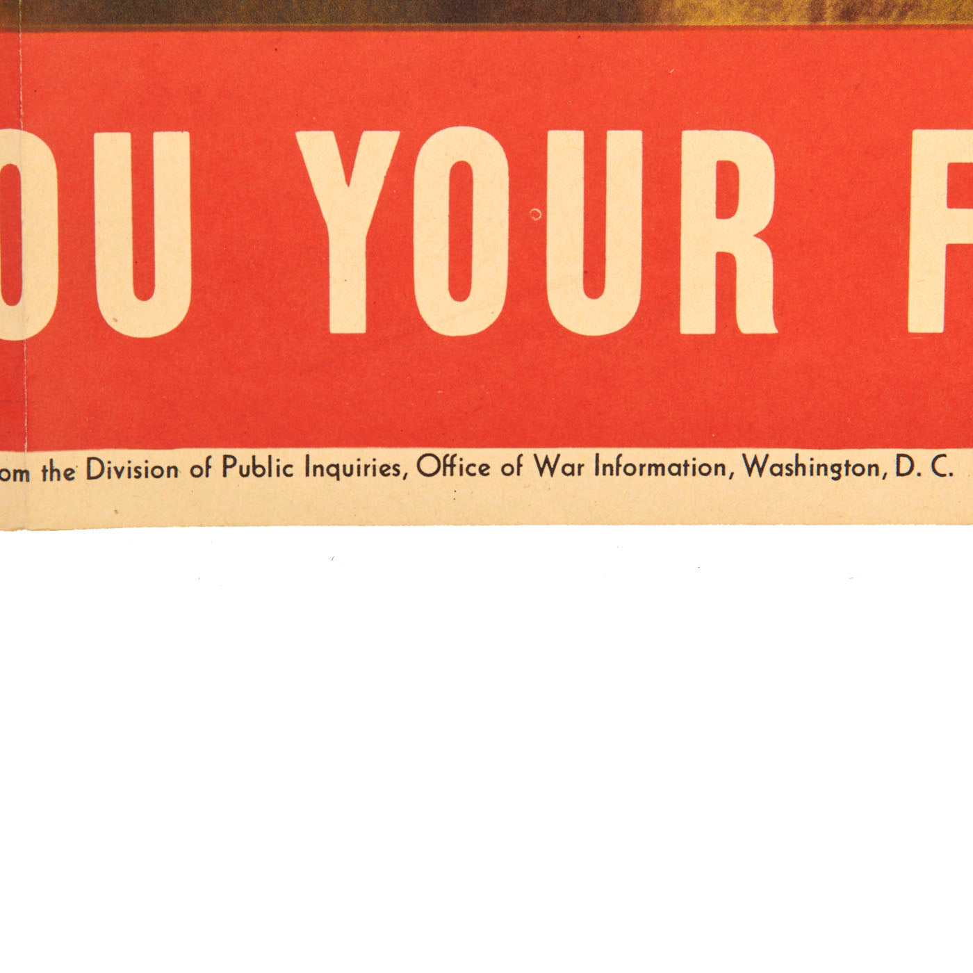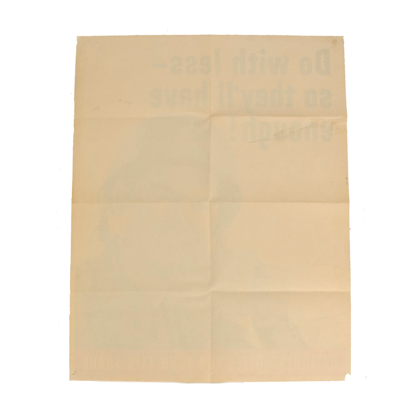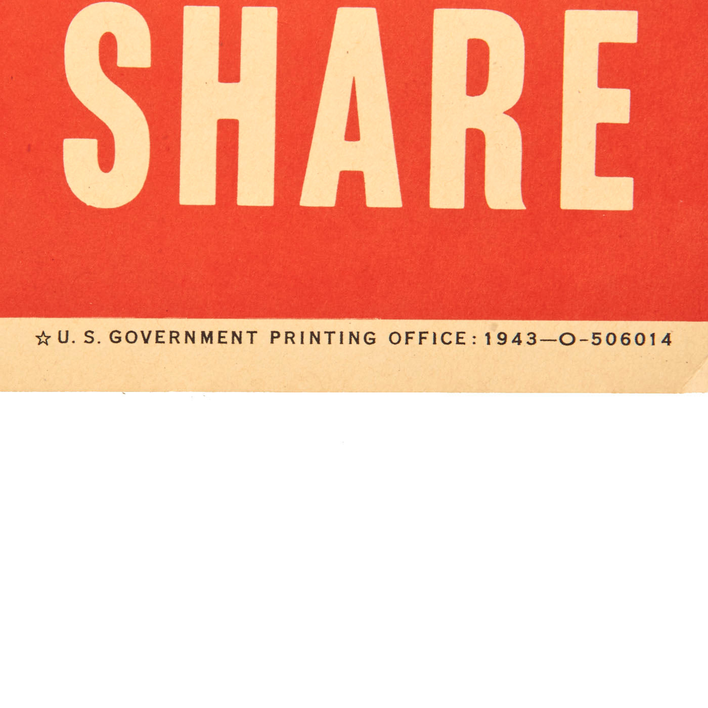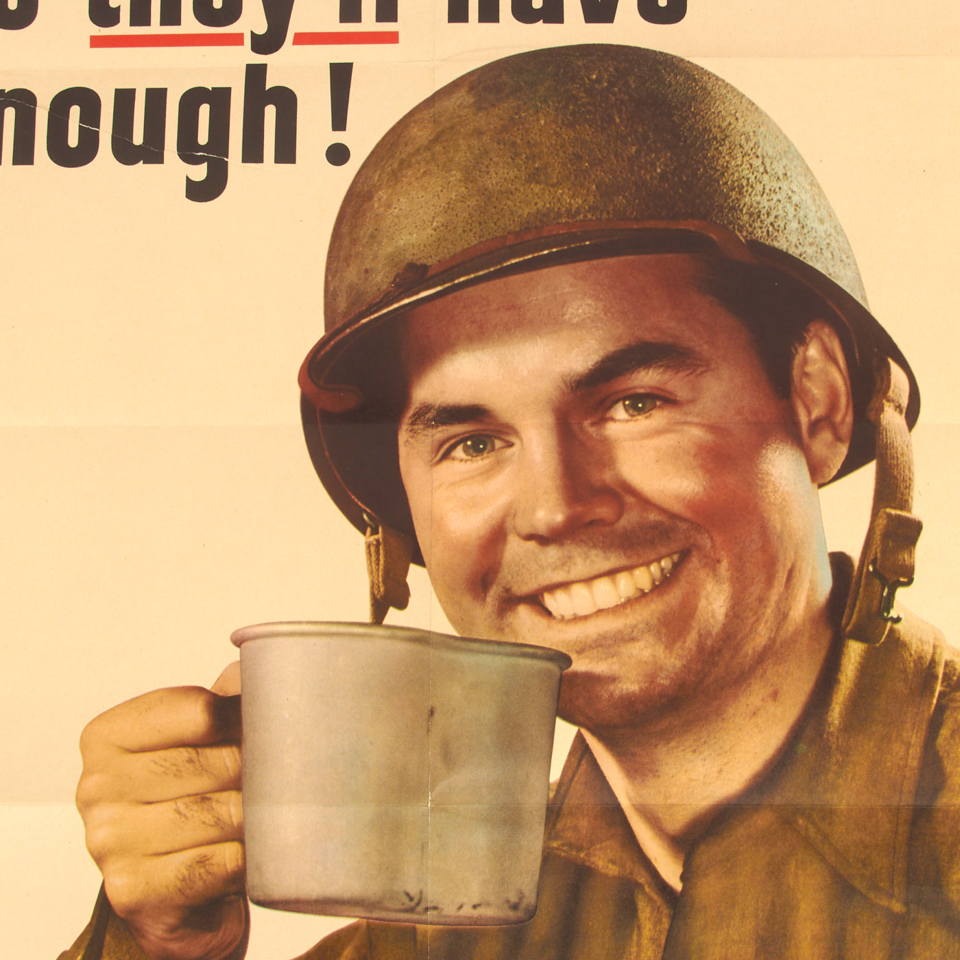 Original Item: Only One Available. This is definitely one of the most famous WWII posters produced and is a popular image to use for social media. During the war years, gasoline, rubber, sugar, butter, and meat were rationed. Government publicity reminded people that shortages of these materials occurred because they were going to the troops, and that civilians should take part in conservation and salvage campaigns.