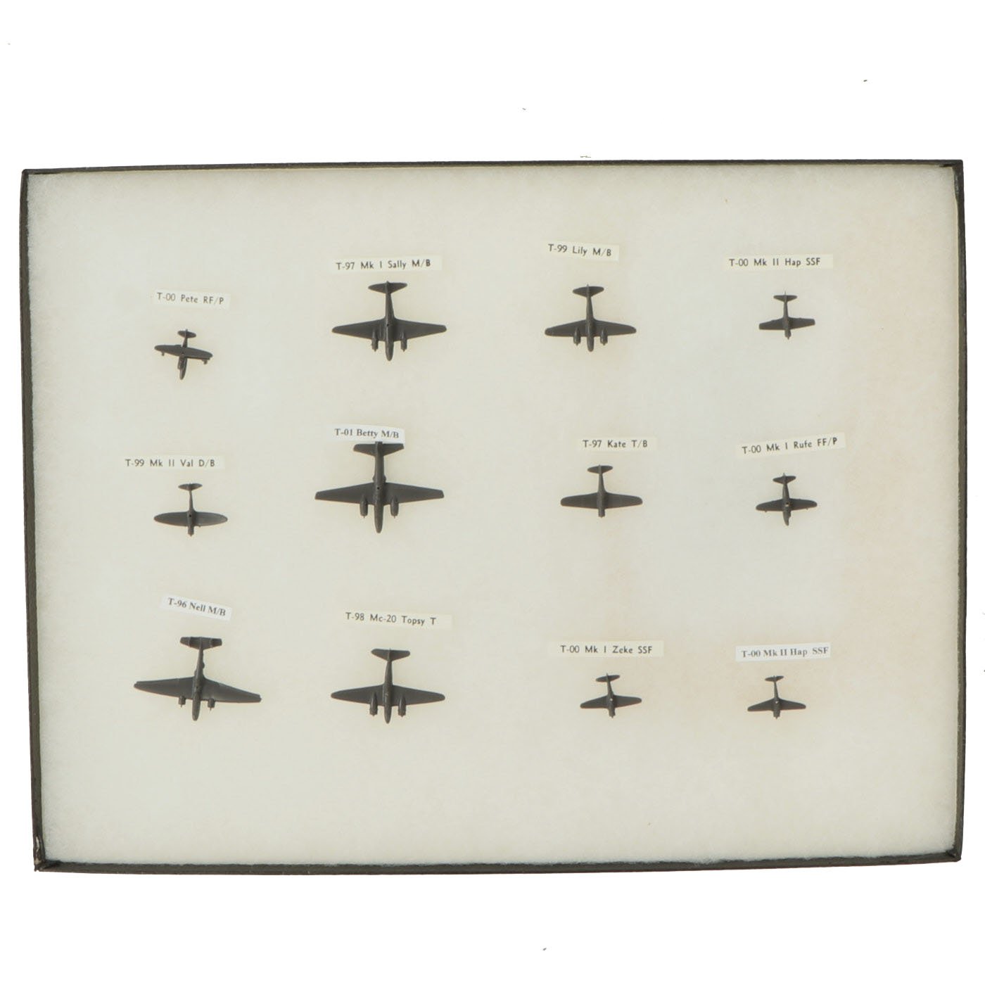 Original Item: Only One Set Available. During World War Two there was a mass of teaching materials used by the armed forces to train gunners and aircrew in the identification of aircraft, ships and ground vehicles. The ability of servicemen to identify "friend or foe" in an instant was crucial to combat survival and the subject of recognition was taught in just about every World War II service school. These “recognition models” (also known as “ID” or “spotter” models) were seen as critical to the war effort. Some were detailed for use in educational films or for marking identification, but many were simply painted black to simulate a silhouette. These helped familiarize observers with the outlines of planes from all possible angles. Trained spotters were important to the war effort and to aid them plastic models were made. When a large number of models or very big planes were to be modeled, a scale one-sixth of the standard size (1 :72) was created. The smaller scare model is 1 :432, some of which could be carried in one's pocket for instant reference.: When a large number of models or very big planes were to be modeled, a scale one-sixth of the standard size (1 :72) was created. The smaller scare model is 1 :432, some of which could be carried in one's pocket for instant reference. Cruver produced these beautiful, original (cellulose acetate) planes.