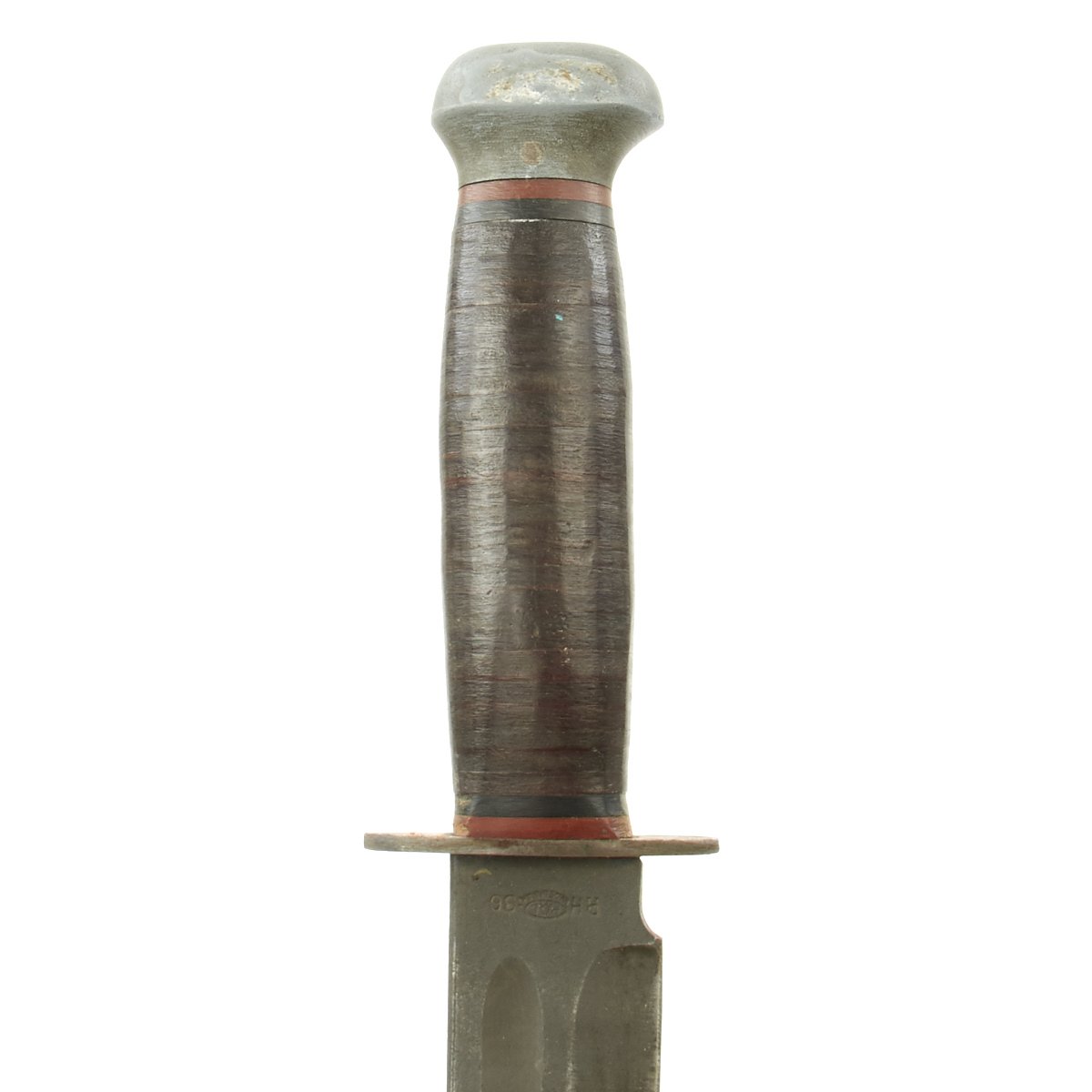 While PAL was originally a manufacturer of pocketknives, but after the Remington acquisition they expanded their range of products to include a variety of fixed blade knives as well. PAL received a number of US government knife contracts during World War II and produced thousands of combat knives during the war years. Pal went out of business in 1953.The USN Mark 1 combat knife was produced by a variety of manufactures during World War II and was issued to Navy personnel by the thousands. It had a 5 ¼” long blade and was patterned after typical hunting and sideknives of the era. The subsequent Mark 2 knife had a longer 7” blade.