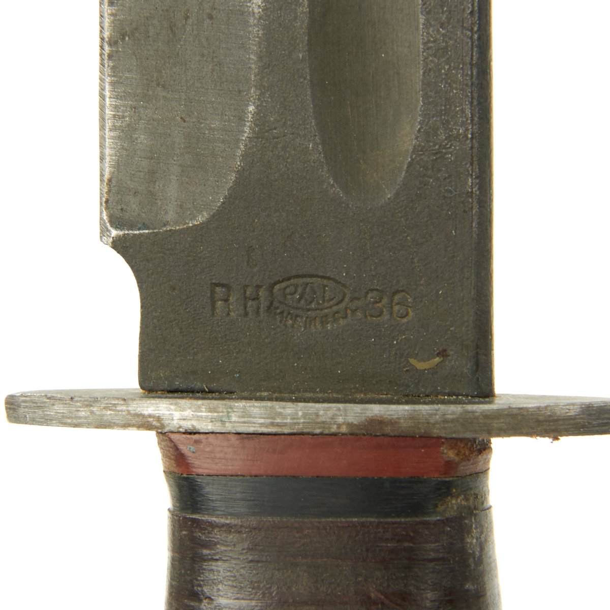 Original Item: Only One Available. This is an excellent example of the U.S. PAL RH 36 fighting knife, manufactured by the PAL Cutlery Company, complete with original leather scabbard.