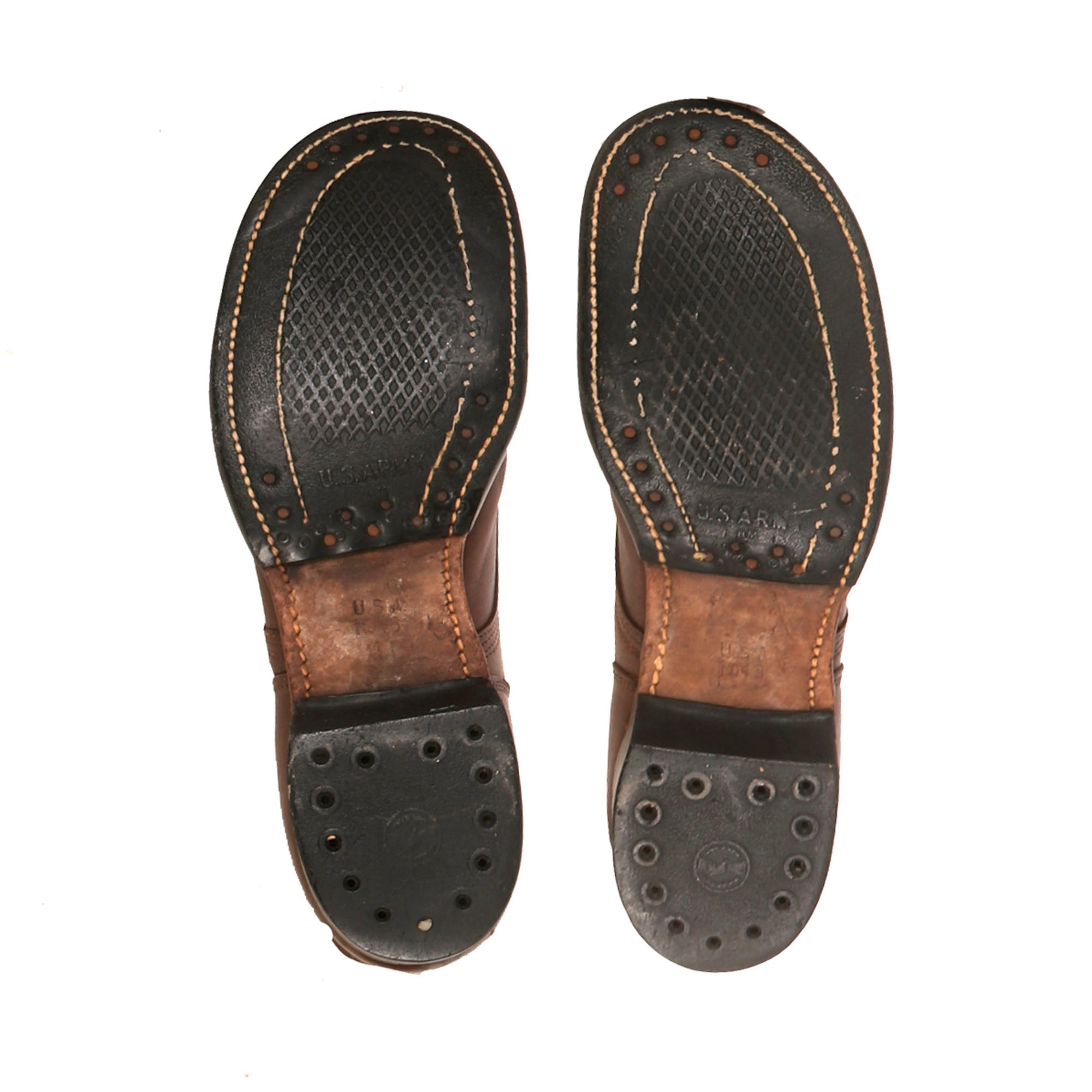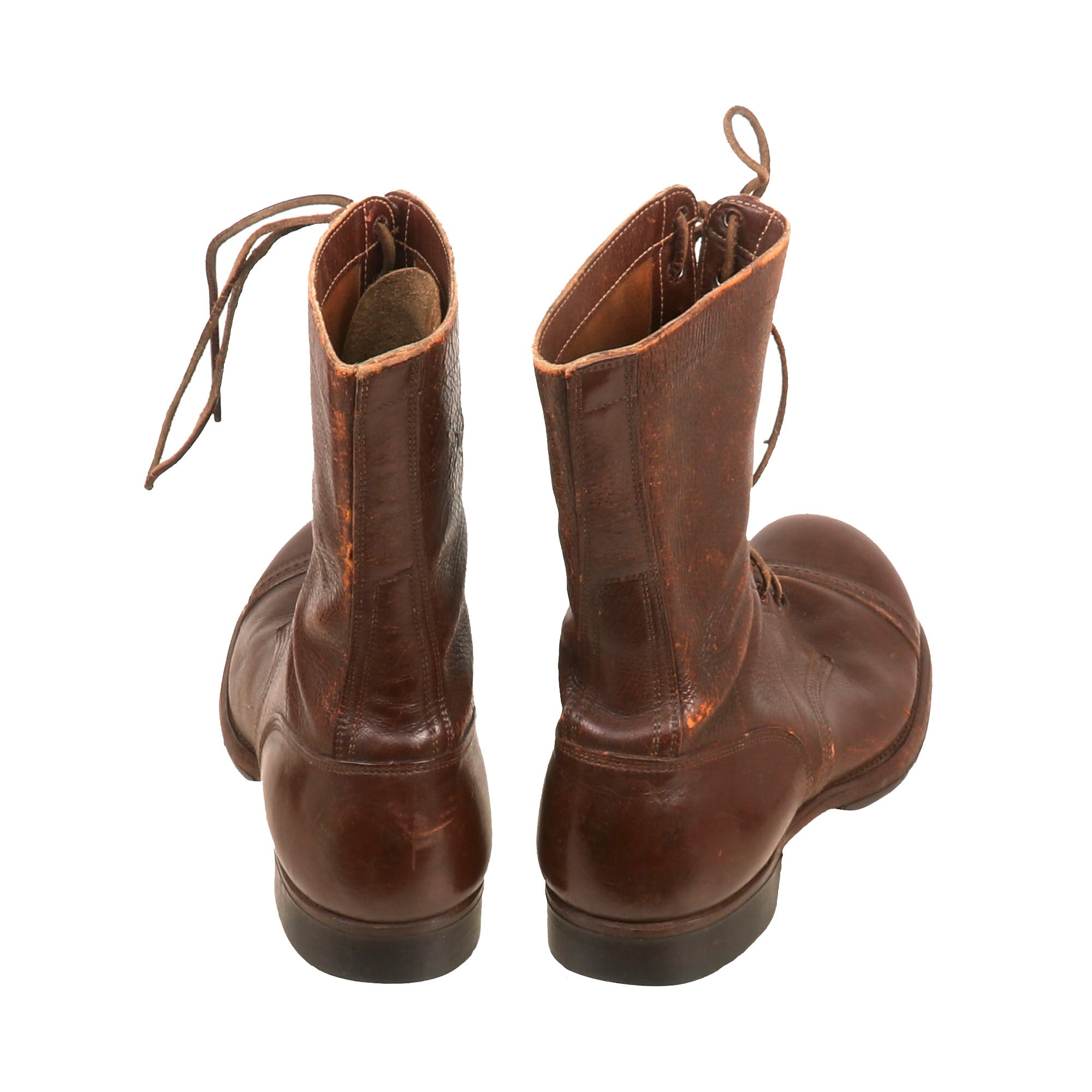 Original Items: Only One Pair Available. The "Corcoran Style" Jump Boot was devised specifically for the airborne infantry; the most significant change from regular infantry boots were the lack of leggings which prevented the snagging of parachute risers. They were designed in 1941 and put into action for the 82nd Airborne. After training, the troopers were allowed to blouse their M42 Trousers into their boots, when before during training they needed to be over the boots for they were not paratroopers at the time. They saw action in Sicily, Italy, France, Belgium, Holland and Germany. In 1945, they were replaced by the M43 Combat Boots, which came with major opposition from the paratroopers as the two buckles on the leggings could be snagged on the parachute risers and injure the trooper.