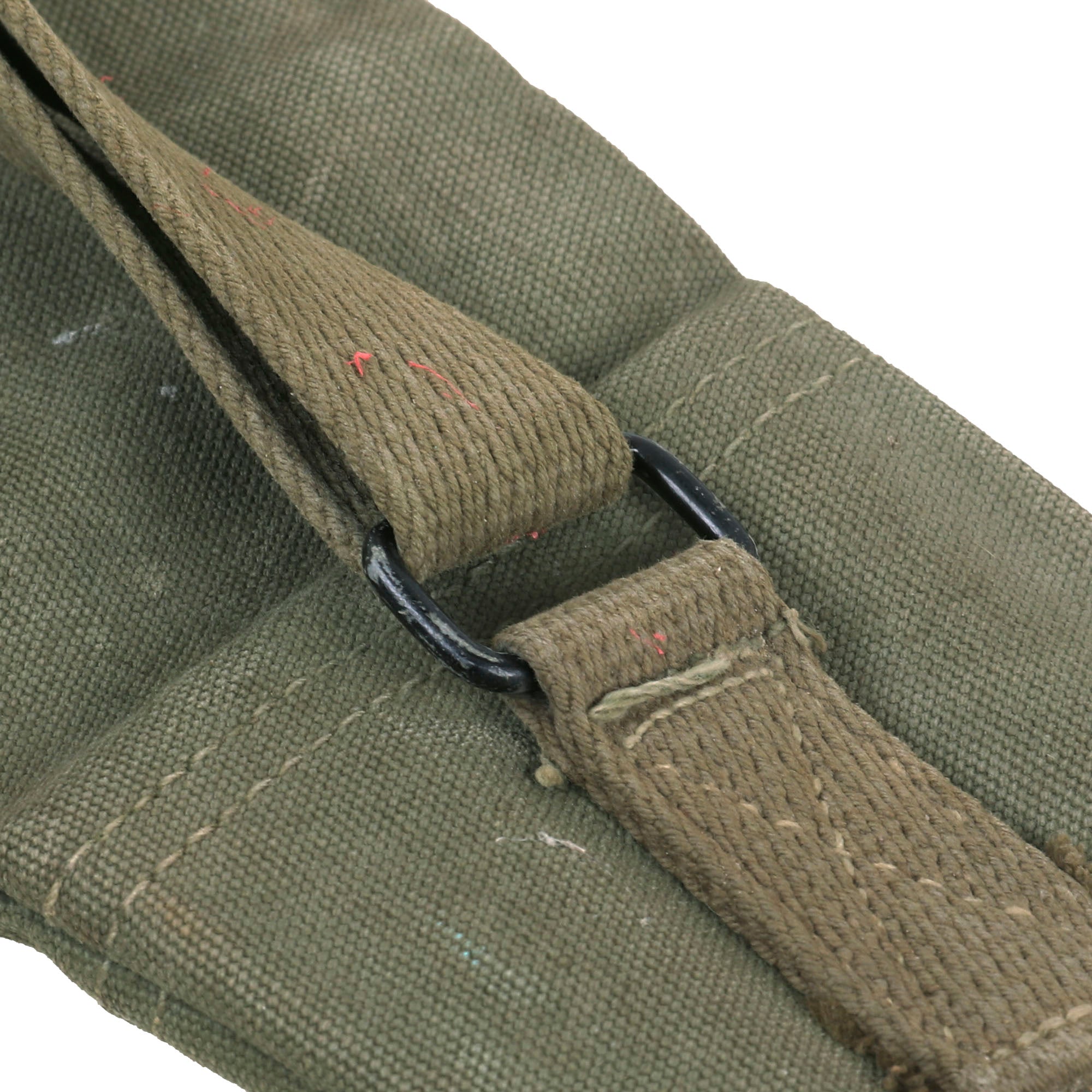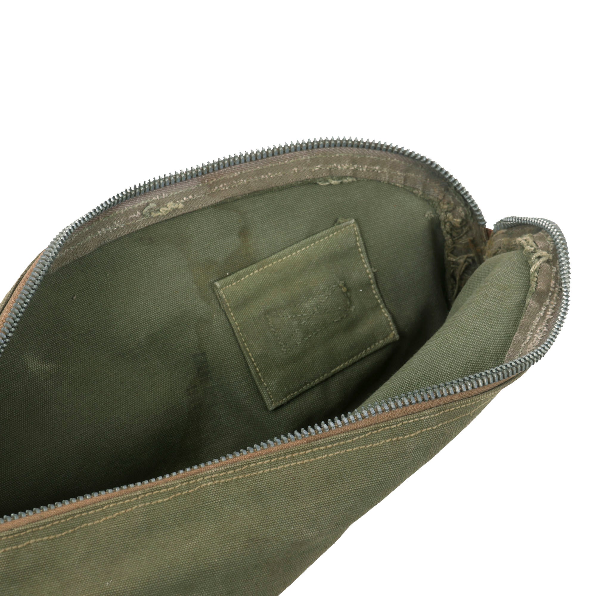 This example is marked under the top flap: SHANE MFG. CO. / 1944, and is made of OD Green #7 Canvas, which has just a bit of storage wear as well as service wear with a few popped stitches. This is a darker, more "green" type of OD green, as typical of later war produced items. The case is overall very good, with an intact shoulder strap, mostly working zipper, and no rips or tears in the fabric. Definitely excellent condition for any age. Ready to display along with your WWII Issue M1 Carbine!