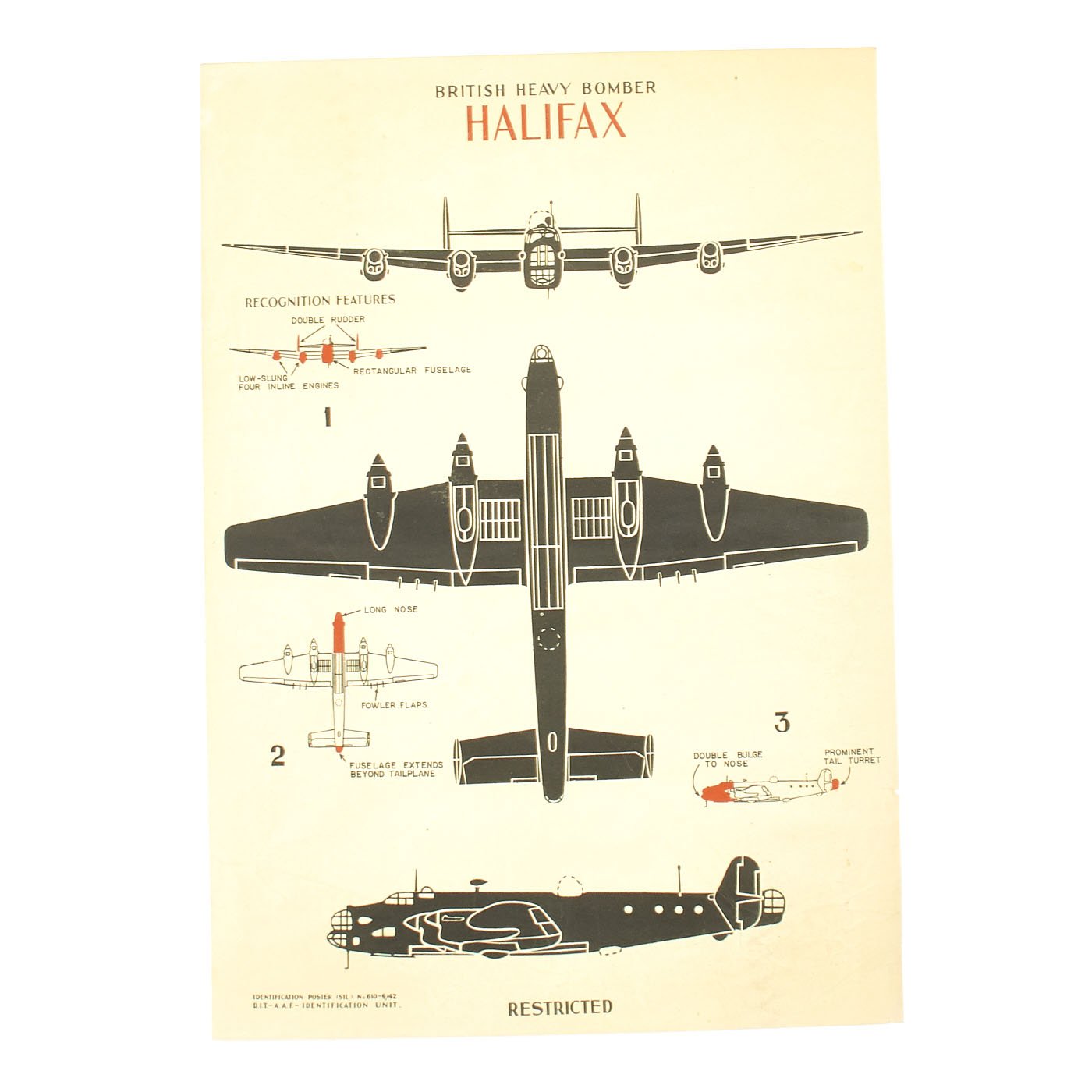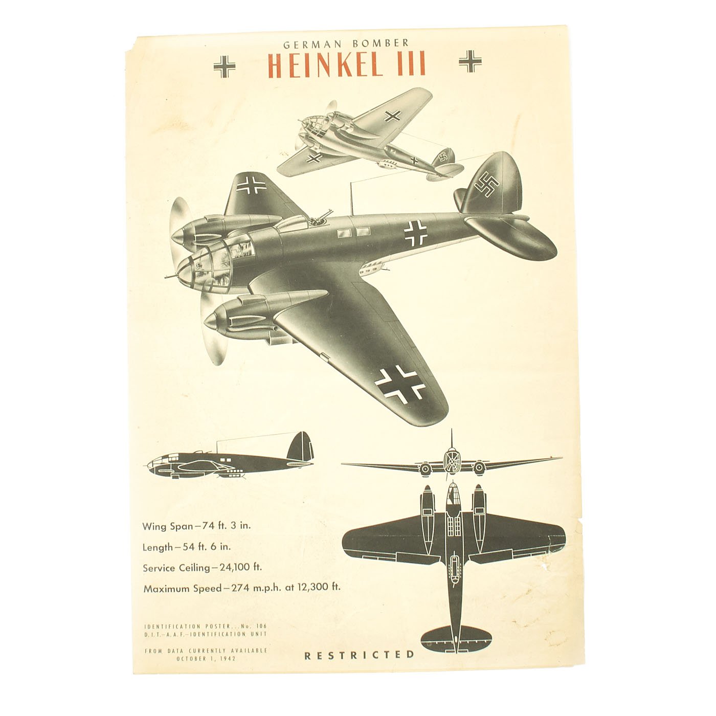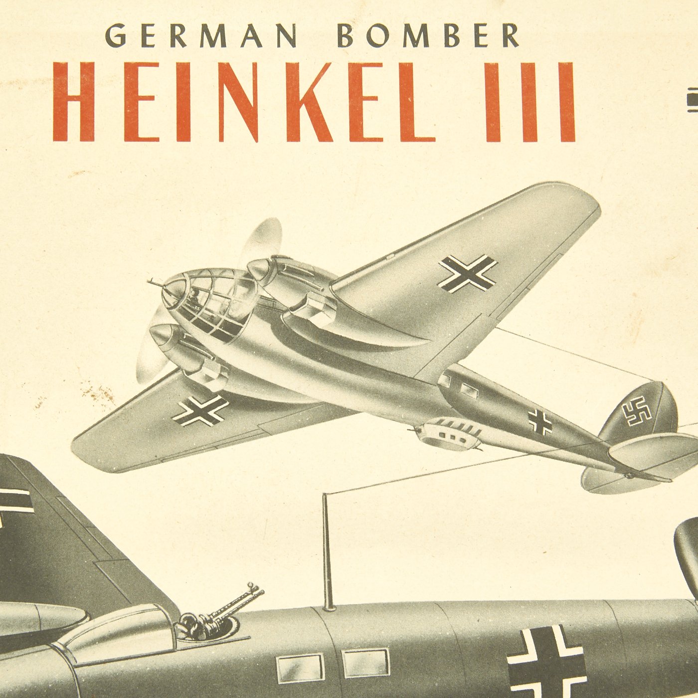 The posters included in this set are for the friendly British Heavy Bombers STIRLING & HALIFAX, as well as the German Bomber HEINKEL 111, usually called the He 111. All of the posters are fully legible, with the expected age toning and wear around the edges. There are a few tears and stains, but nothing major.