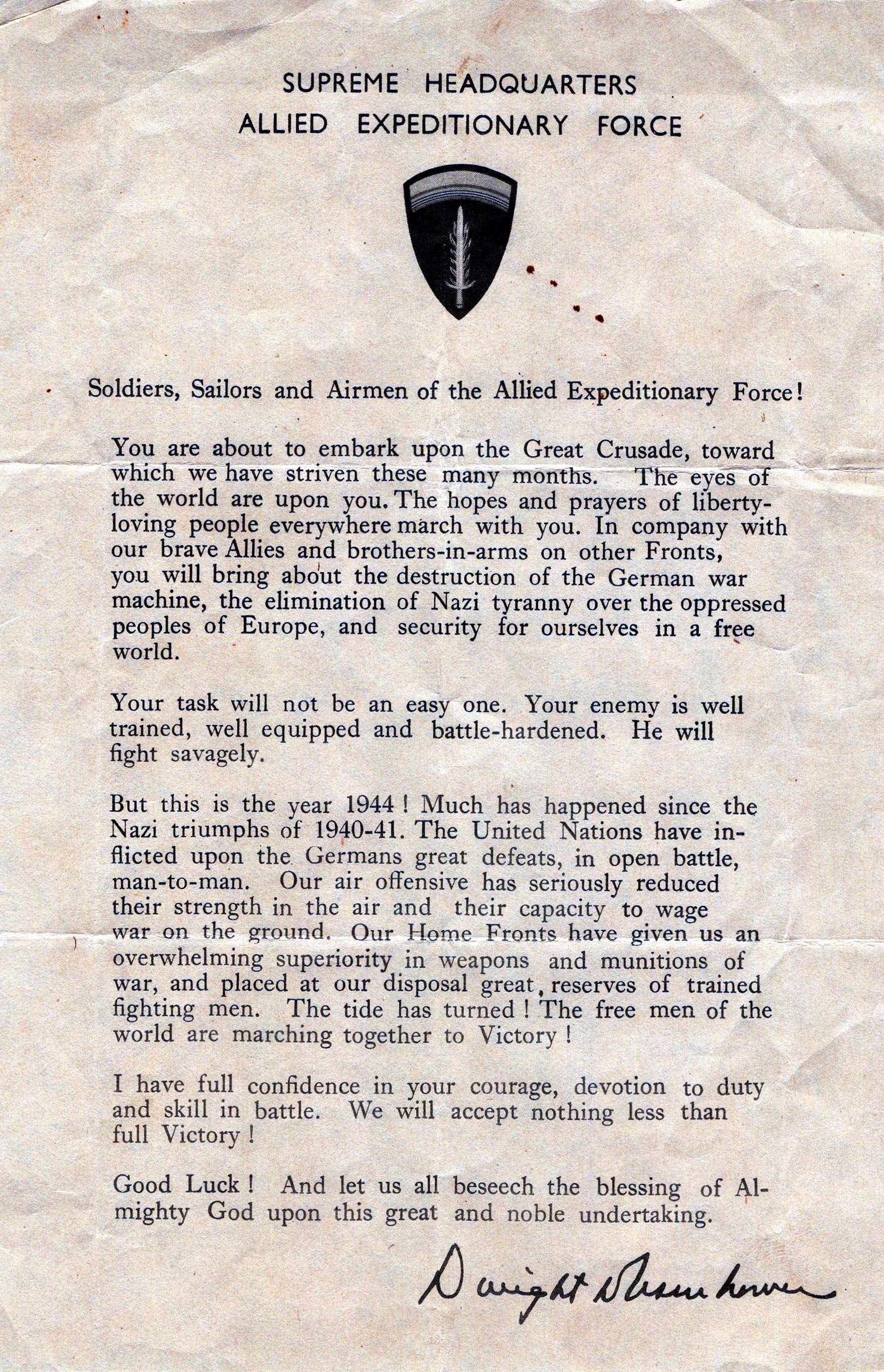 Original U.S. WWII SHAEF Eisenhower Letter Sent to the Troops Before D-Day