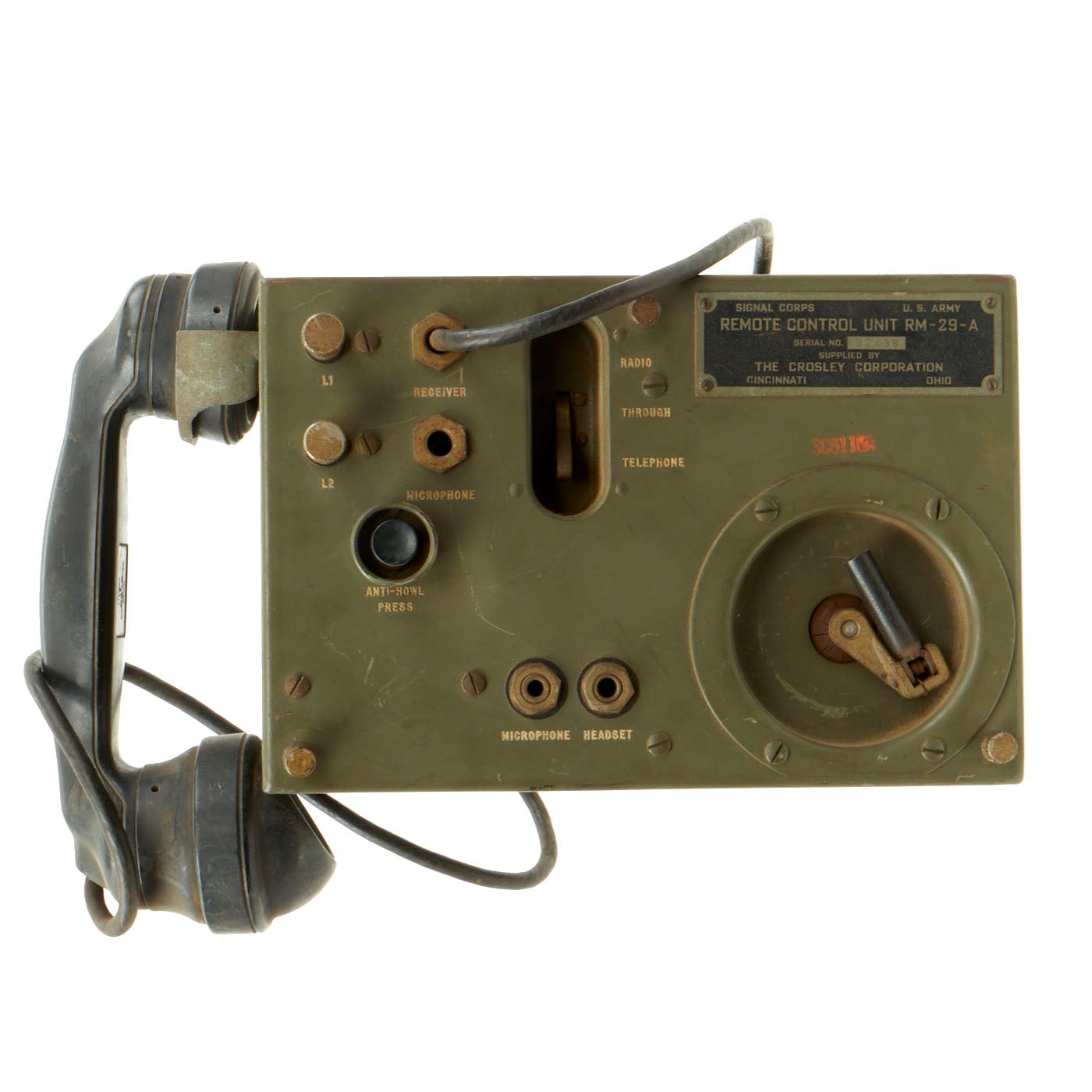 Crosley built RM-29-A Remote Control Units for the U.S. Army Signal Corps. This unit allowed remote communication from a field phone at a front line position to other military units via radio transmission. The RM-29-A was the interface between the phone switchboard and the radio set. The unit could also be used as a field phone if needed.