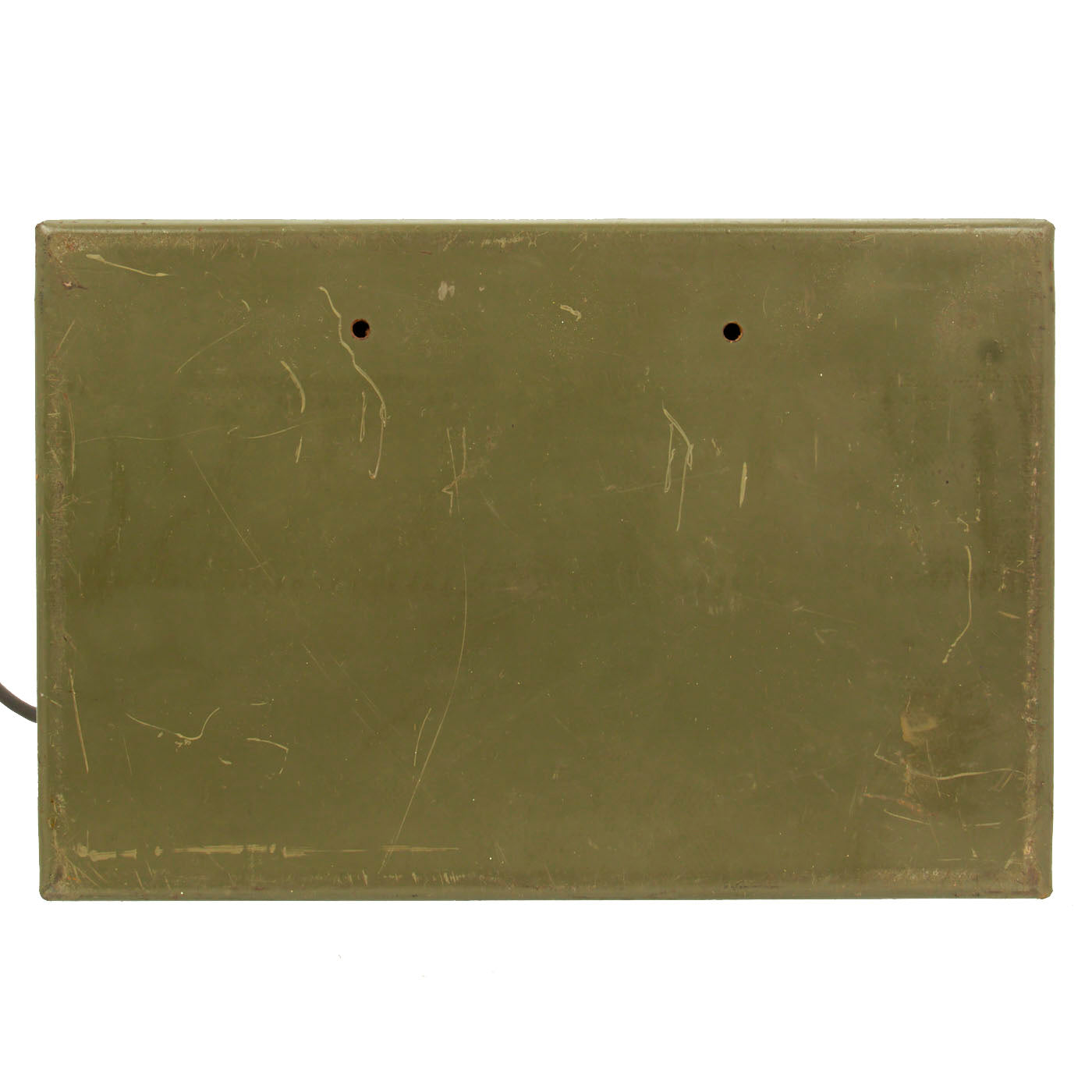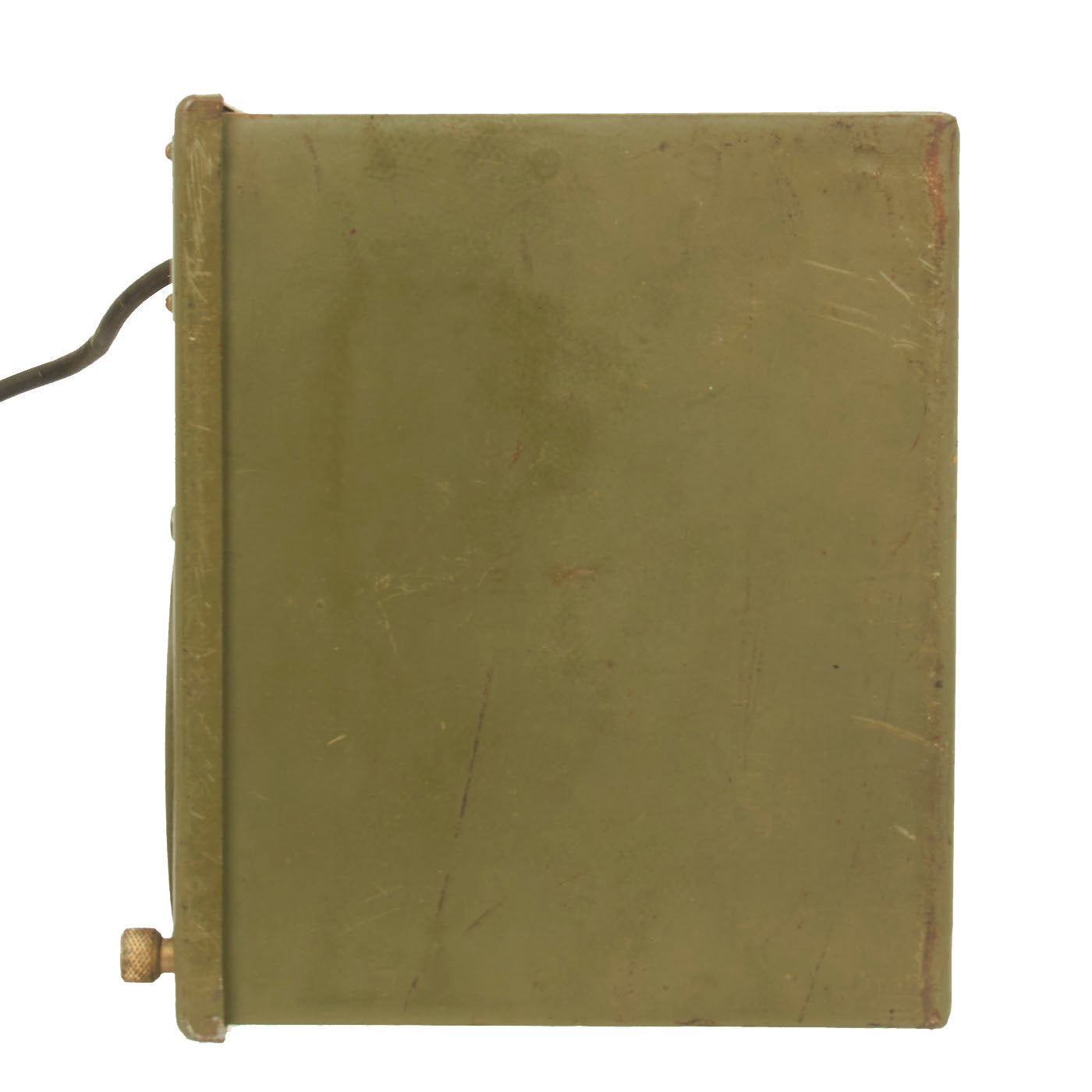 The unit does not appear to have any significant damage to it, however there are some superficial scratches and rub marks that removed a little paint. The switch still works as well as the hand crank. As far as if this thing is still operational in the sense it was during WWII, we do not know nor are we capable of testing it here at IMA.