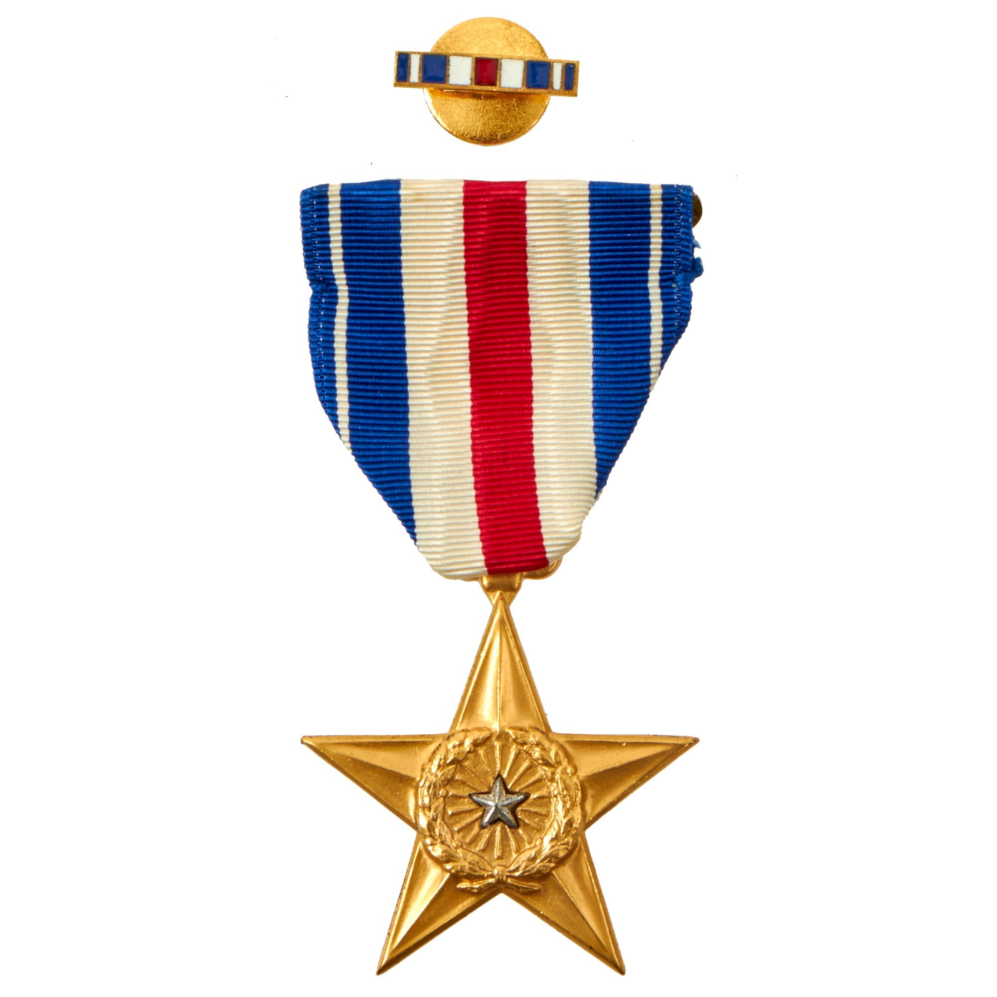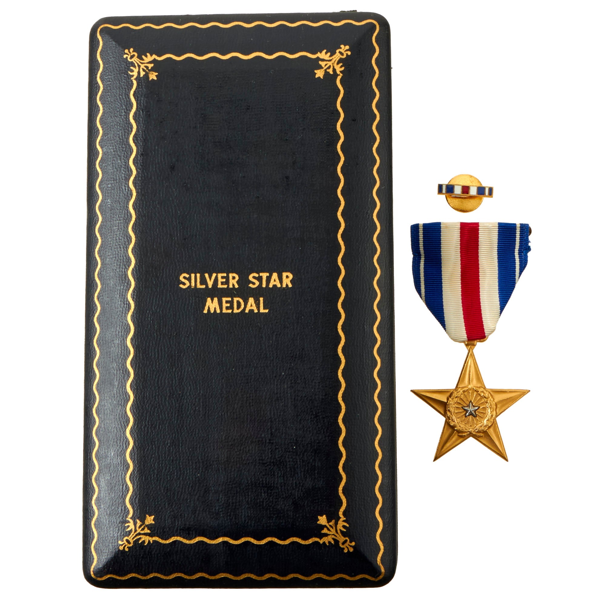 -Williams’ Silver Star Medal in its original box, with lapel pin. Medal is not engraved or numbered. Comes with copy of citation.