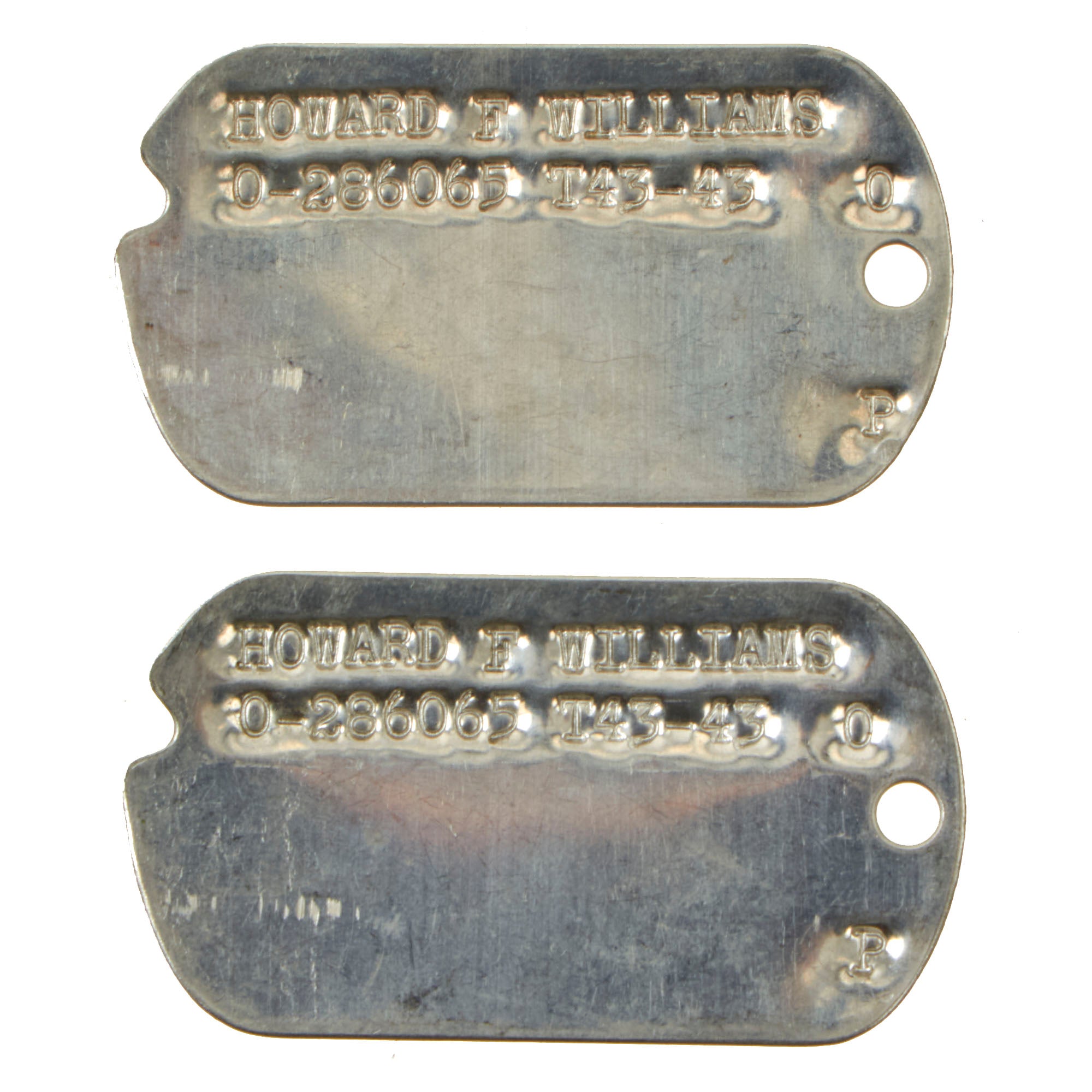 -Williams’ Set of 2 Dog tags reading HOWARD F. WILLIAMS O-286065 T43-43 OP.