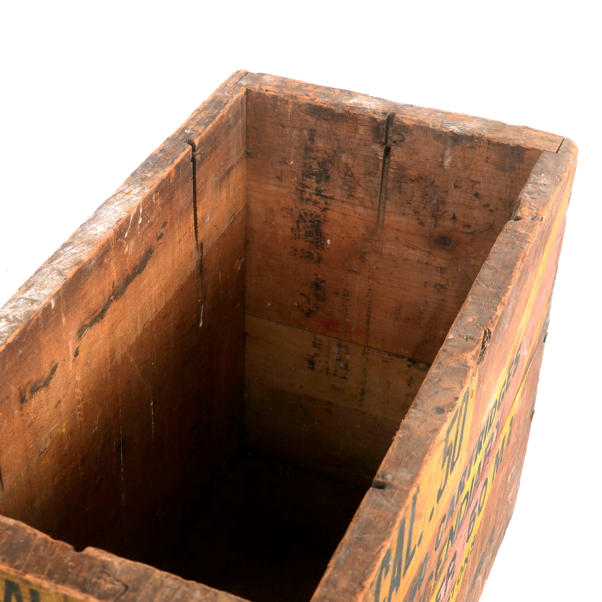 Overall condition is very good, showing wear commensurate with age and service. It is however missing the lid as well as all of the fastening hardware, both the threaded studs and the wing nuts. Also, as shown clearly in the pictures, the crate is empty.