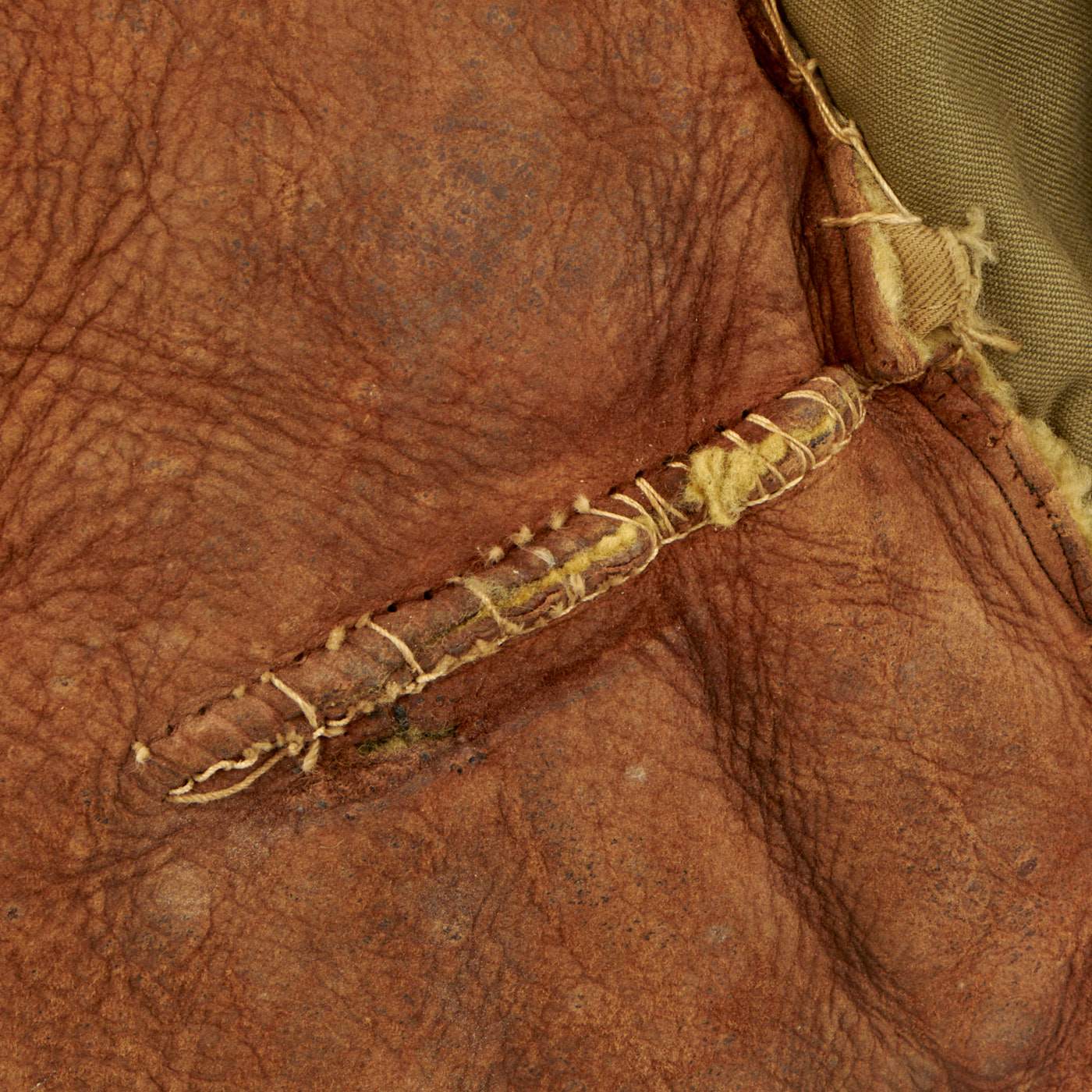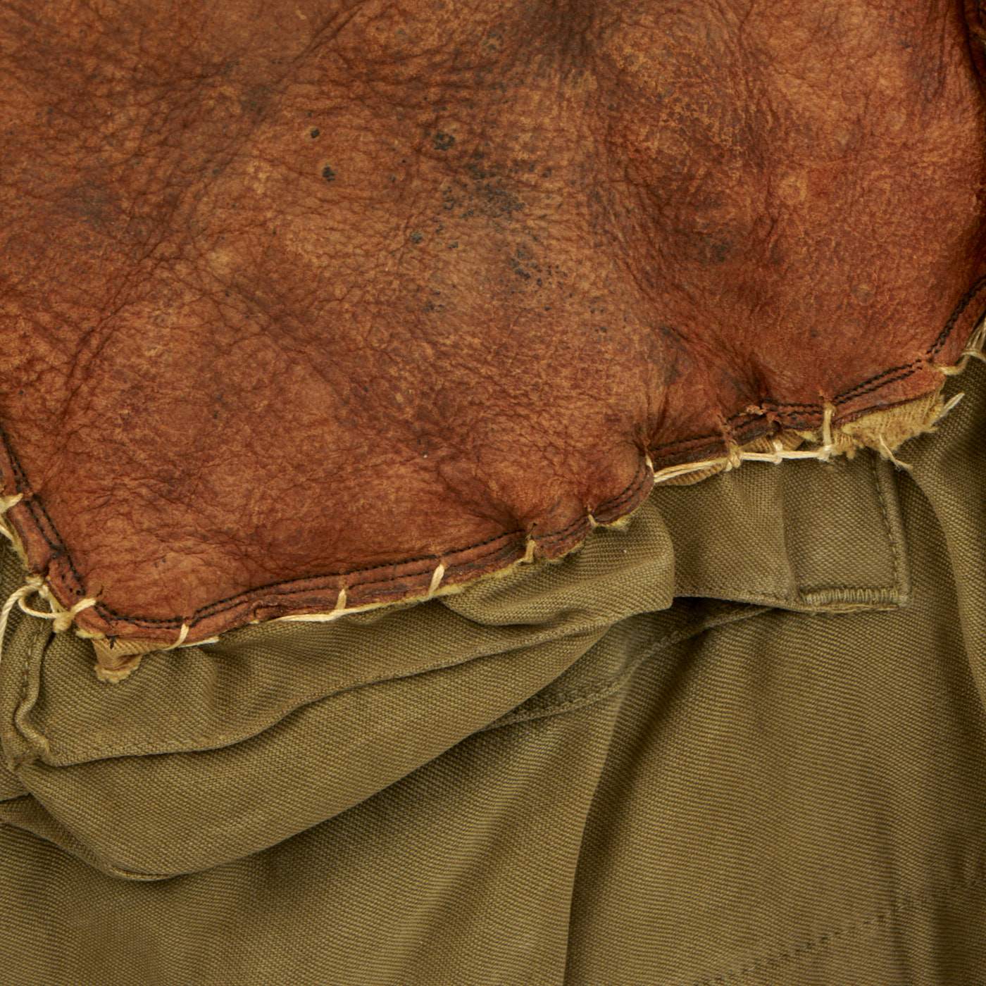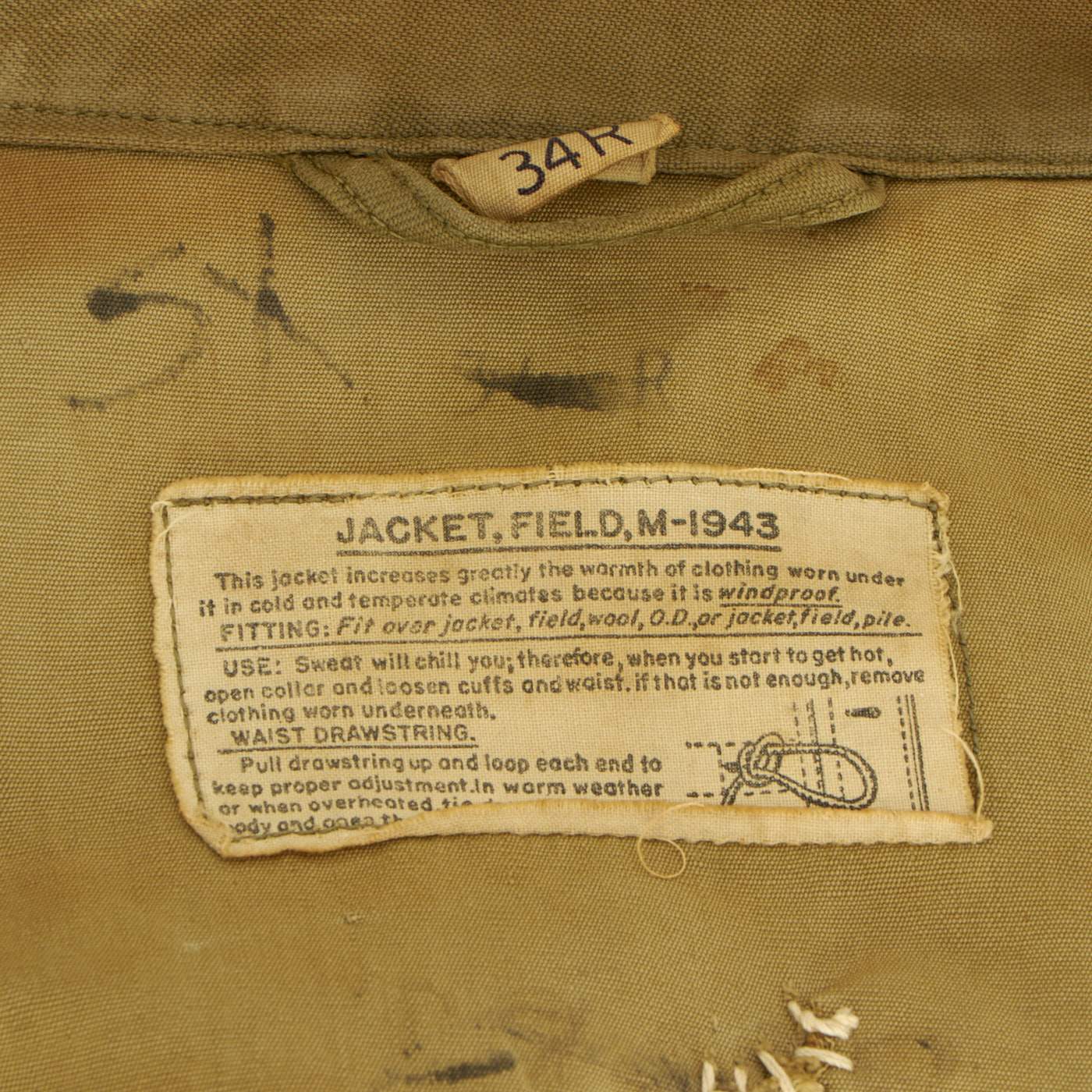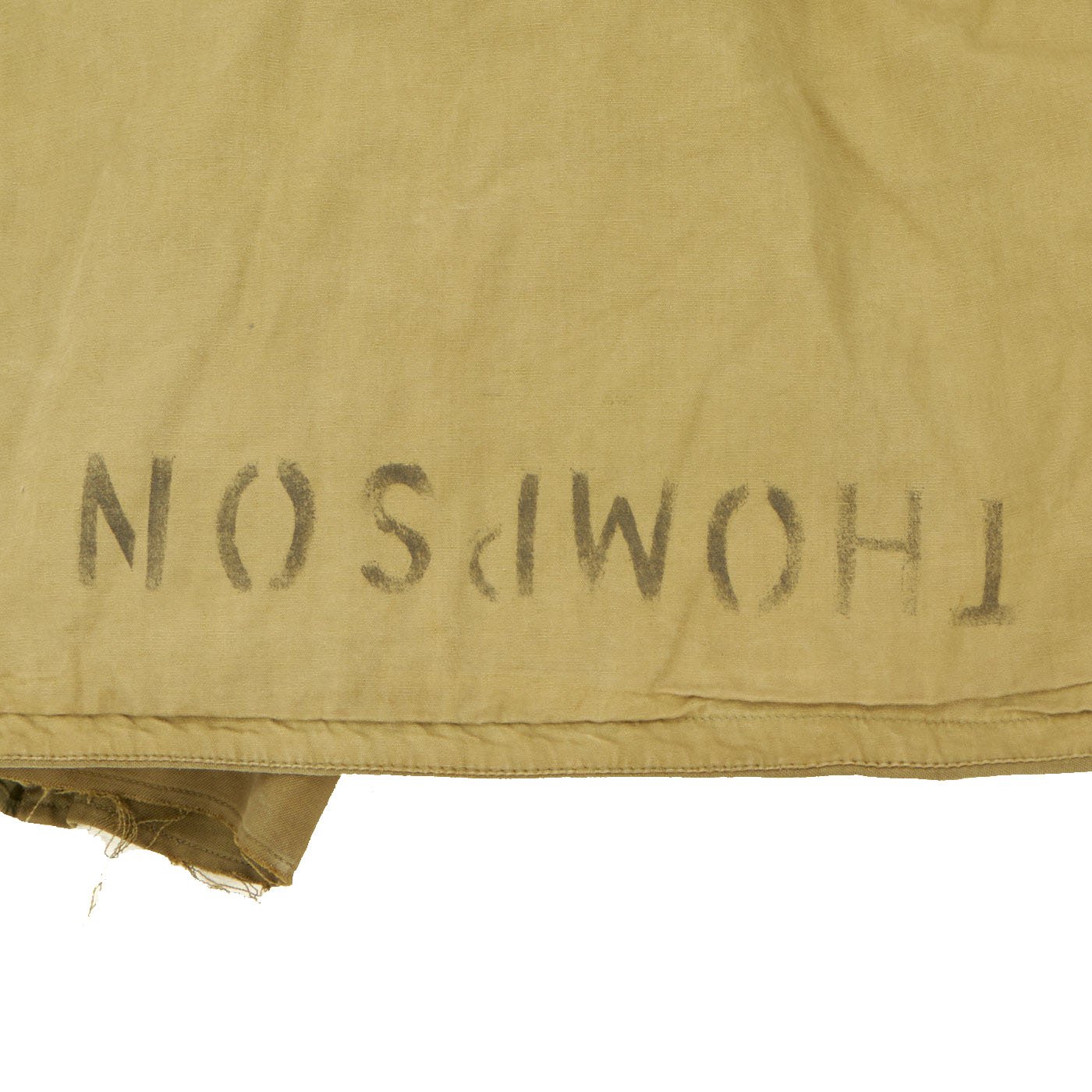 - Original Item: One-of-a-kind. This is a genuine M43 Field Jacket in size 34R which was customized to a sniper or marksman configuration by adding shearling leather elbow and shoulder pads. All buttons are present and the internal drawstring is complete. It is stenciled in black paint THOMPSON above the inside lower seam. This is a very interesting and unique customized jacket from World War Two.