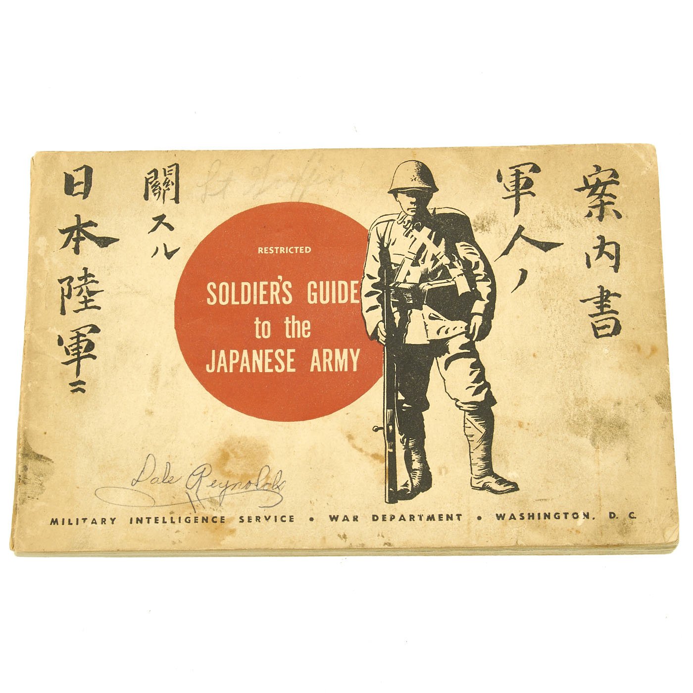- Original Item: Only One Available. These pocket guides are always hard to find! Published in 1944 by the Military Intelligence Service of the War Department, this fantastic guide is 182 pages. Excellent training aid detailing equipment and weapons used by the Imperial Japanese Army IJA during WWII. This example is offered in very good condition with light staining and age wear.