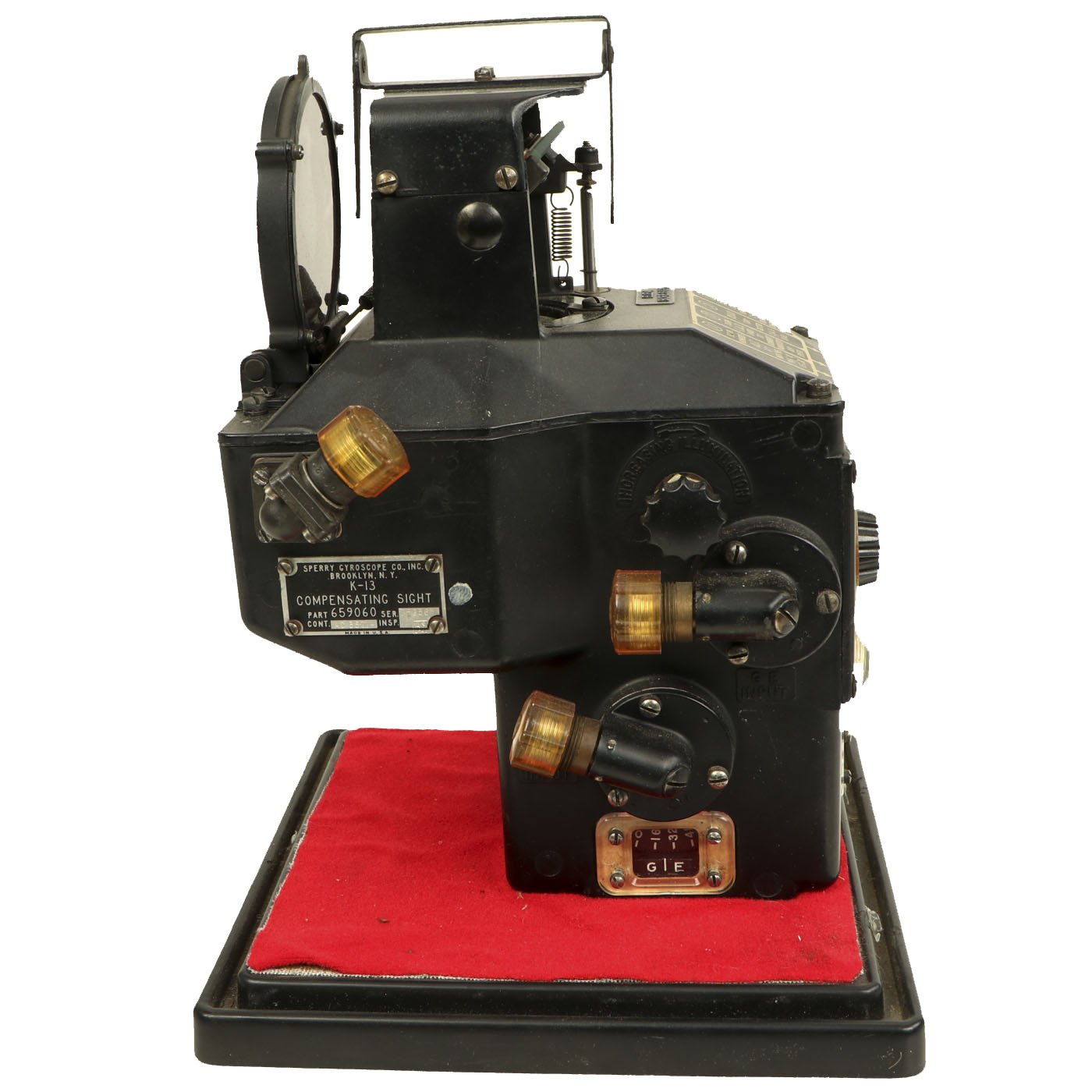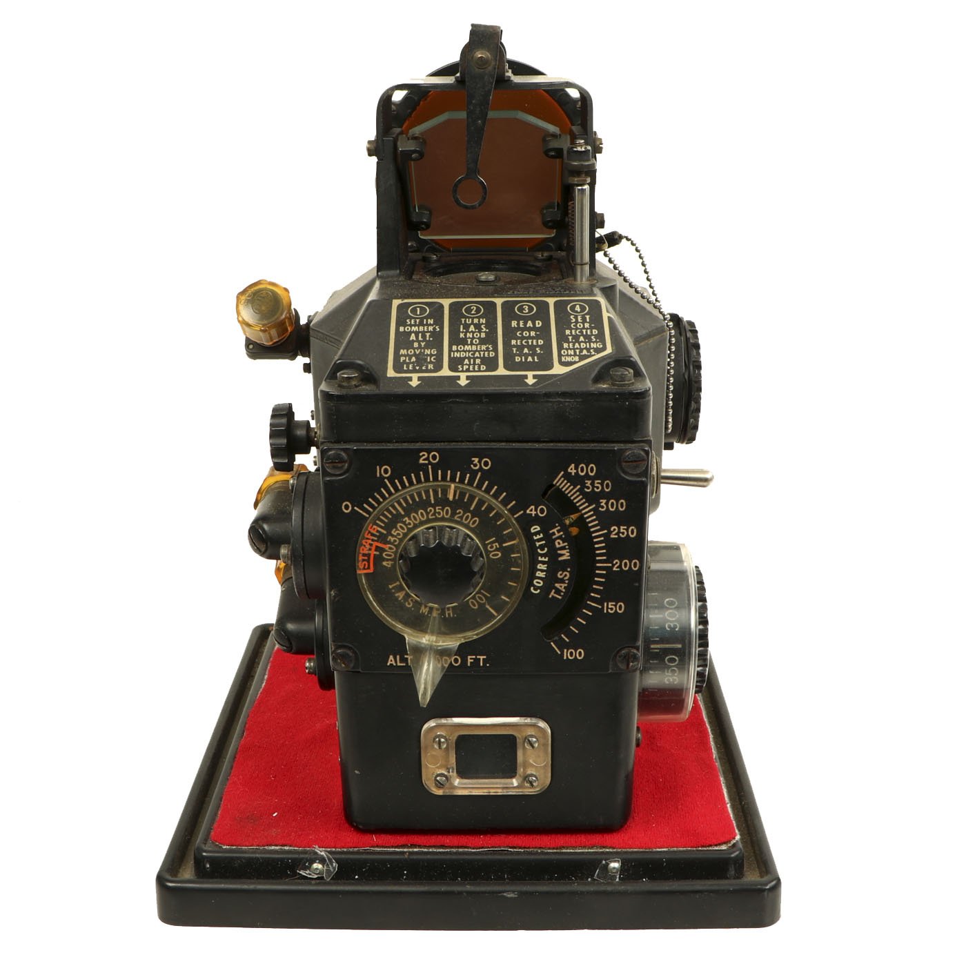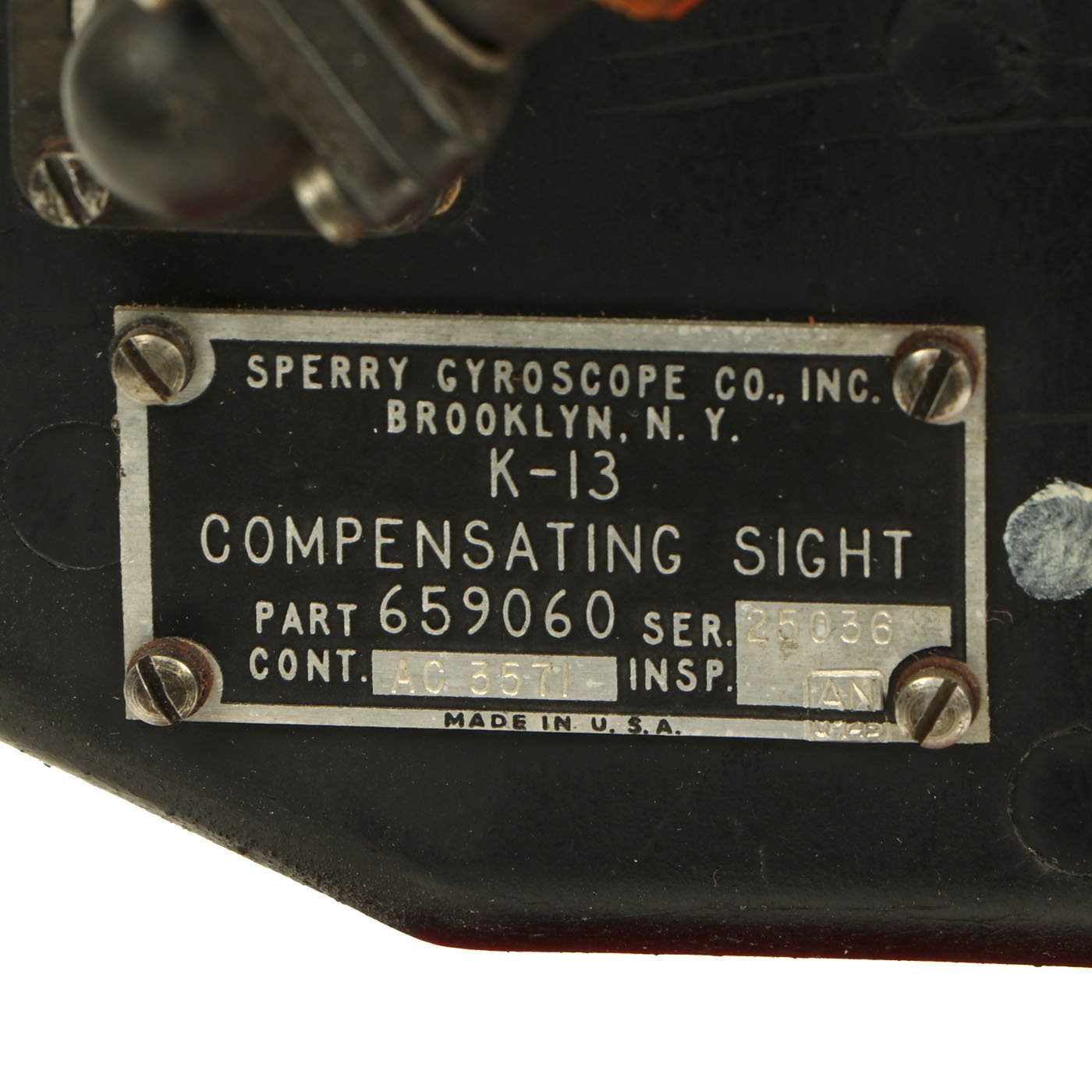Original Item: Only One Available. The K-13 Compensating Gunsight, made by Sperry, is an electrically-powered gunsight designed to compensate for altitude and airspeed. Typically mounted on the rear housing of a .50 caliber machine gun from a side/waist gunner position in the aircraft. Used in Boeing B-17 Flying Fortress and Consolidated B-24 Liberator bombers during WW2. It was a late war innovation that used the aircraft altitude and speed with the direct correlation of where the weapon was pointed to calculate the reticle. The aircraft altitude and speed was entered on the rear of the sight. There is an interesting video at this link describing how the K-13 functioned. This example is offered in excellent condition. Measures approximately 10" x 7" x 6".