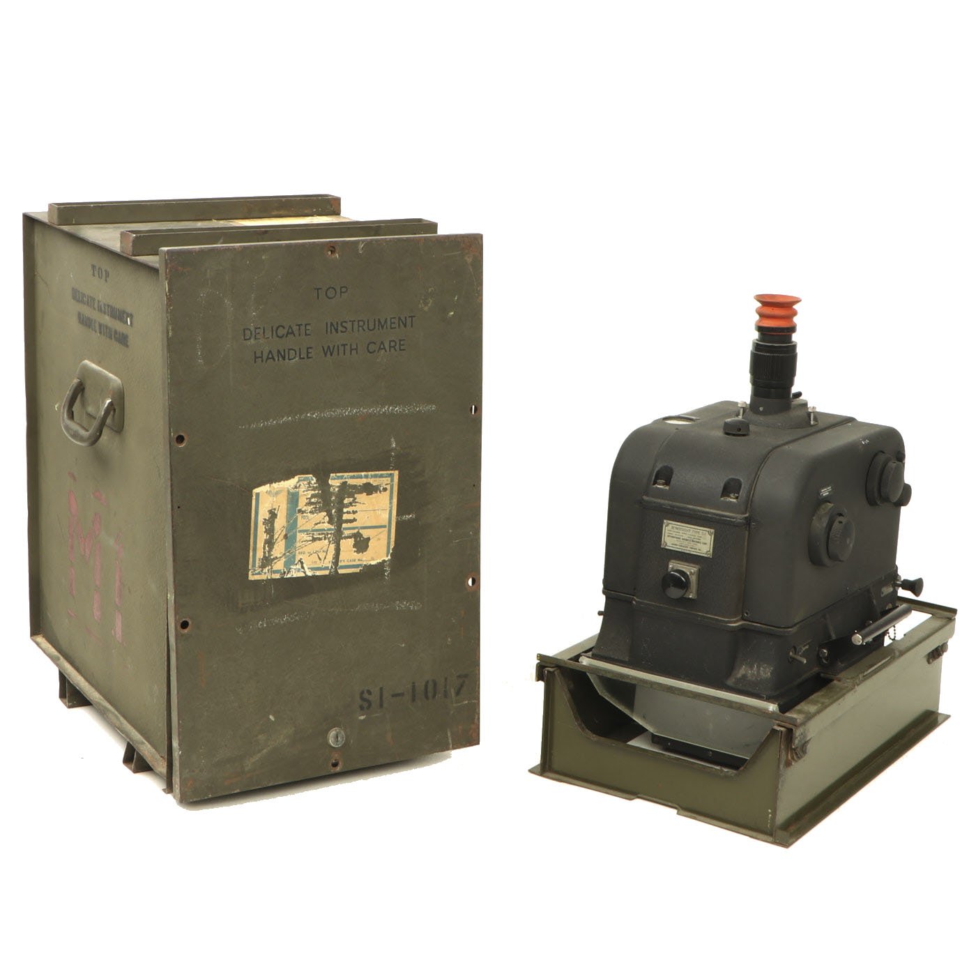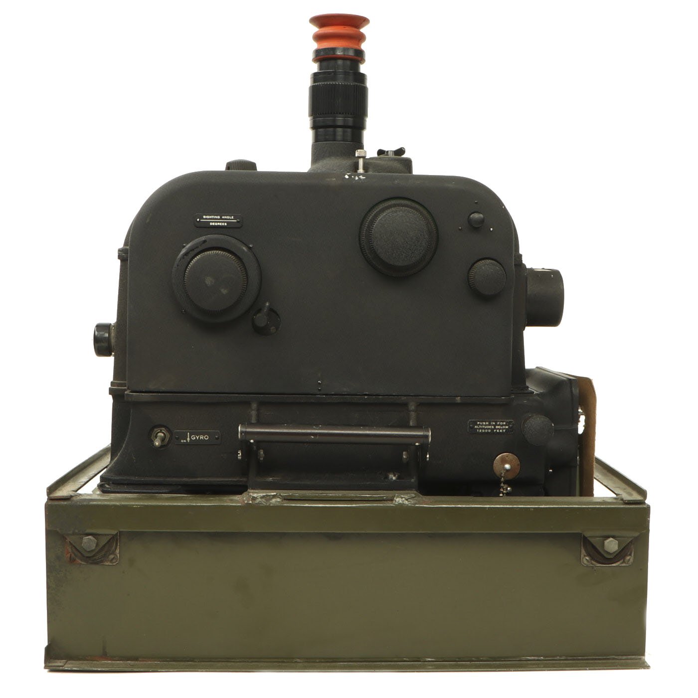 The Sperry S-1 Precision Bombsigh was designated as standard equipment for bomber planes in the armed services in March of 1941. It was used primarily in the U.S. Army Air Force bombers during WWII. However, after millions of dollars had been invested in the Sperry, and placing it in all the planes, the contracts were suspended and canceled. The military had found a better and more efficient bombsight; the Norden M-1 bombsight. The Norden was tauted to be a war-winning secret weapon. Because of its short life-span in military use, the Sperry bombsight is a rare and prized collectible among war enthusiasts. Early tests with the Sperry sight revealed that it had many problems, such as poor optics and long data calculation times. Ironically, Norden was a former employee of Sperry, and he had to go around an extensive number of patents which Sperry possessed. This lot features a Sperry sight in pristine condition.