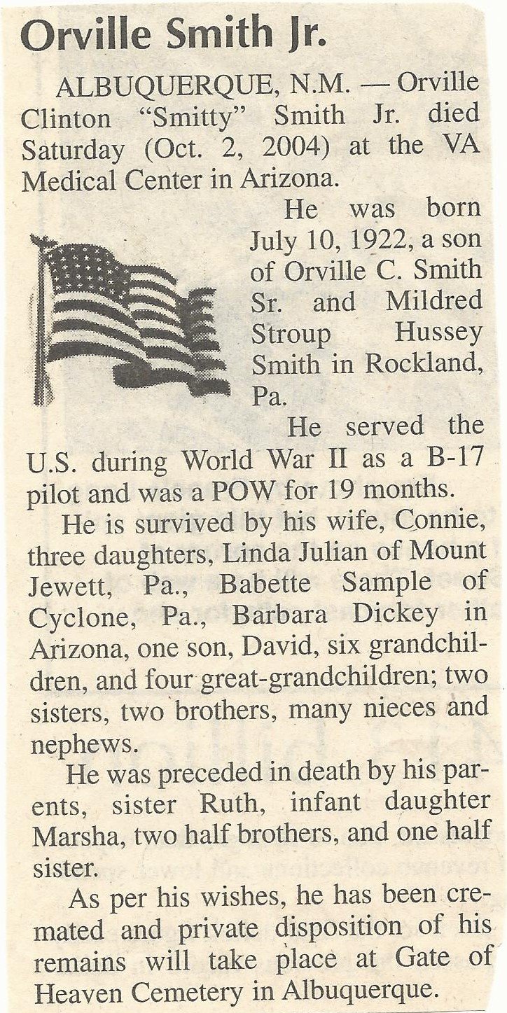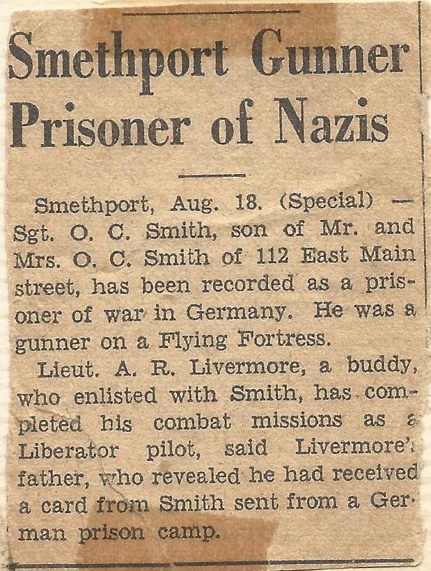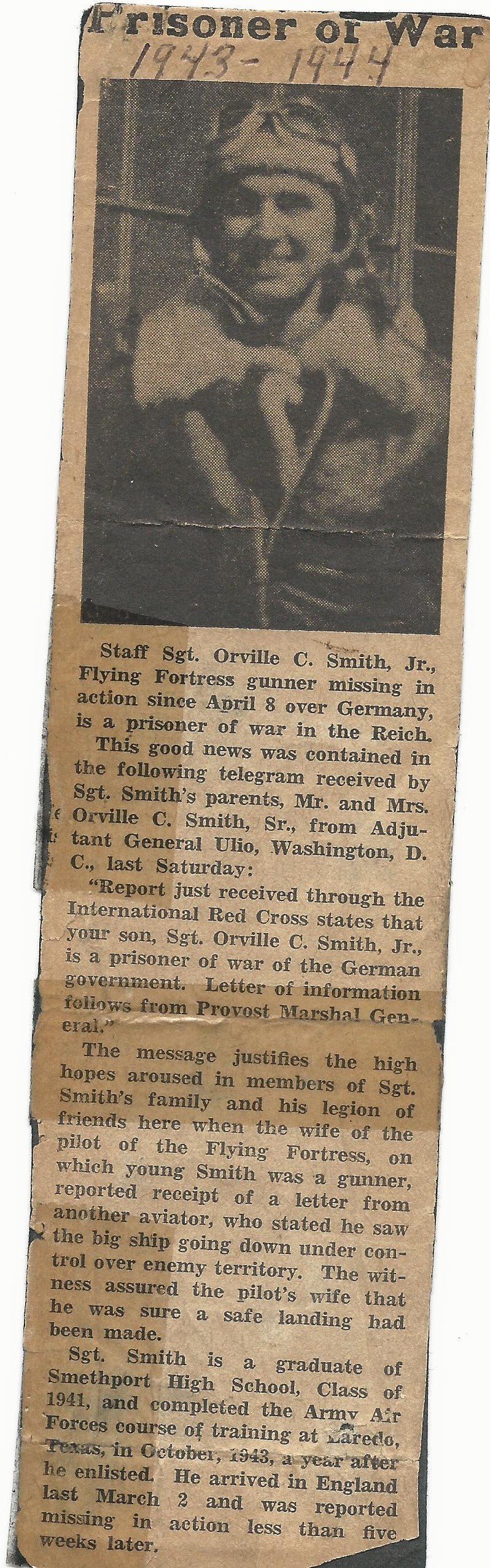 - Original newspaper article announcing the "good news" that Smith was not KIA and was reported as a POW.