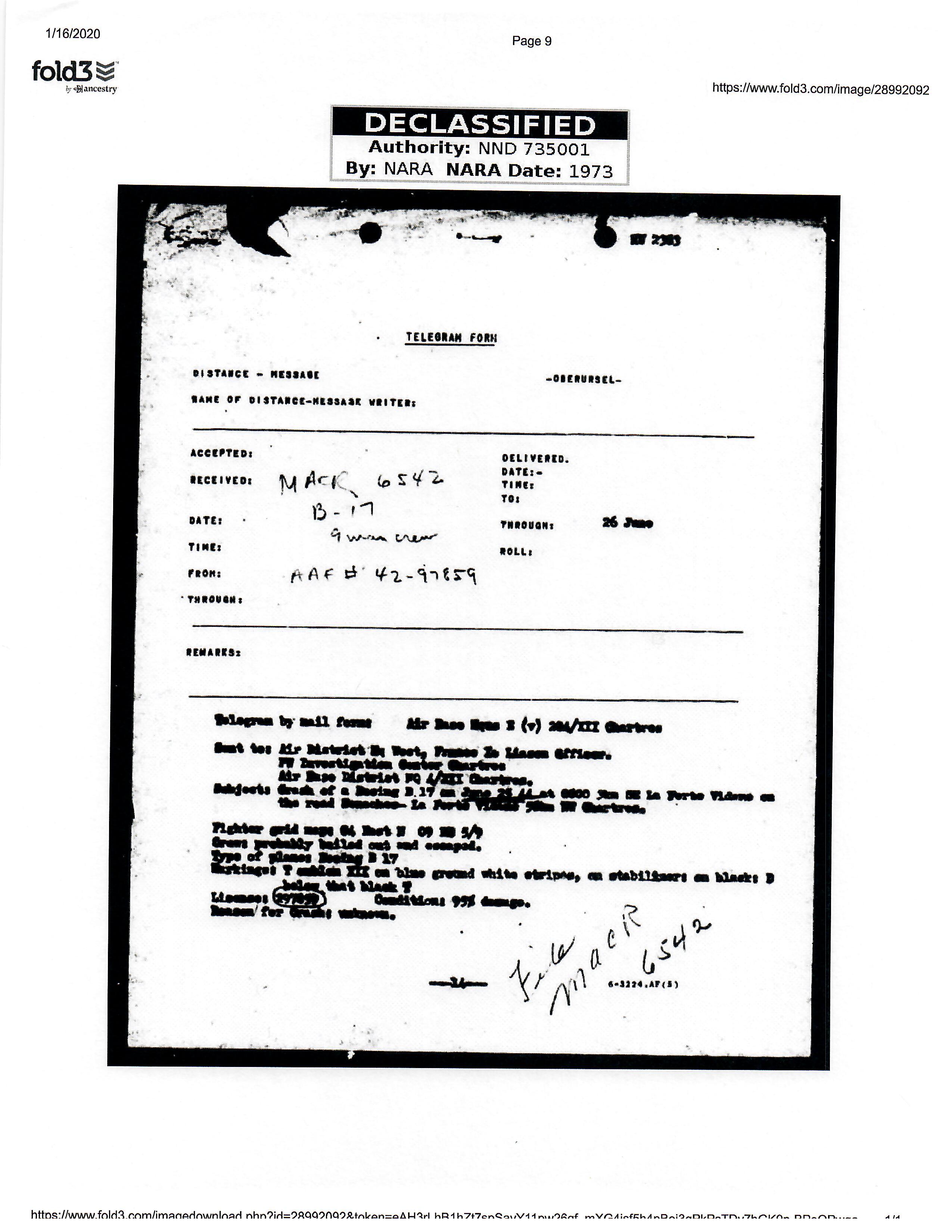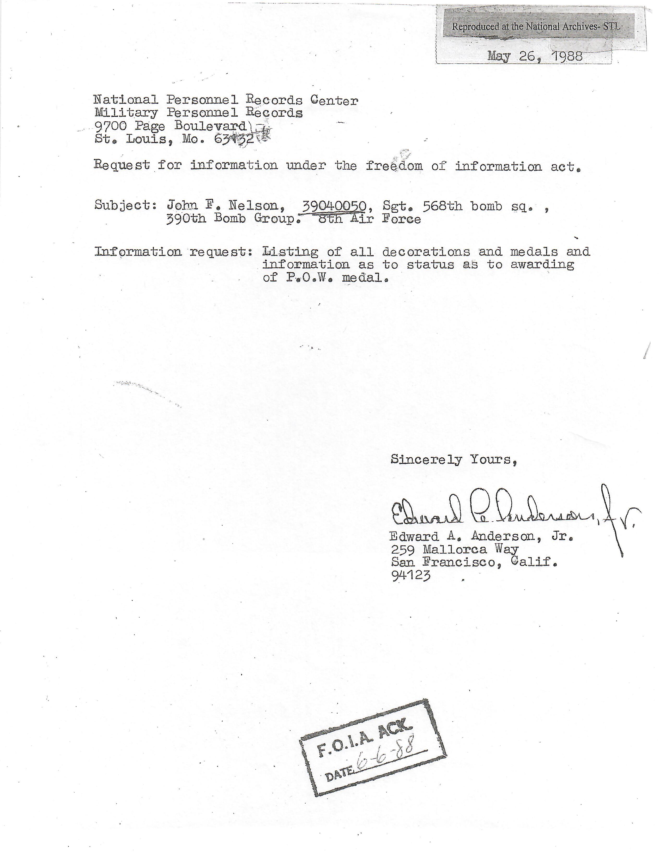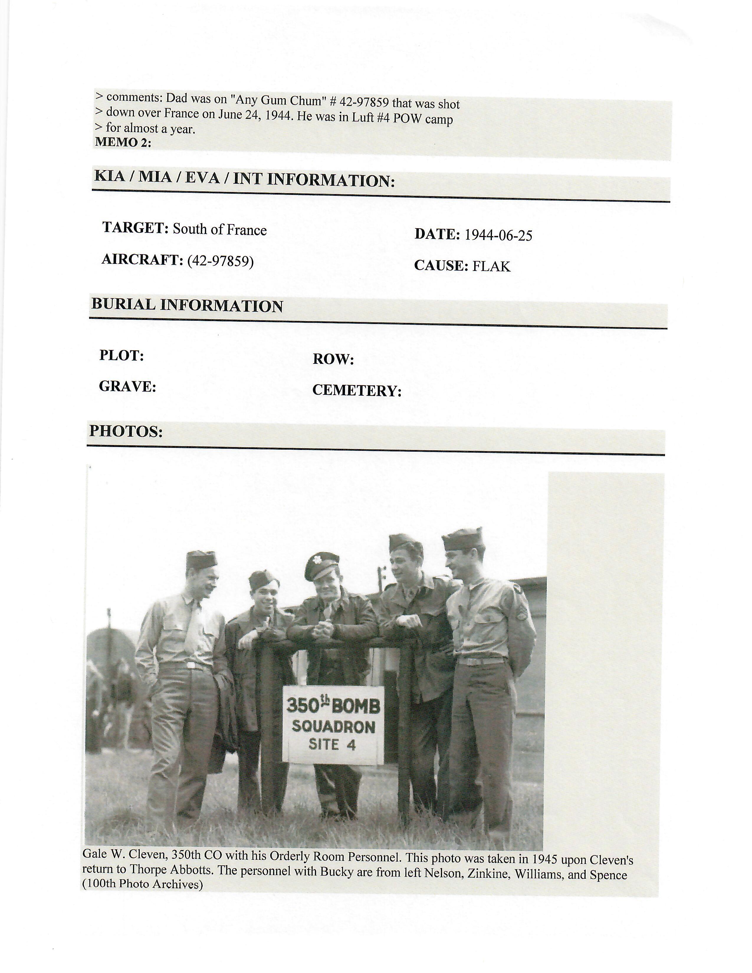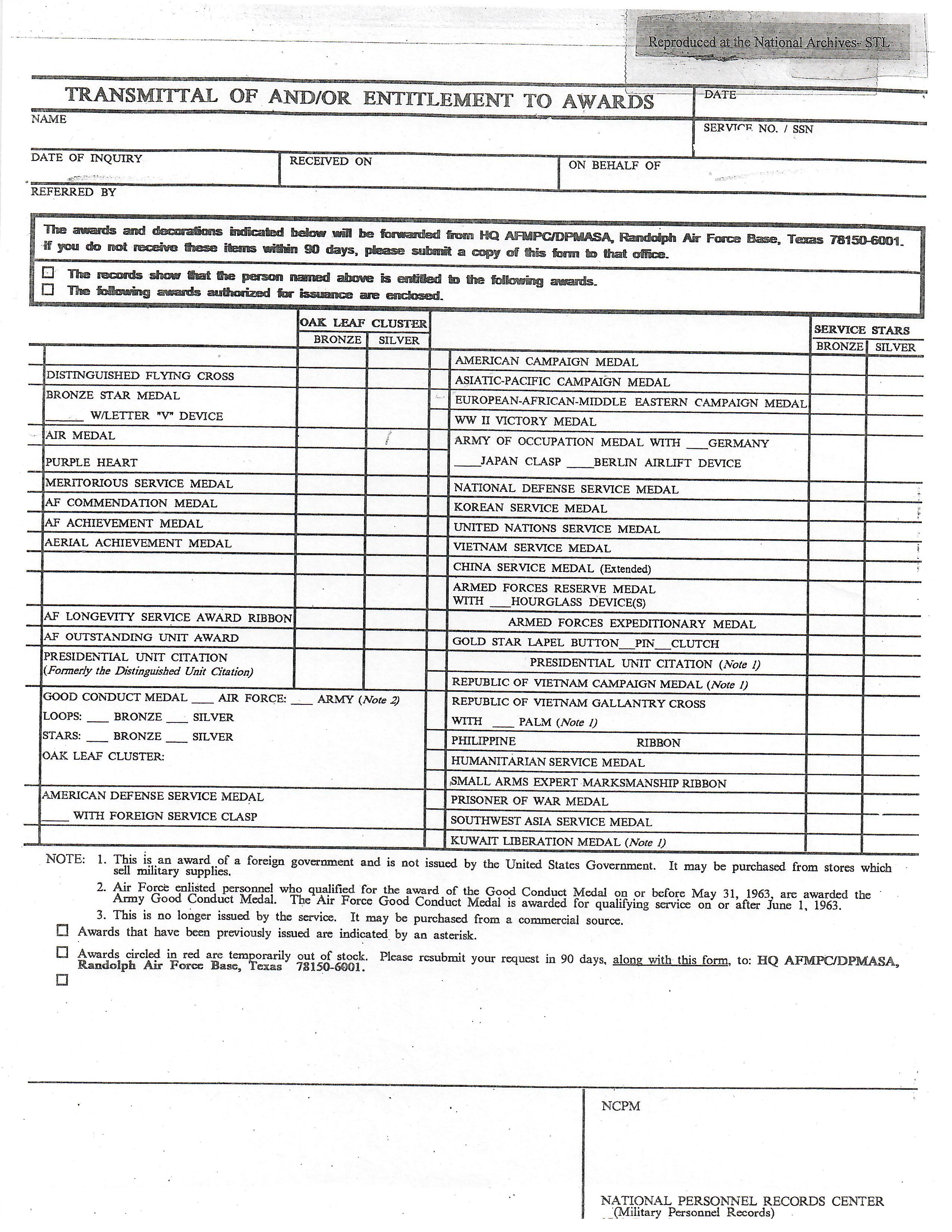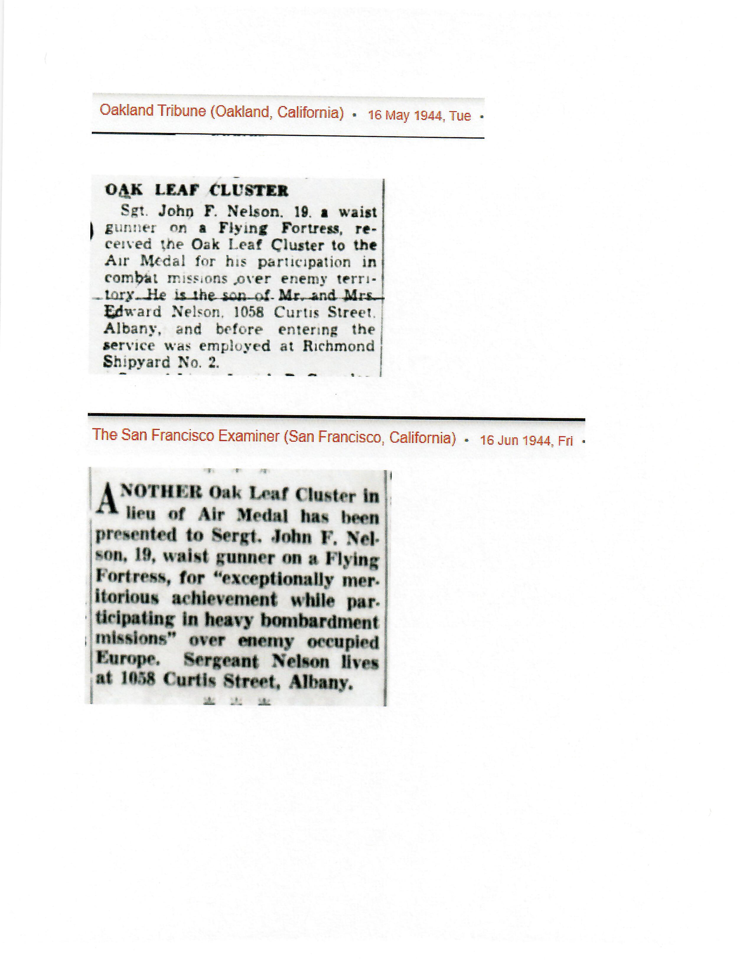 - Original Air Medal citation and oak leaf citation.