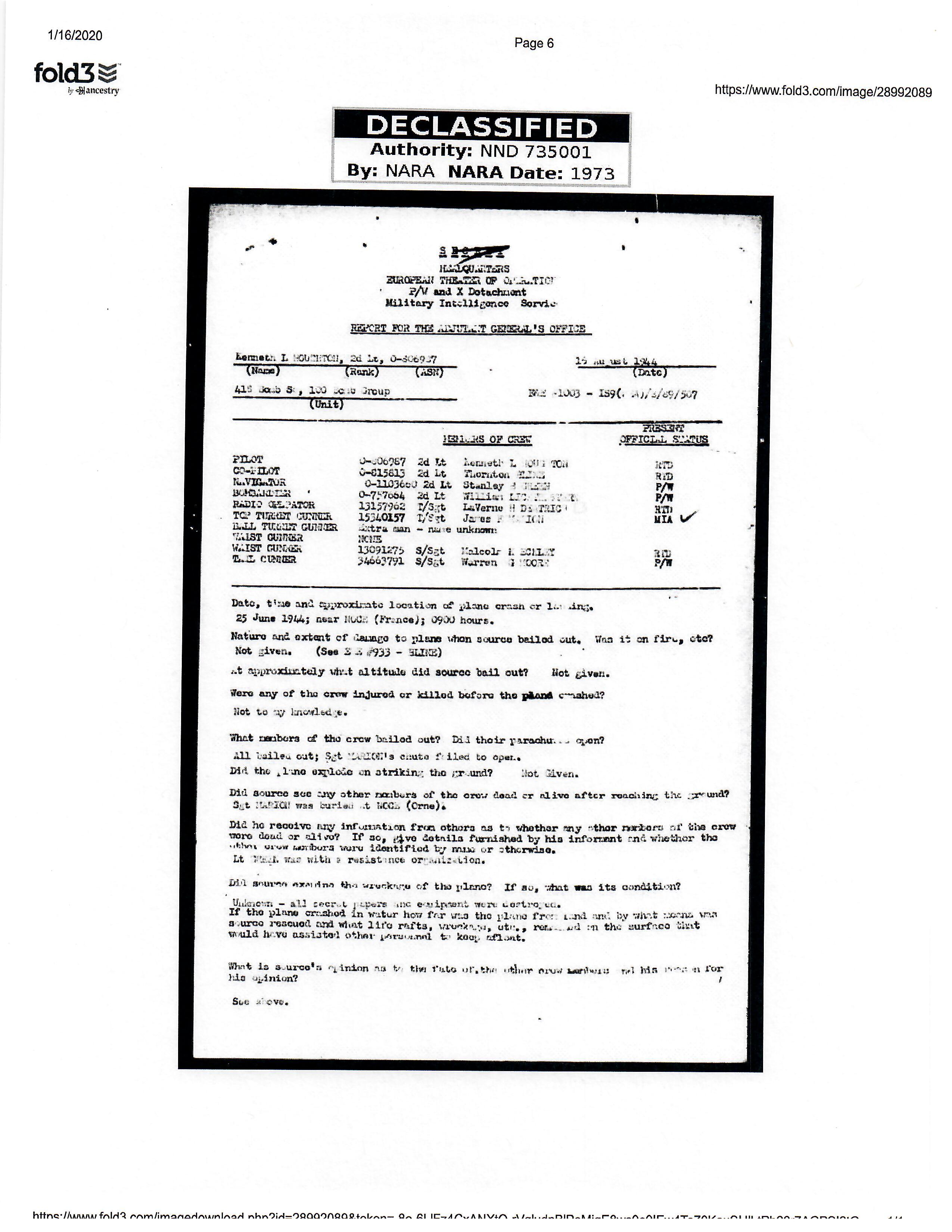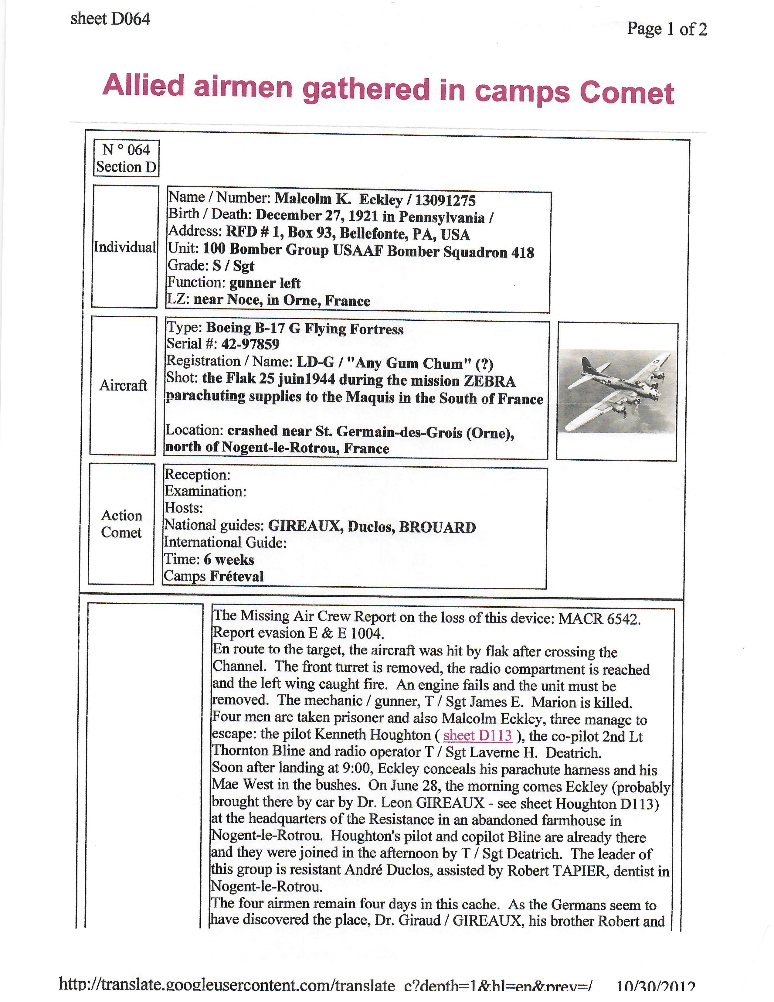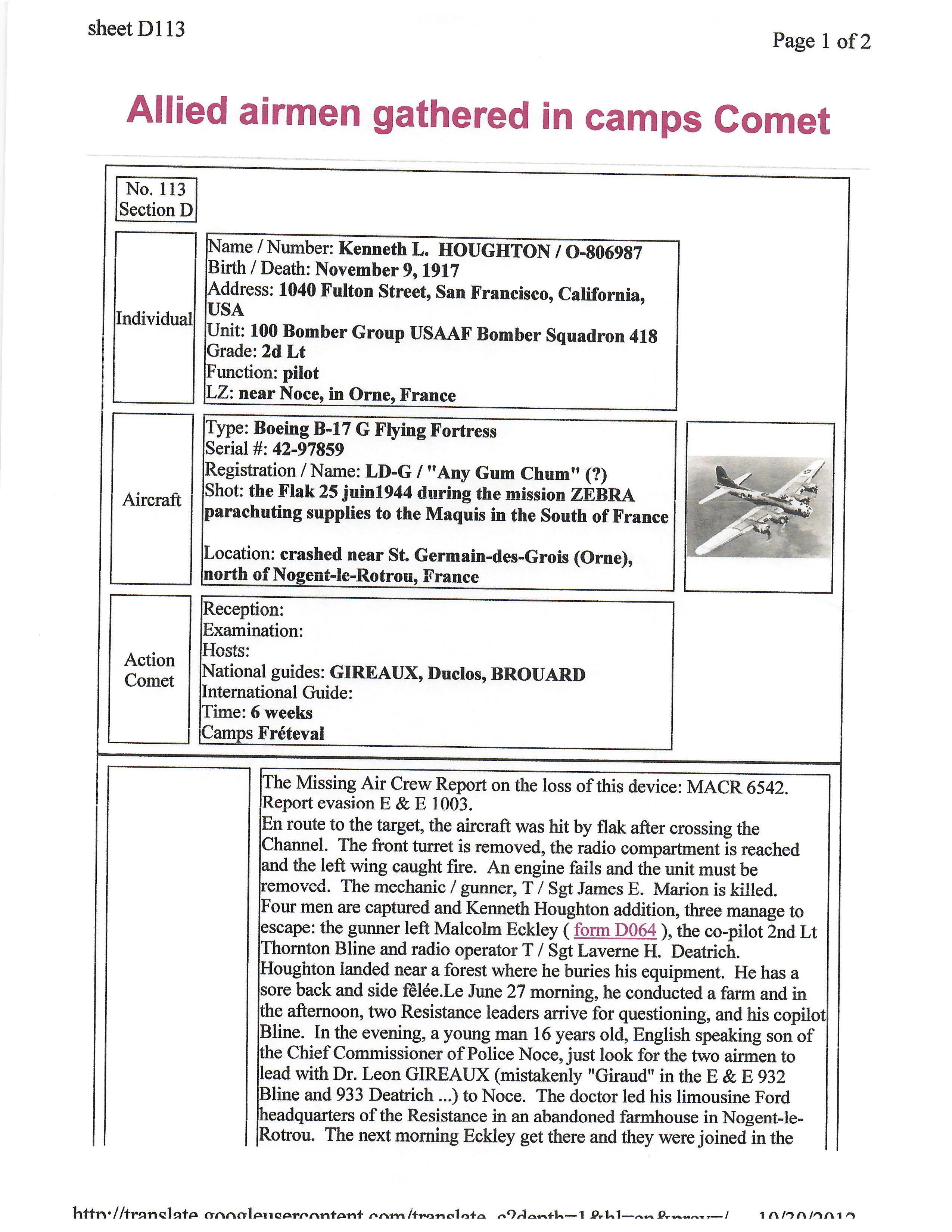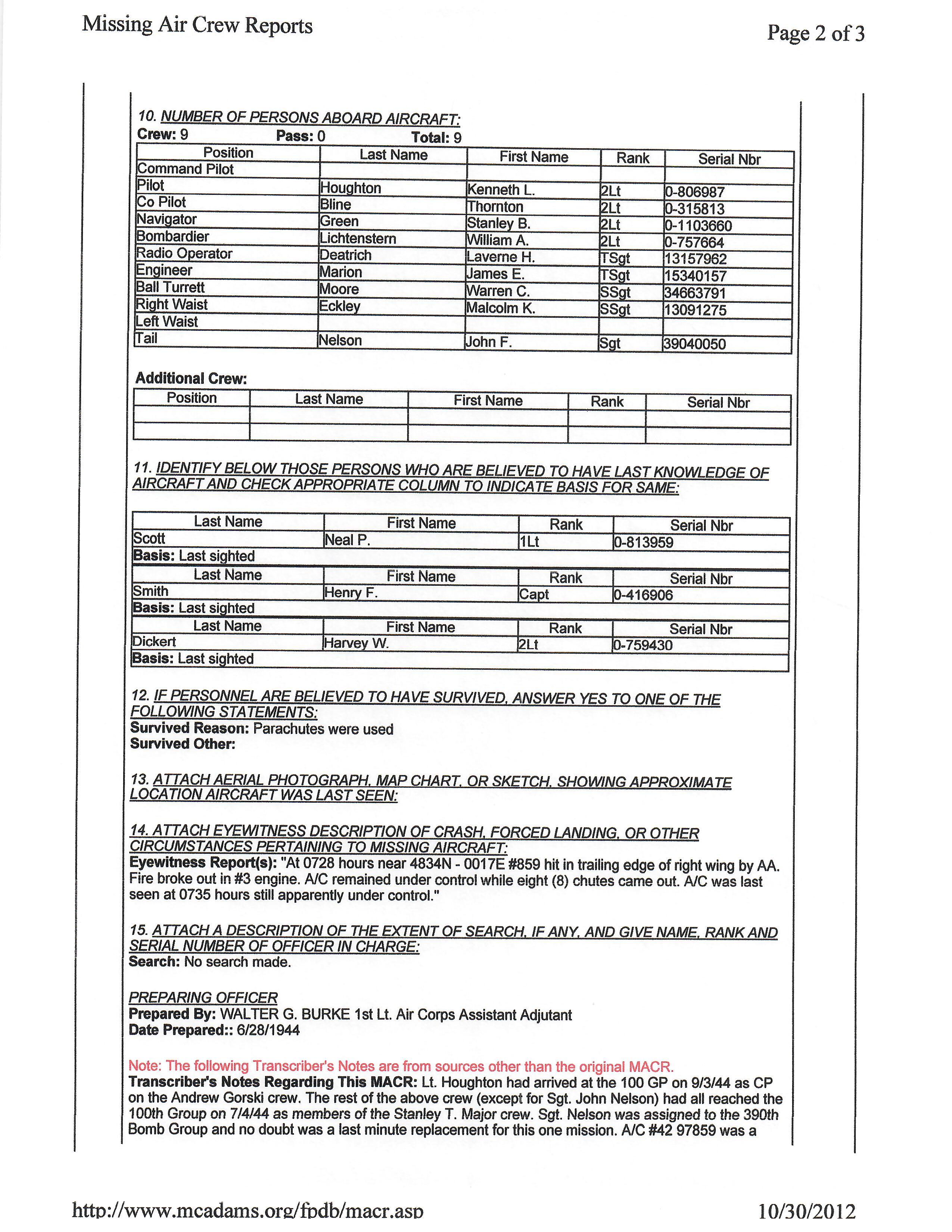 - Original Air Medal citation and oak leaf citation.