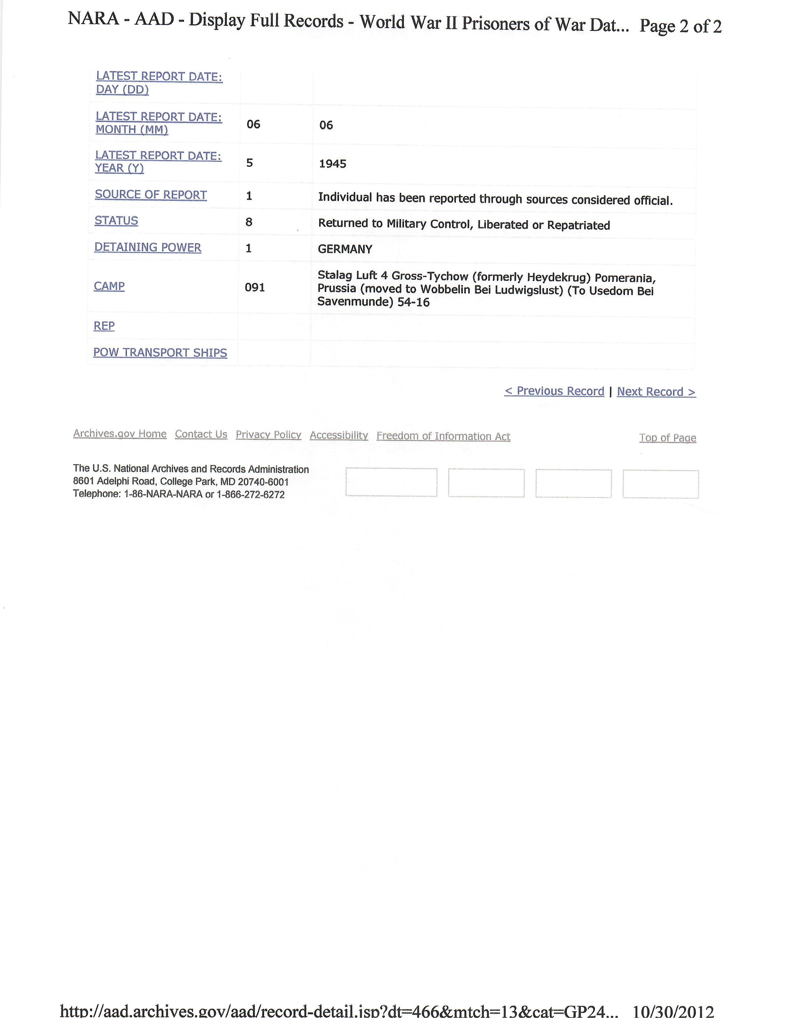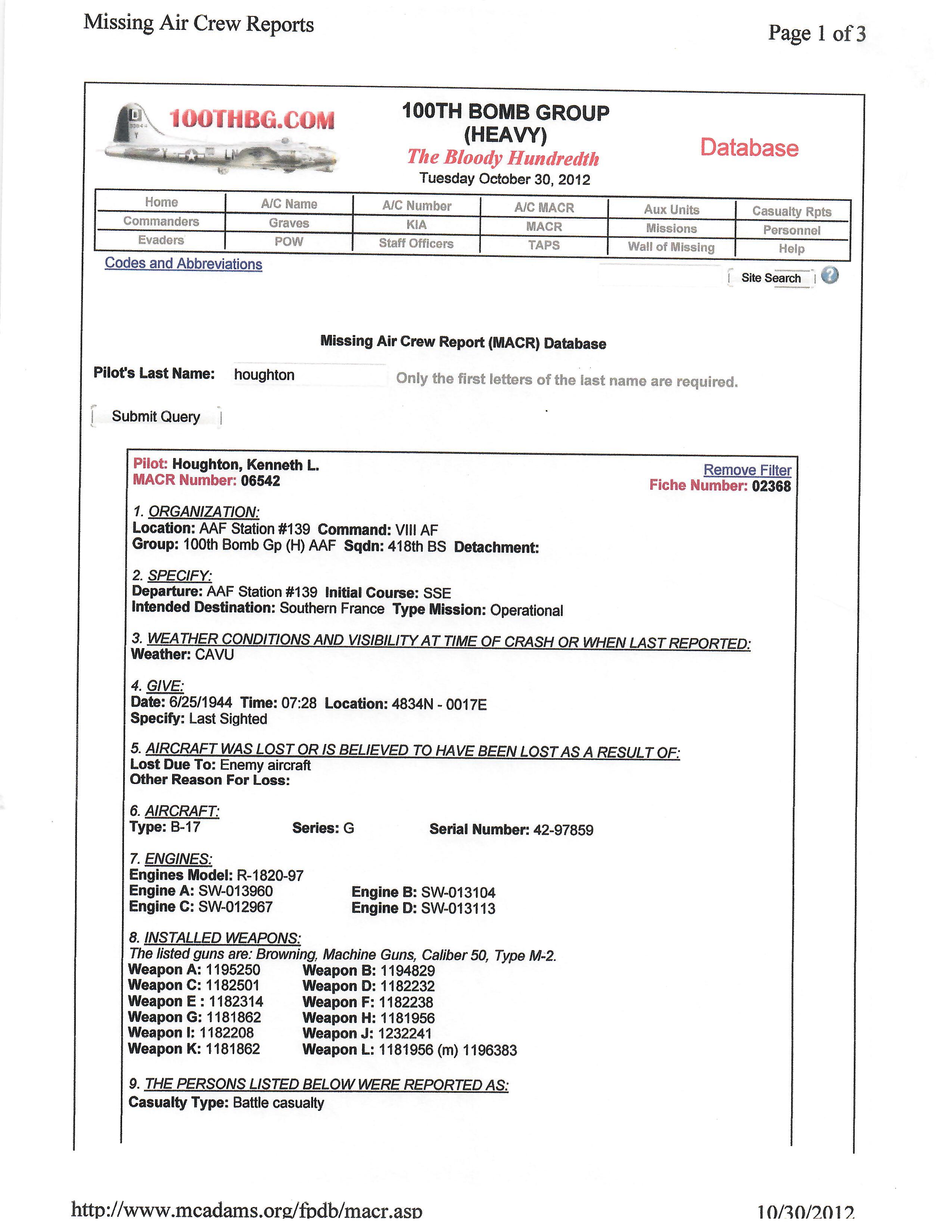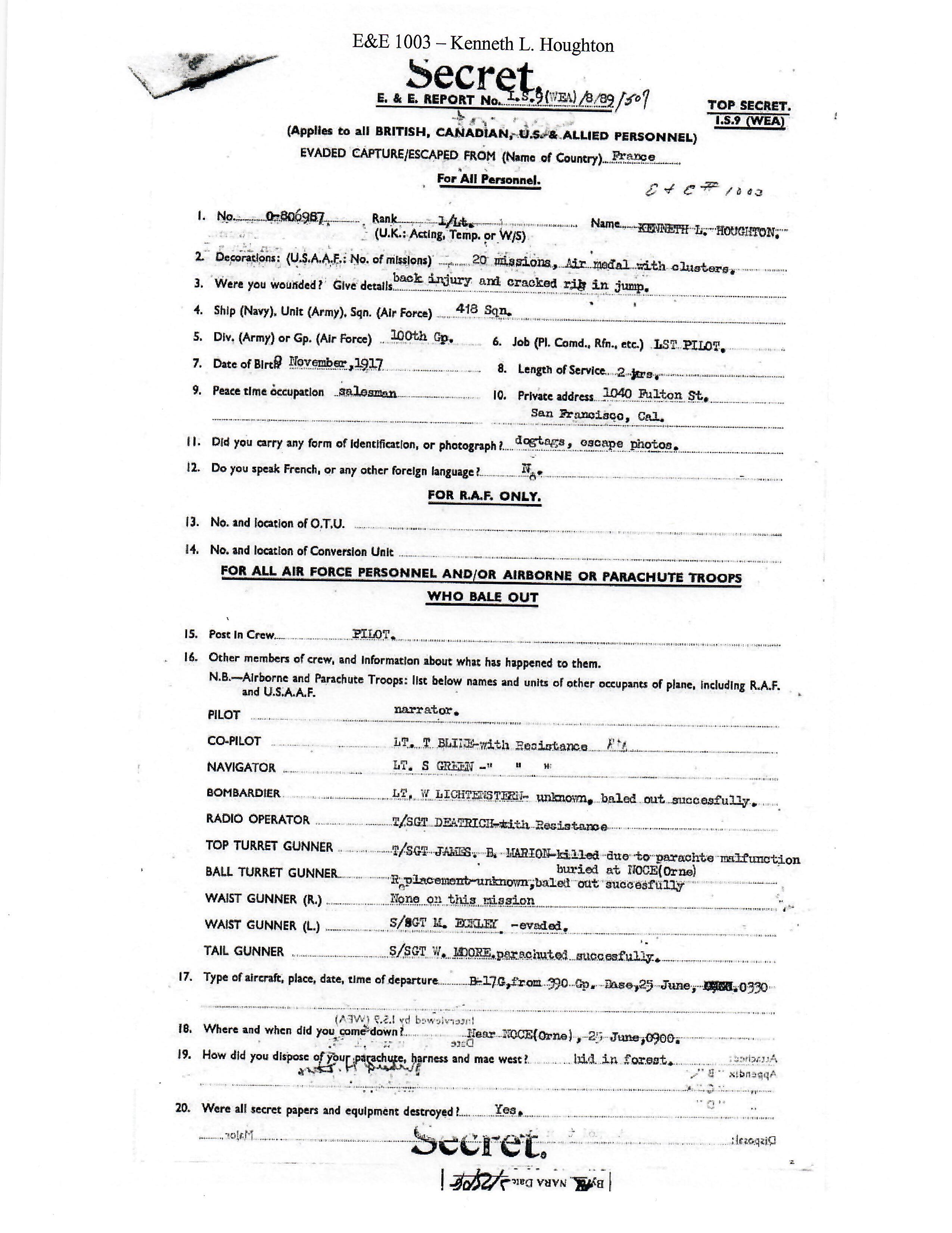 - Binder of research which includes a copy of the original POW MEDAL Application, many of his mission reports and much more.
