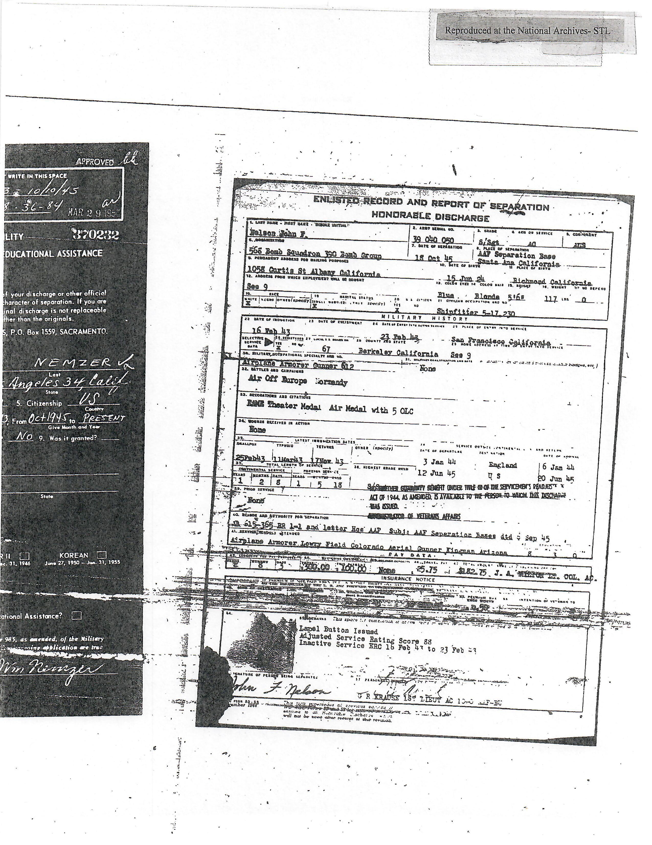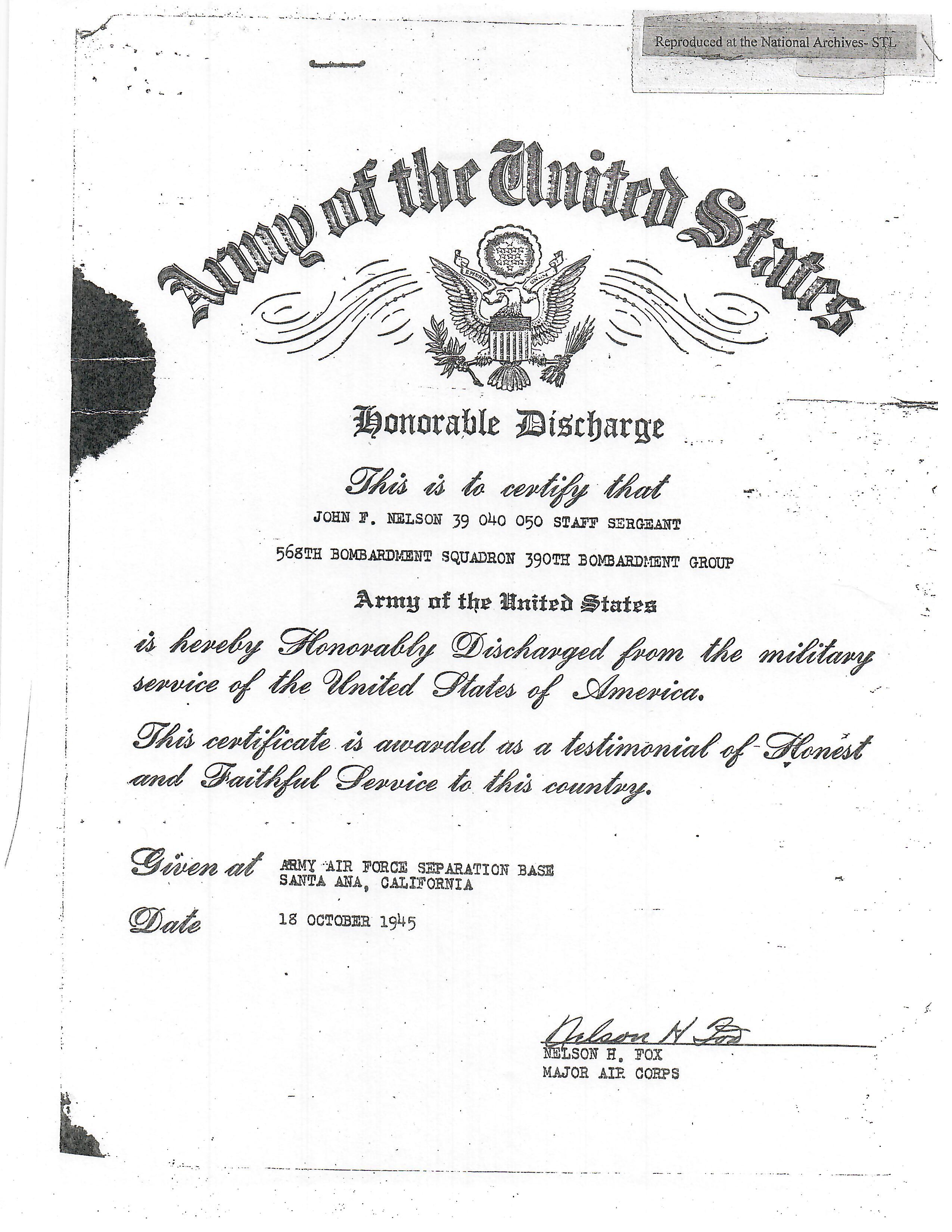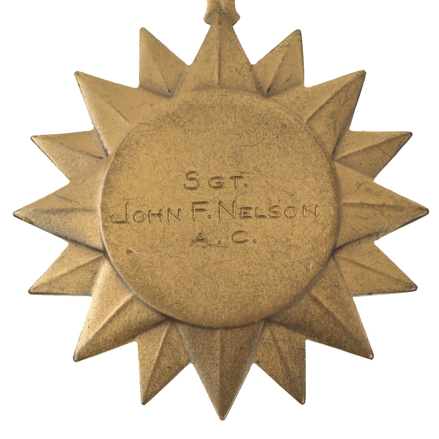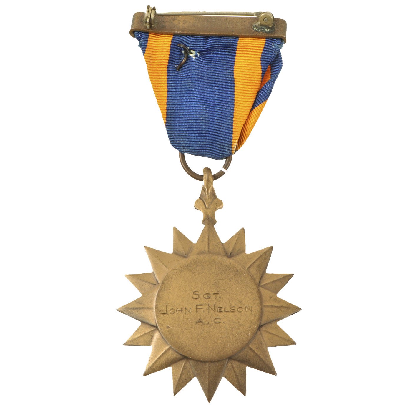 - Air medal (with three oak leaf clusters) engraved to SGT. JOHN F. NELSON