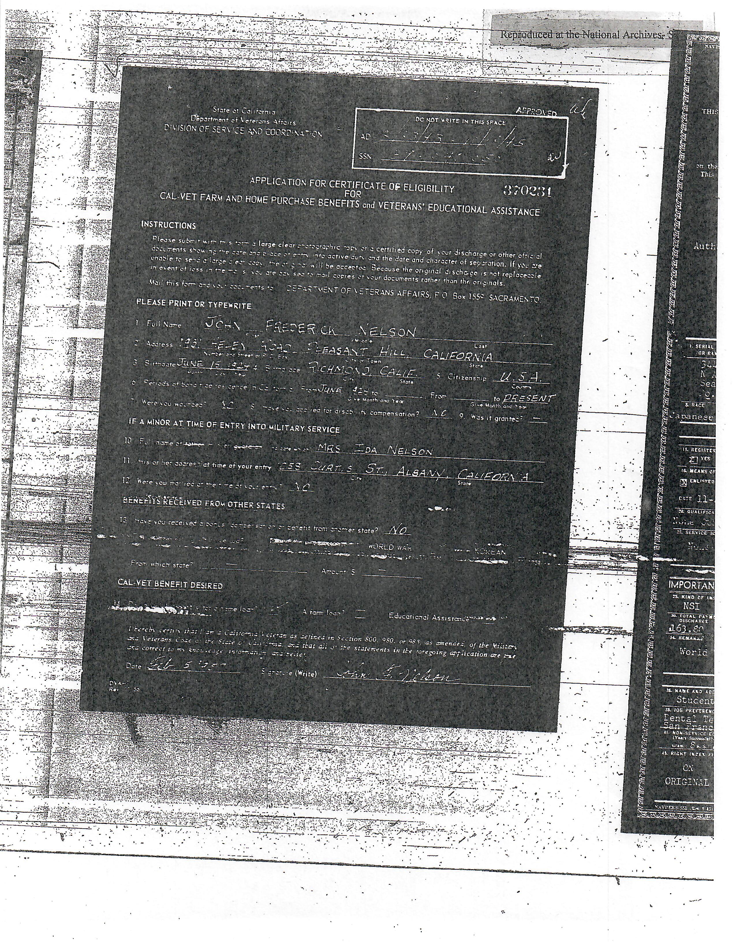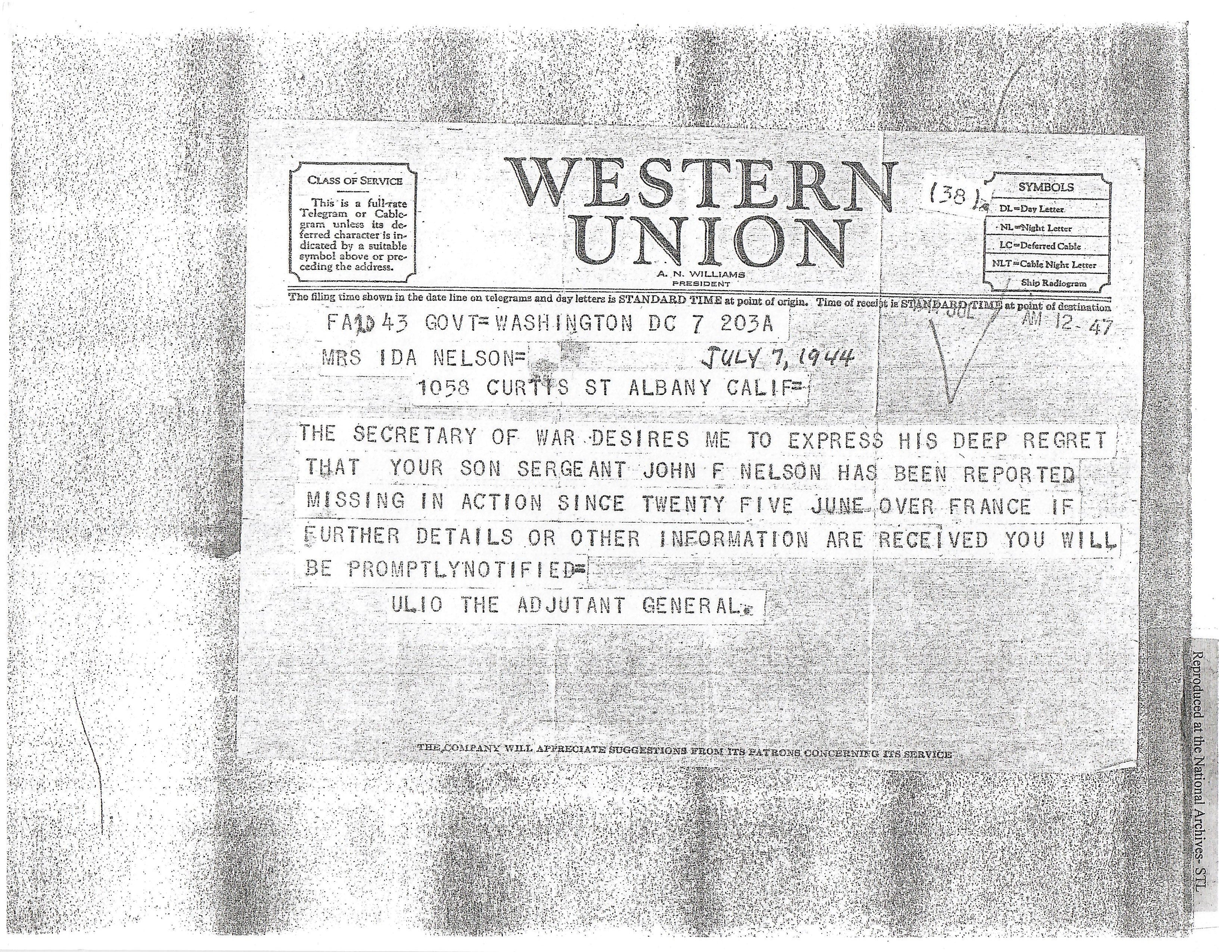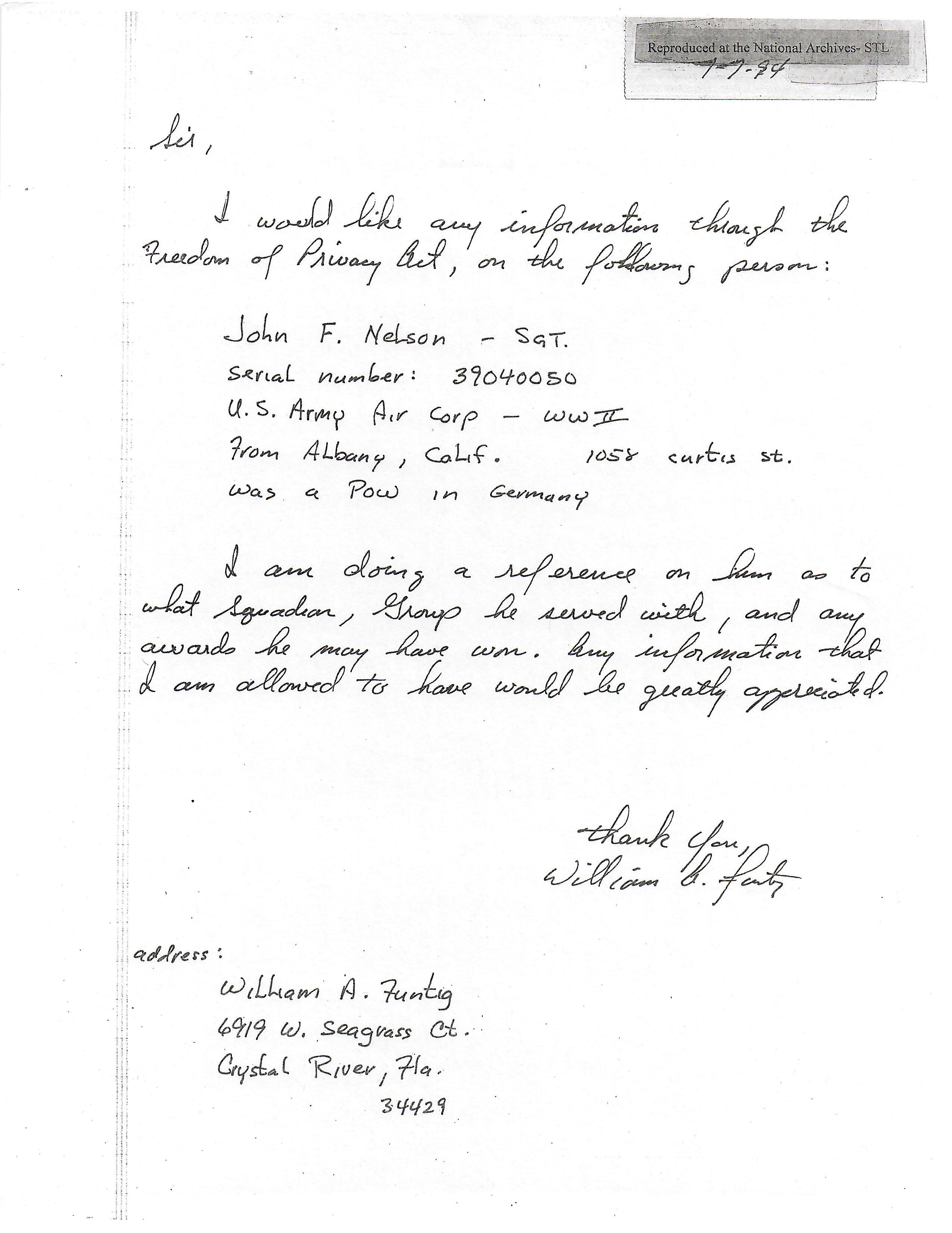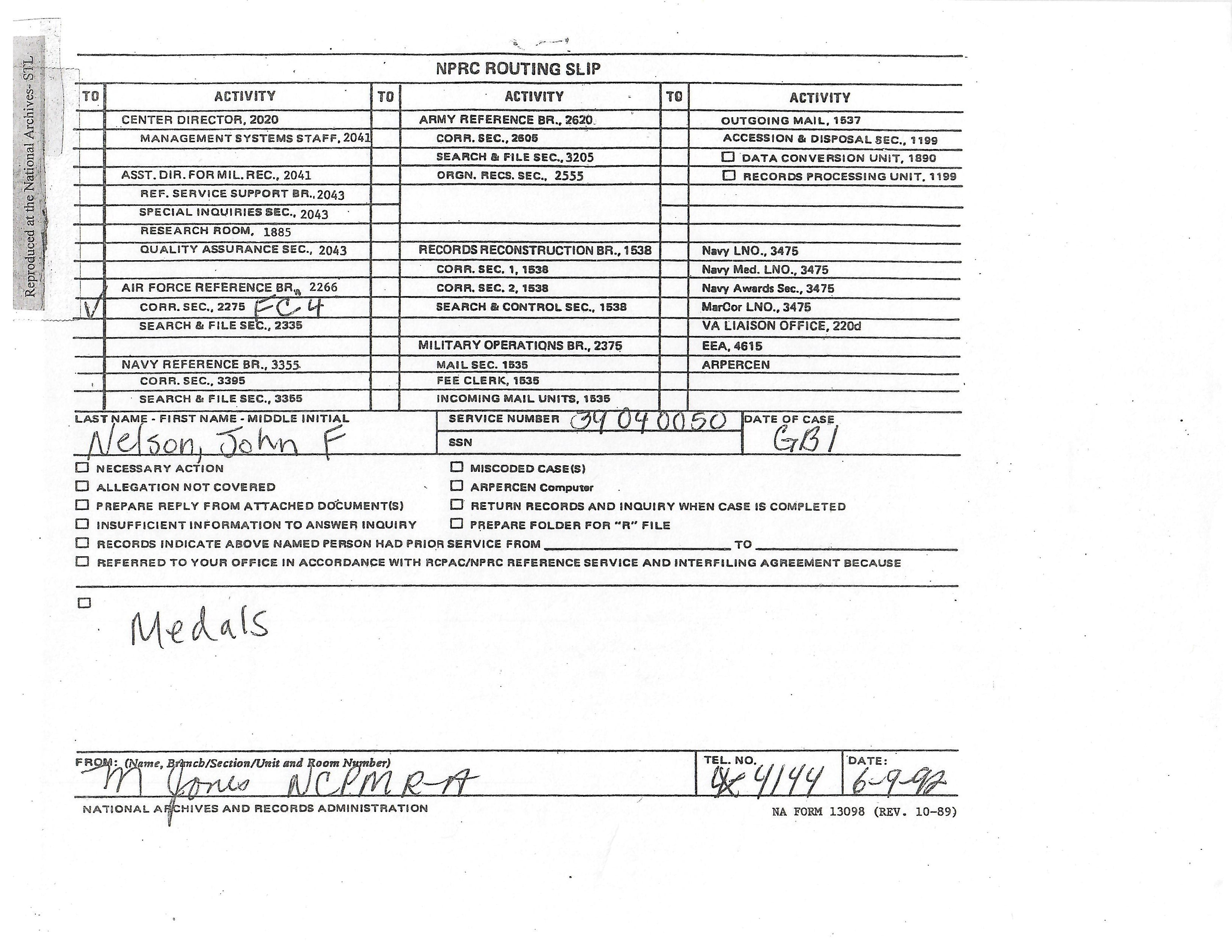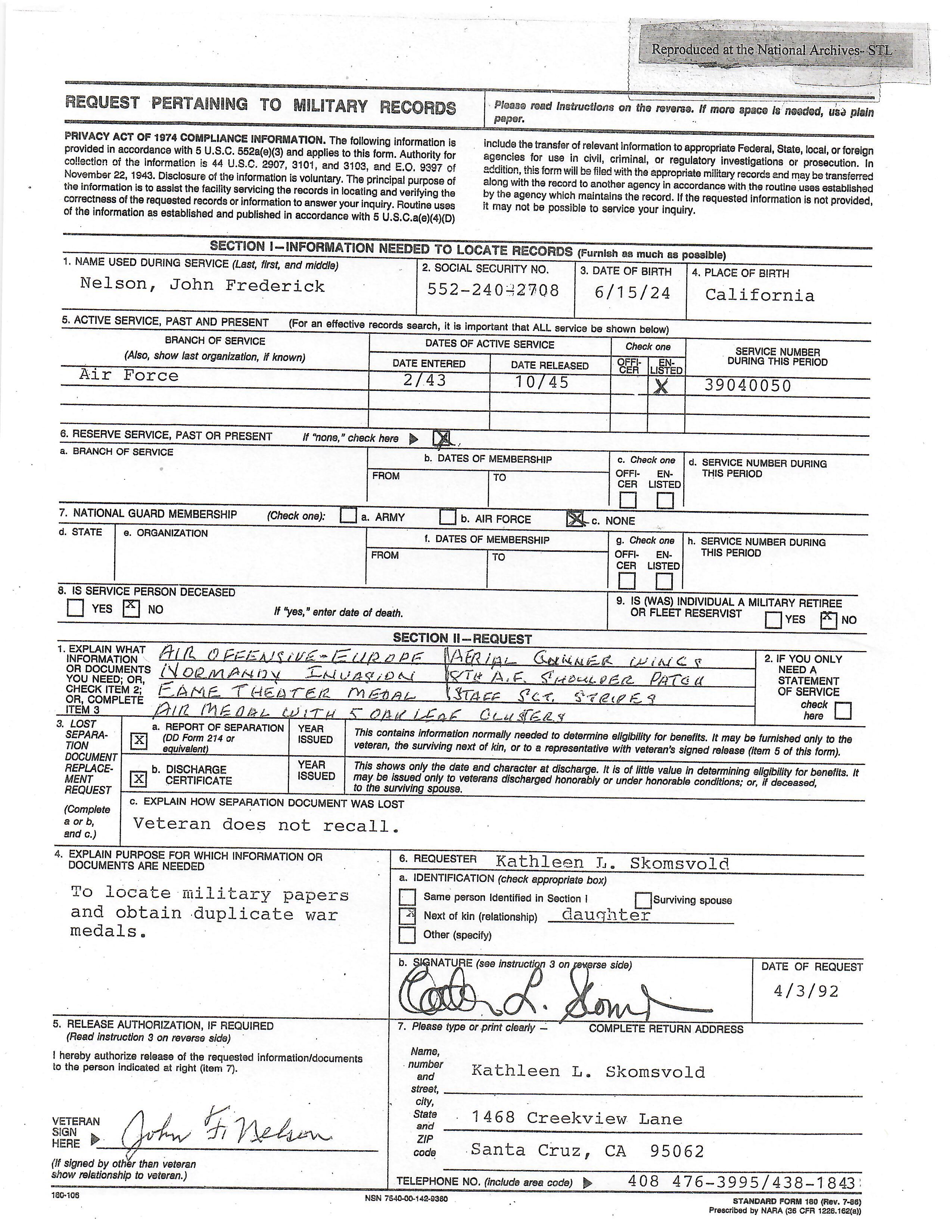 - Air medal (with three oak leaf clusters) engraved to SGT. JOHN F. NELSON