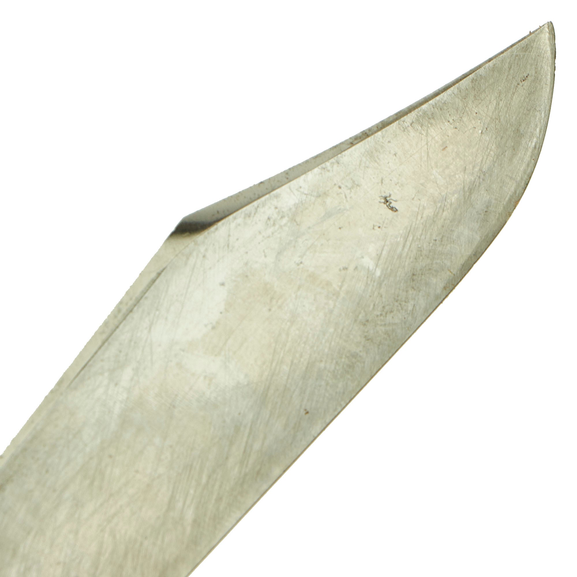 The example here was manufactured sometime between 1950-1956. These are almost identical to the WWII issue, with the main differences being markings and the more durable plastic grips. This very nice service worn example offered in good functional condition is marked on the base of the blade (ricasso) as follows: