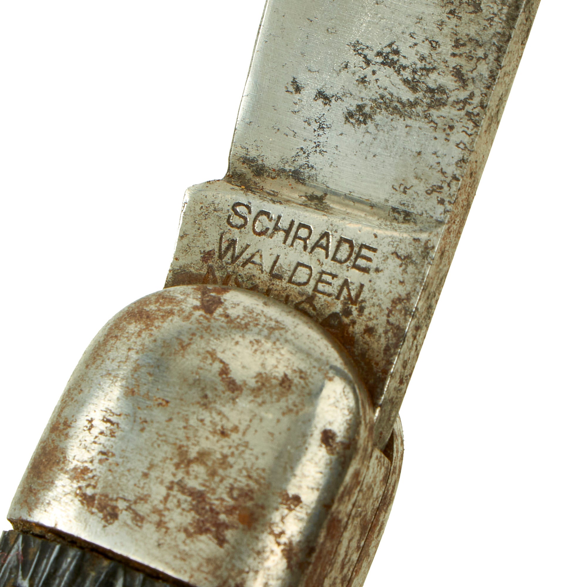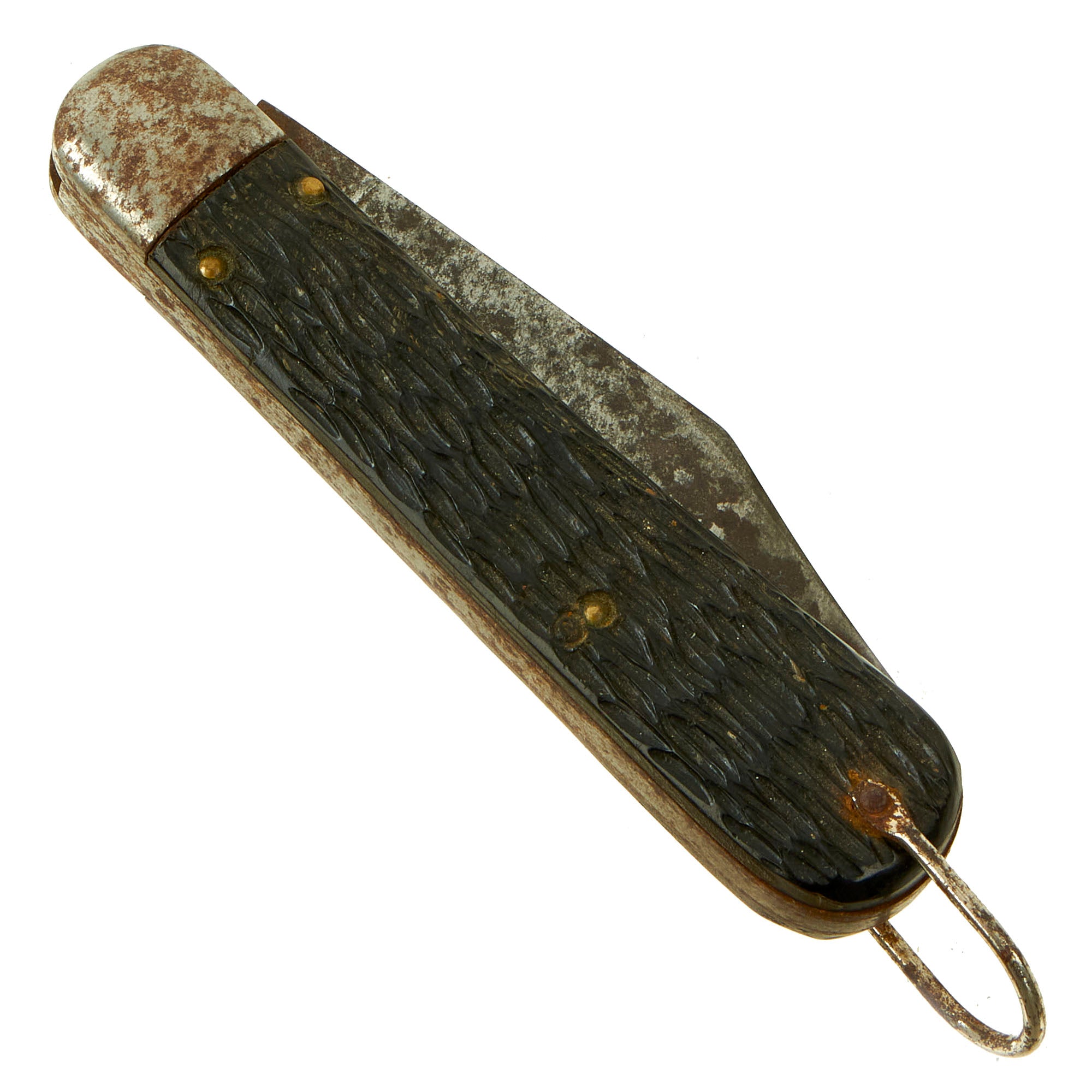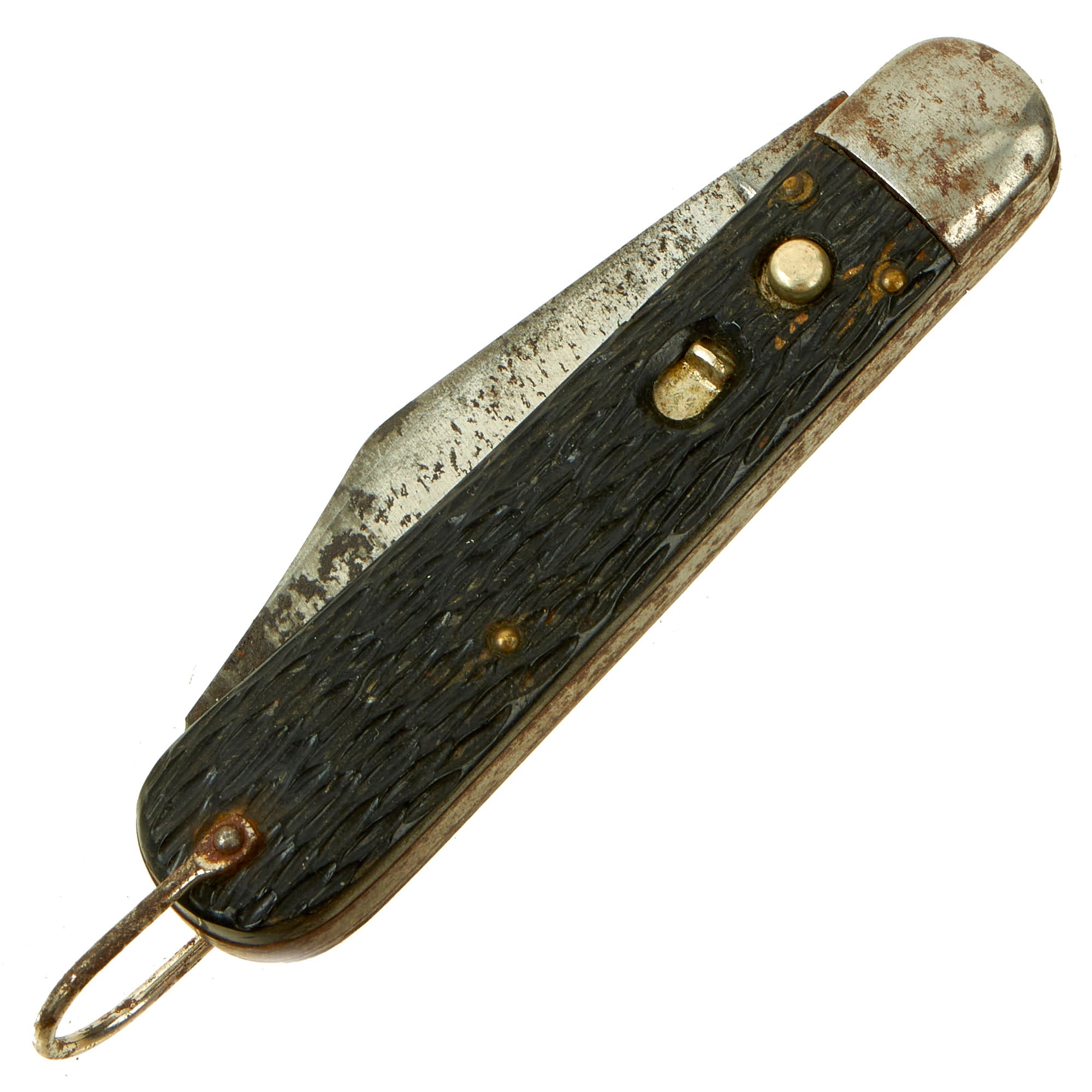 Original Item: Only One Available. This is a very nice example of an early Korean War issue M2 Paratrooper pocket knife, with correct black plastic "jigged bone" handles. These are almost identical to the WWII issue, with the main differences being markings and the more durable plastic grips. These are difficult to find, however they are a much better value than WWII produced examples.