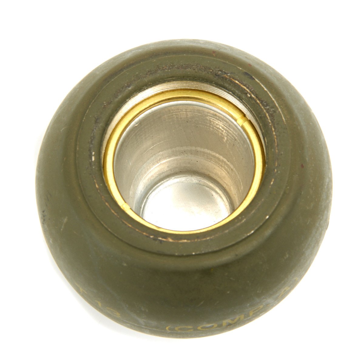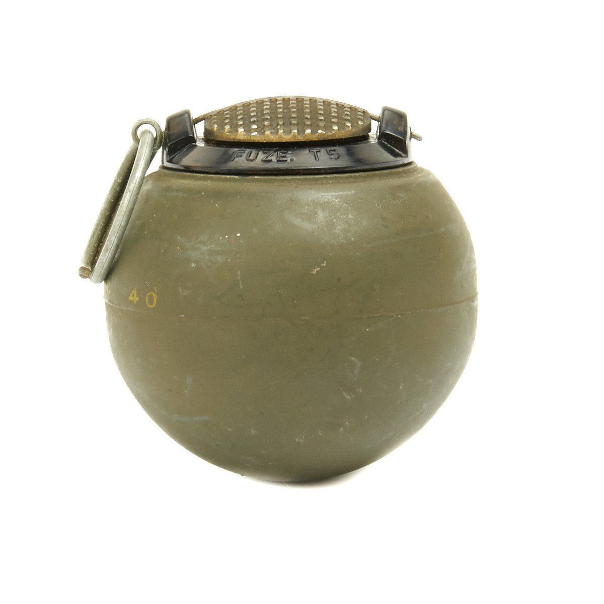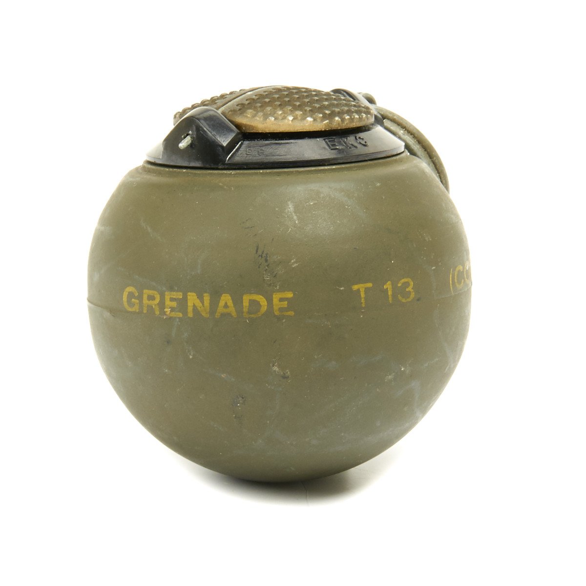 Original Item: Only One Available. Totally inert and non-functional, this is an original WW2 BEANO T-13 hand grenade was an experimental hand grenade developed by the Office of Strategic Services (which later became the CIA) in the latter years of WW2. The grenade is marked EKC 40 indicating the manufacturer, the Eastman Kodak Company. COMP A indicates composition A explosive was used. This example is offered in excellent condition.