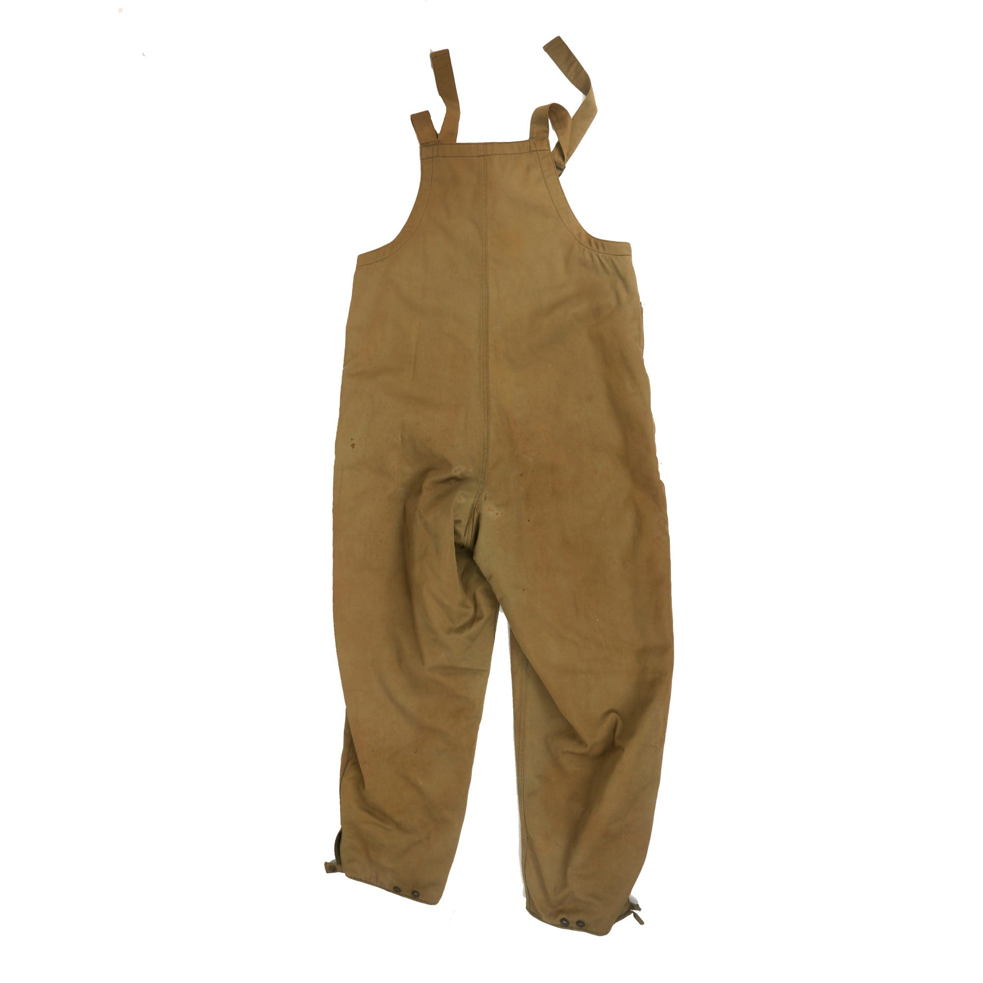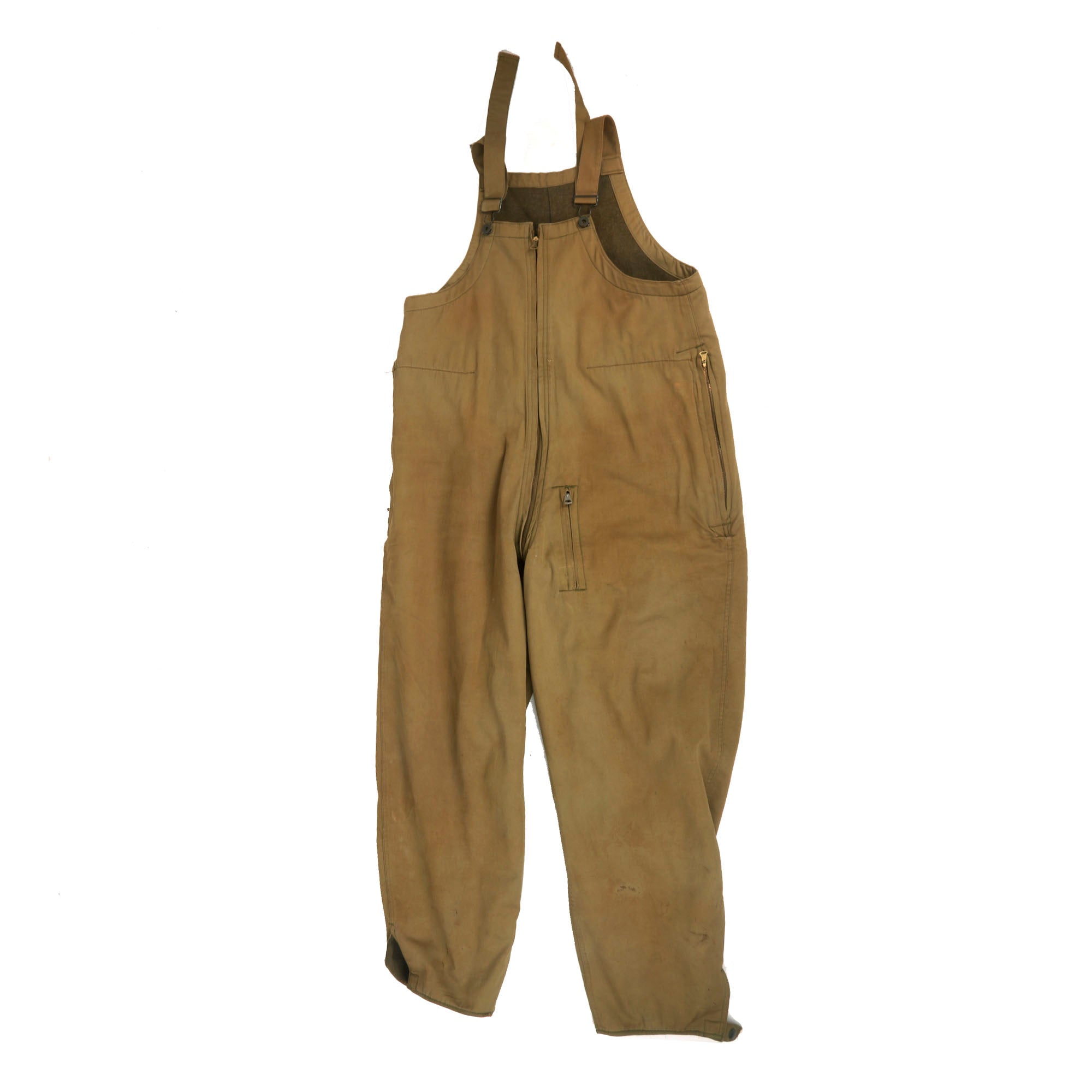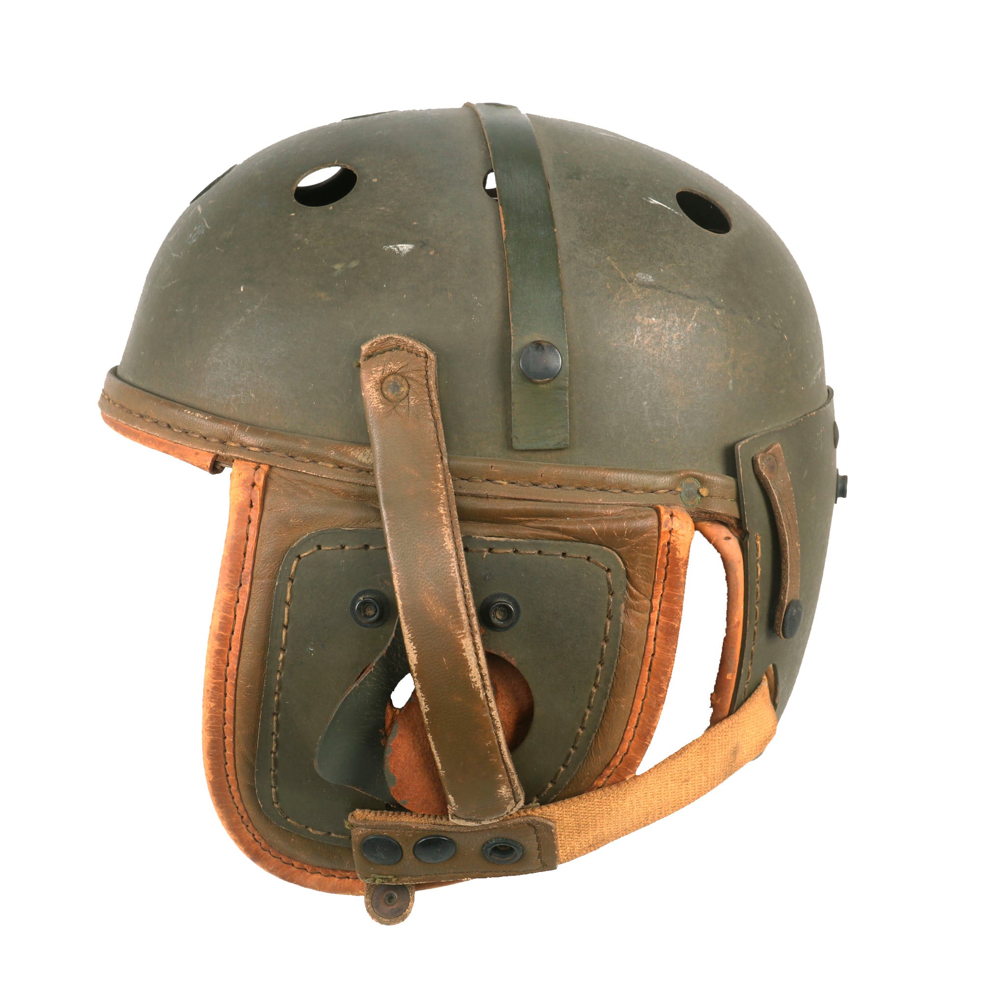 Original Items: Only One Set Available. This gorgeous tanker set consists of an excellent condition set of WWII Tanker's Coveralls Winter, First Type, Wool Lined Twill, a fair condition M38 tanker helmet in size US 7 3/8, and a WWII Army shirt with an Armored patch and Technical Sergeant chevrons.