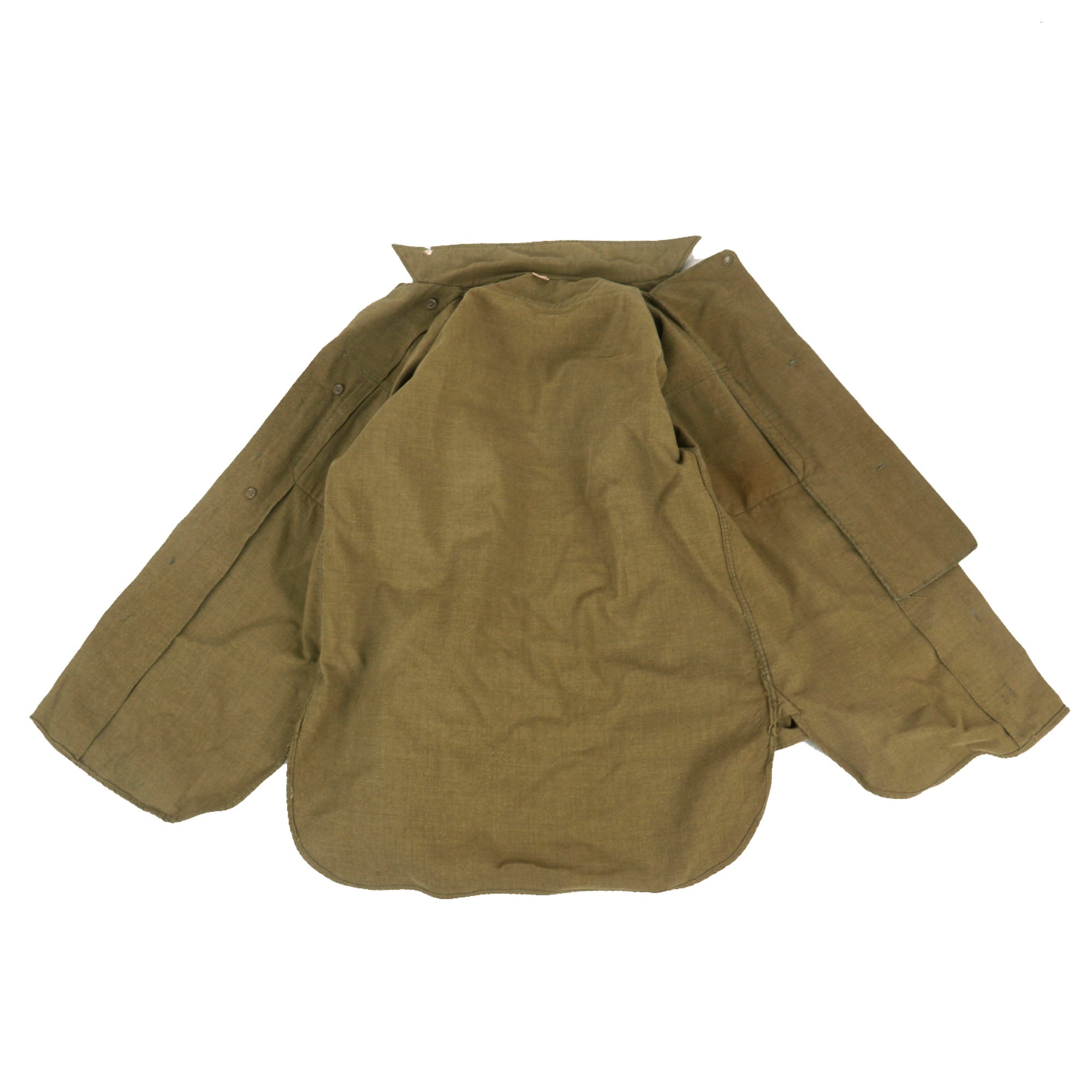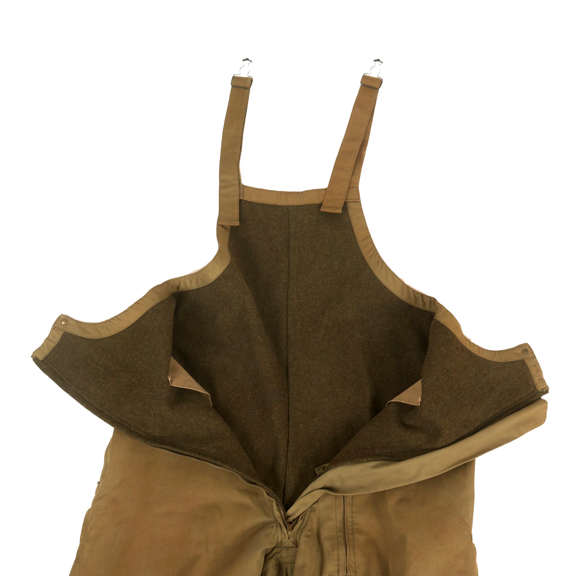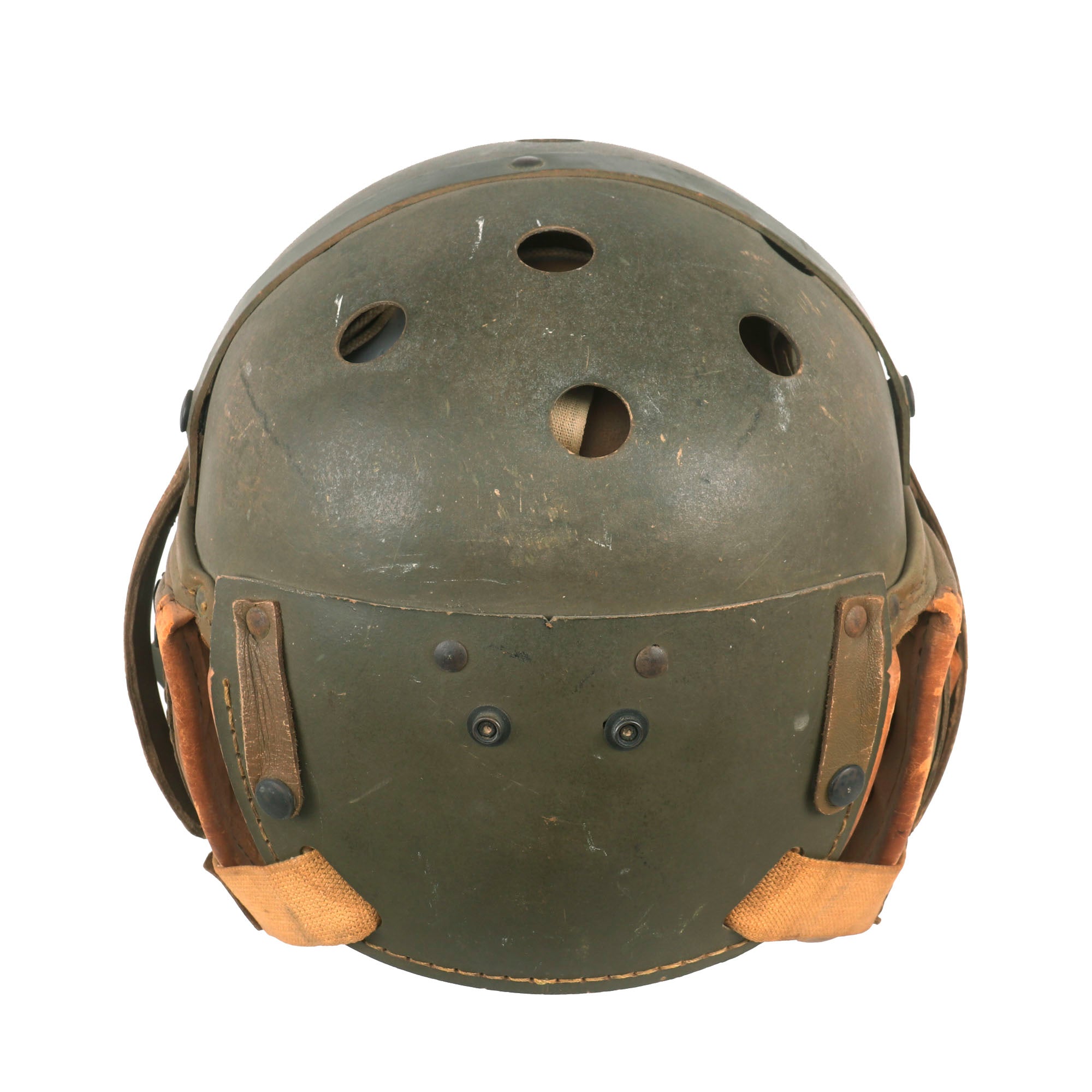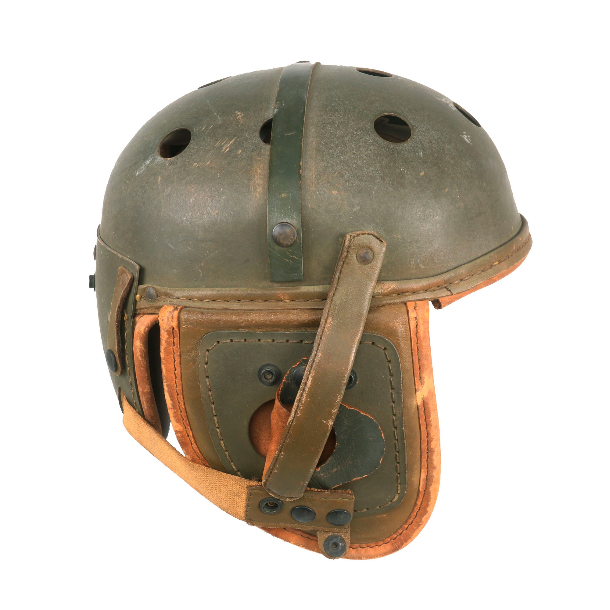 Original Items: Only One Set Available. This gorgeous tanker set consists of an excellent condition set of WWII Tanker's Coveralls Winter, First Type, Wool Lined Twill, a fair condition M38 tanker helmet in size US 7 3/8, and a WWII Army shirt with an Armored patch and Technical Sergeant chevrons.