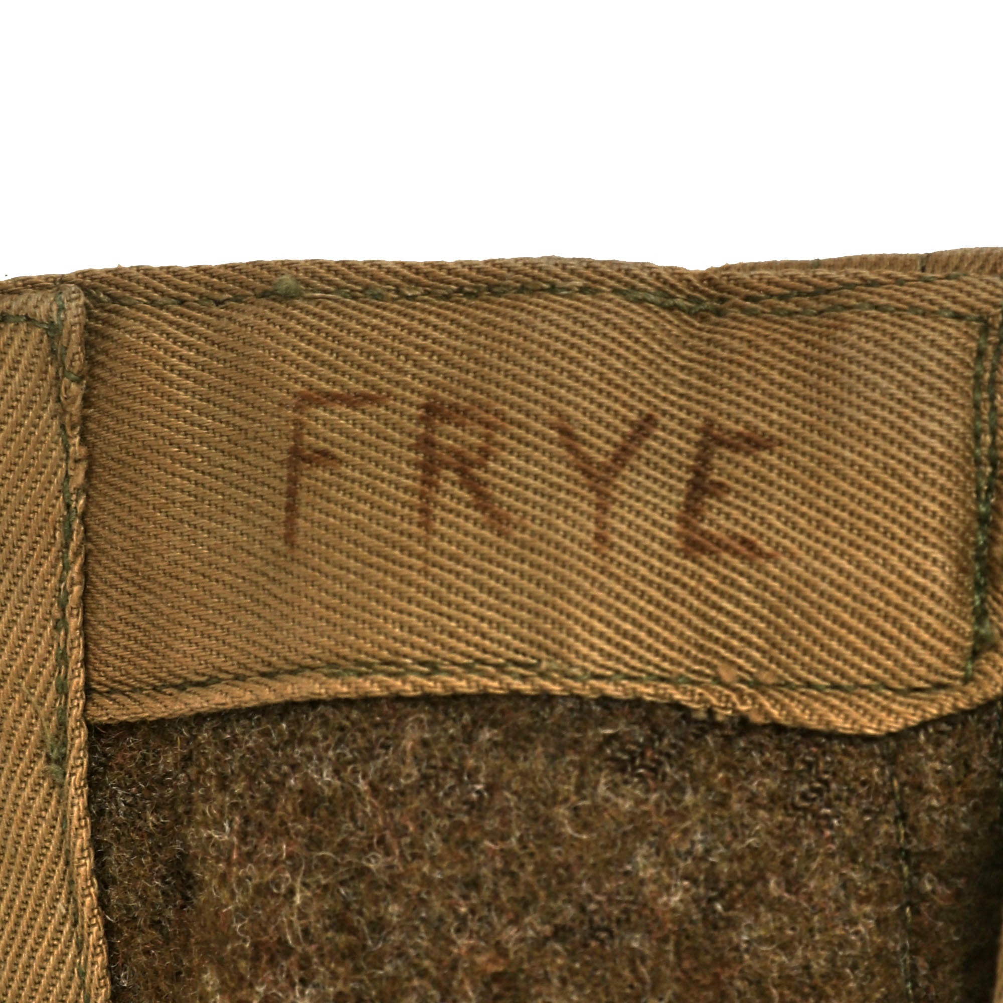 The coveralls are in good shape and don’t have any manufacturer’s marks we can see. There is a name, FRYE, near the top end of the zipper. A great set.