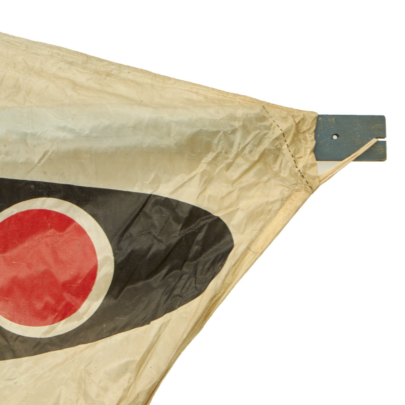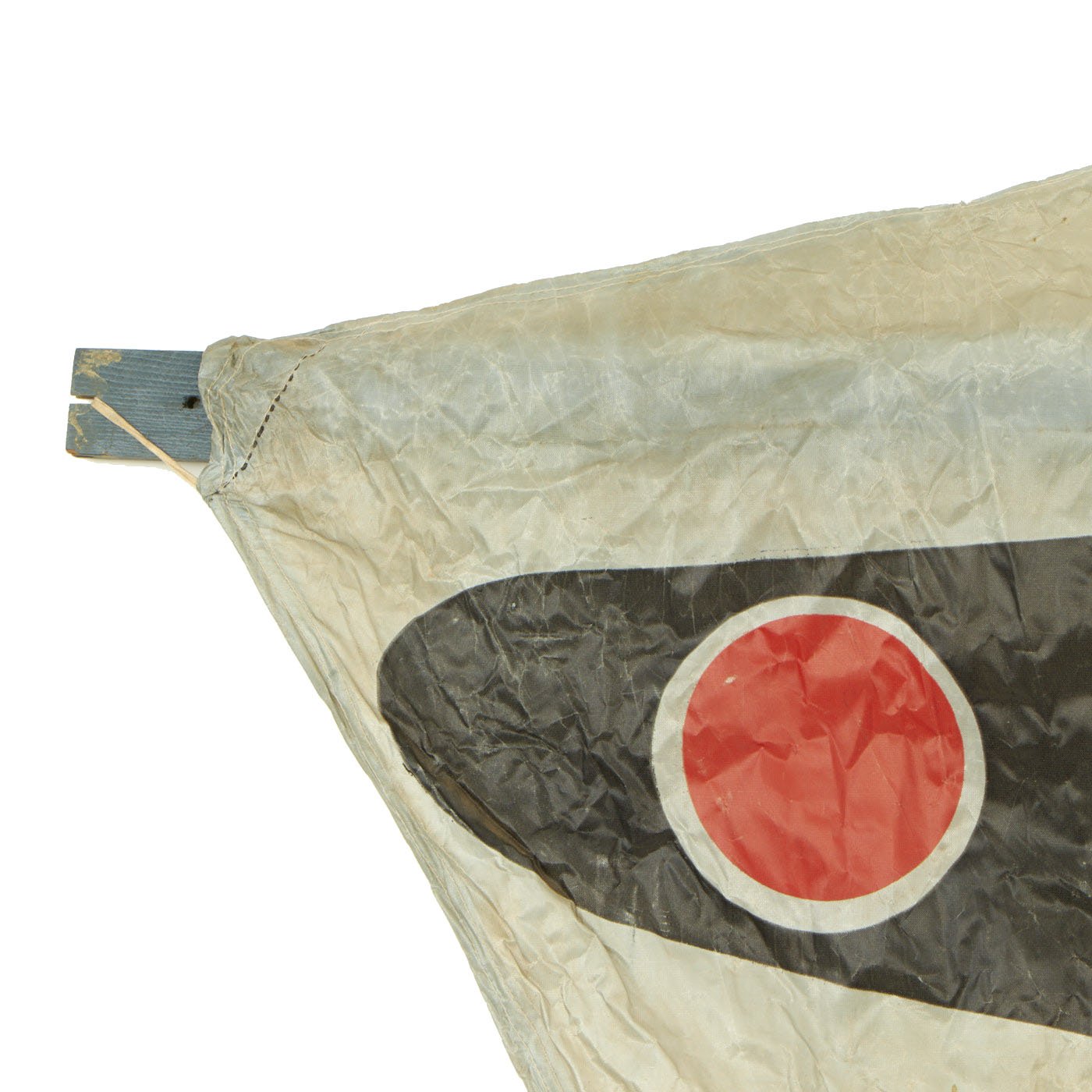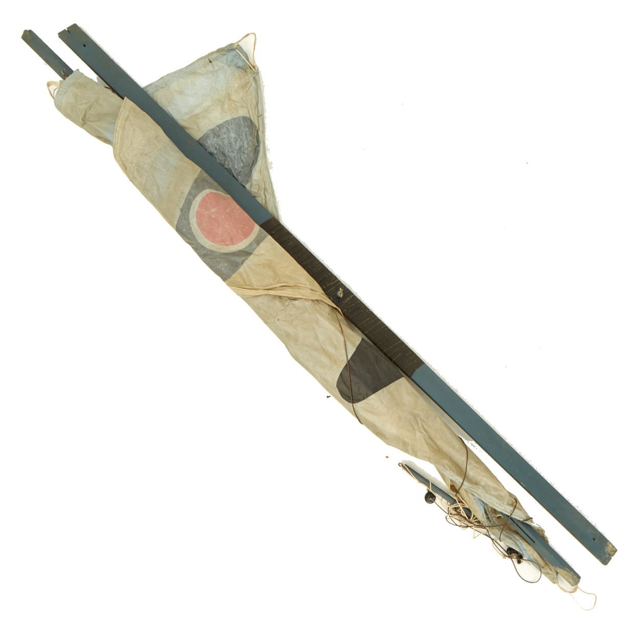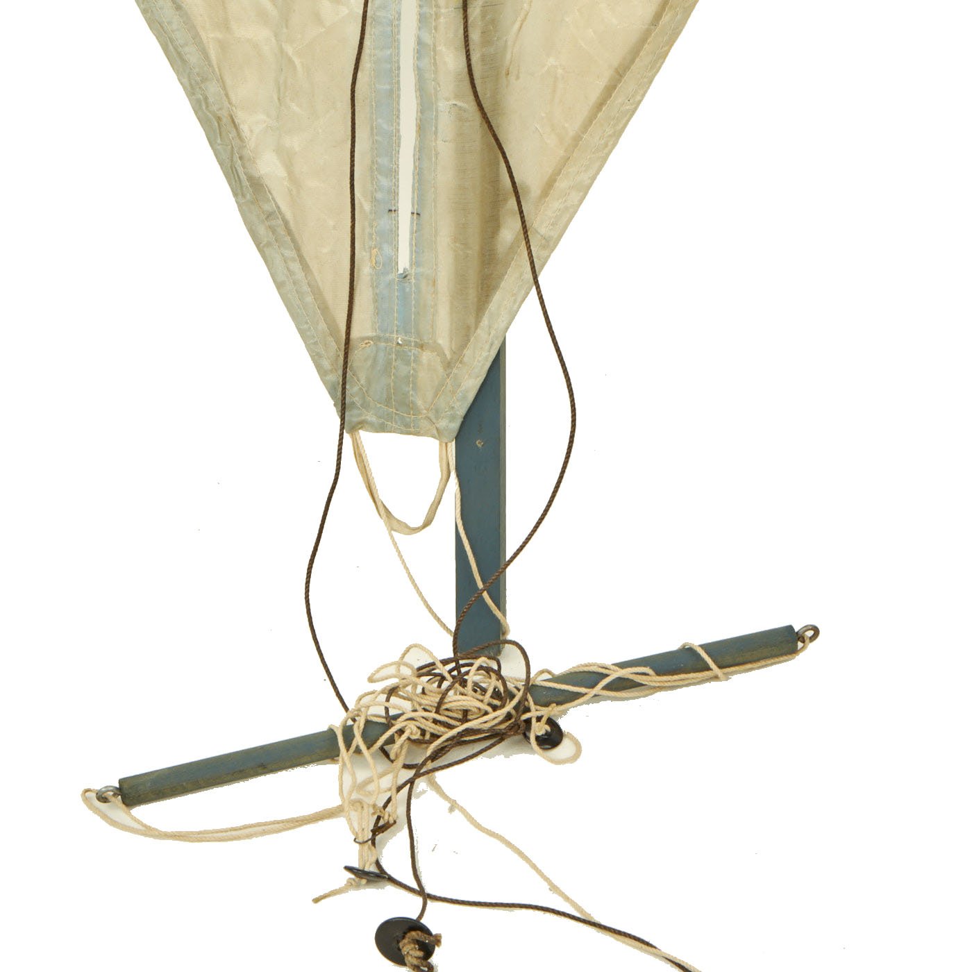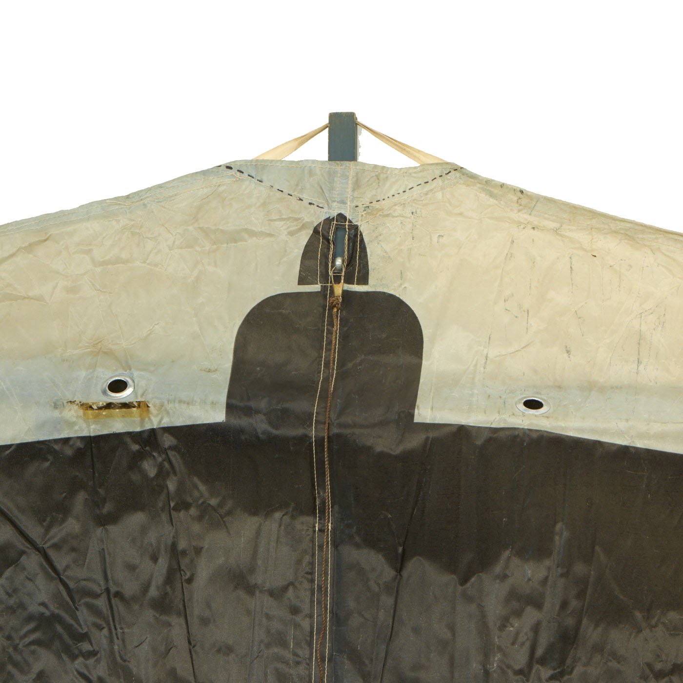 Measures approximately Length 63" Width: 53" and is offered in very good condition. These were used by both the Army and Navy for target practice. You occasionally encounter the "skins" with either a German or Japanese silhouette but one rarely sees original kite skeleton, rudder, and cables. The fabric has minor imperfections but overall a very appealing look. Very hard to find on today's market, usually only encountered in museums like the Smithsonian National Air and Space Museum in Washington DC.
