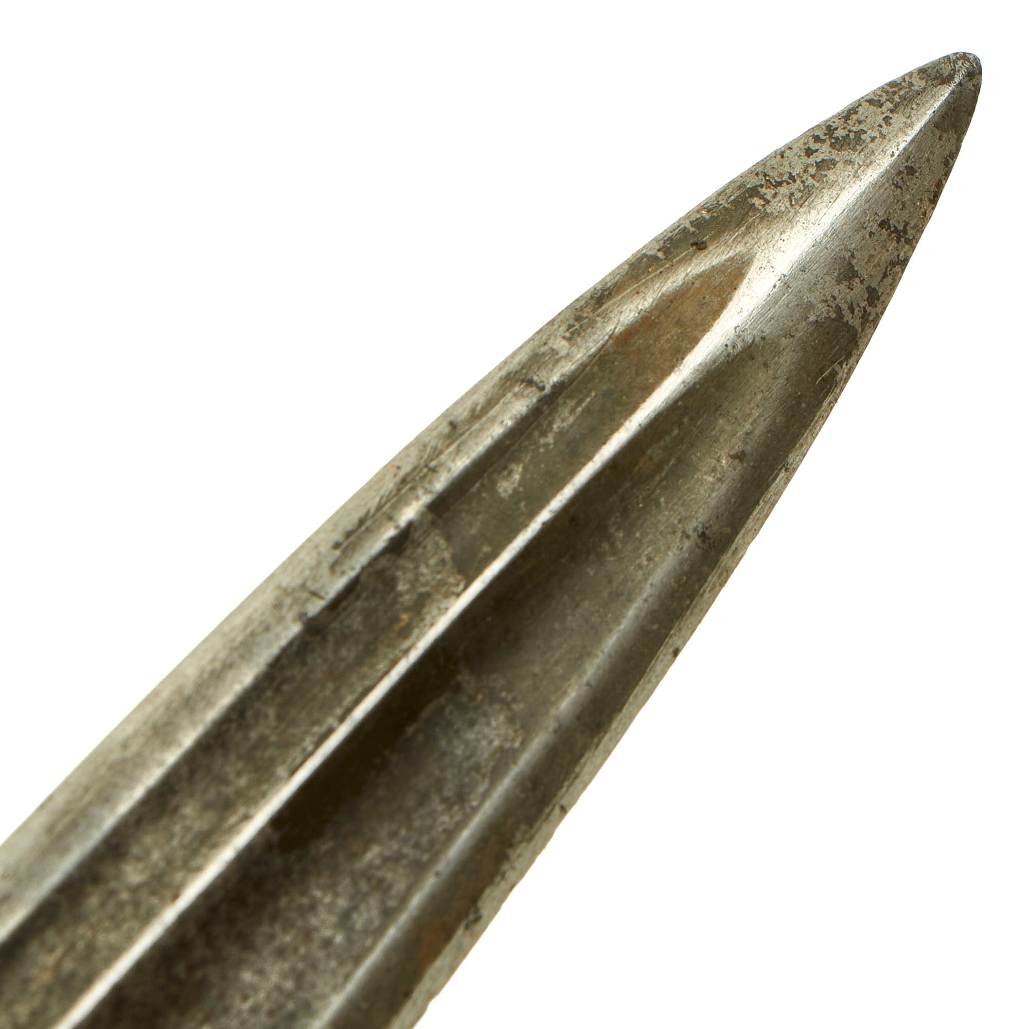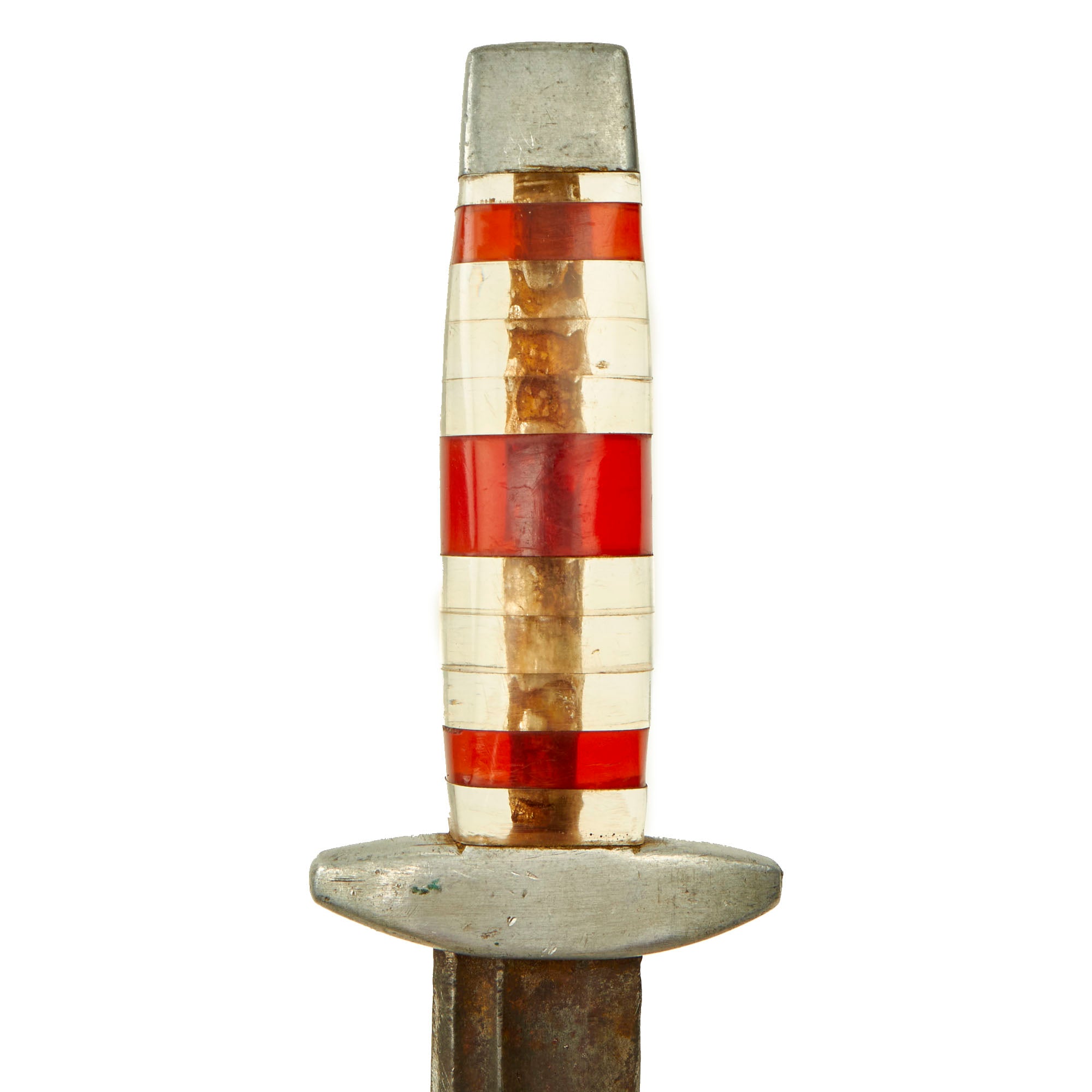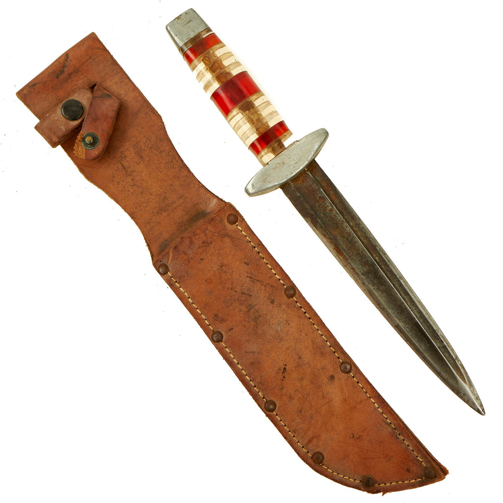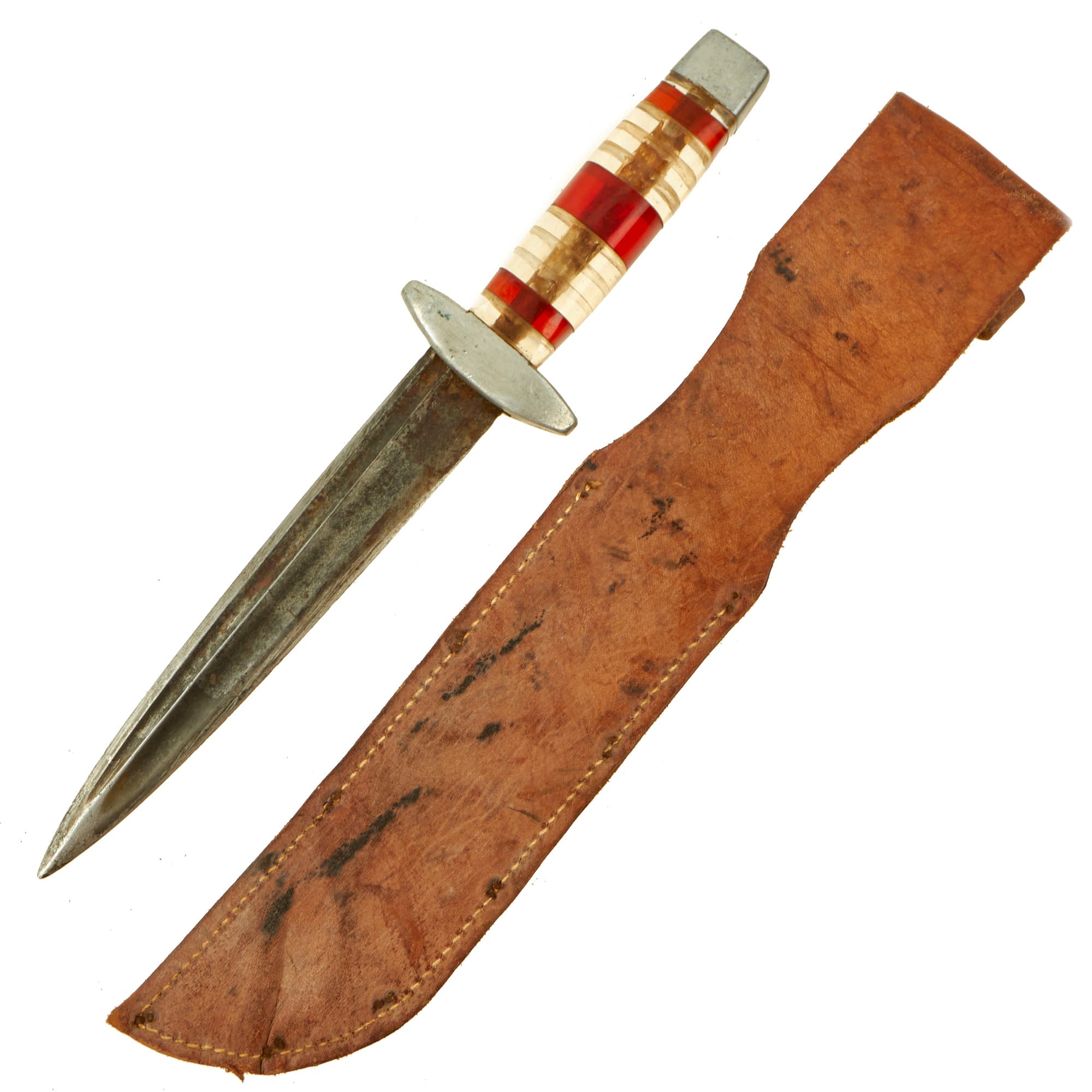 Original Item: One-Of-A-Kind. This is a wonderful U.S. WWII "Theater Made" fighting knife, 11 1/2 inches in length, with a 7 inch steel spear point blade. These knives were made by the armorers and engineers, usually in the Pacific theater. The large capital ships needed to have skilled fabricators on board to make repairs and modifications to weapons and gear.