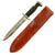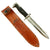 All markings have been removed from the ricasso for reasons unknown. The guard was modified as well, by removing the muzzle ring and latching mechanism the soldier now had a less cumbersome fighting knife. The included leather sheath appears to have been factory made and intended for another knife, but fits this knife almost perfectly. The leather is in great condition and shows signs of slight wear and use.
