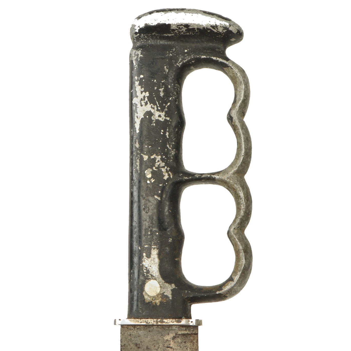 These knives were made by the armorers and engineers, usually in the Pacific theater. The large capital ships needed to have skilled fabricators on board to make repairs and modifications to weapons and gear. Usually the blades were made from existing weapons or from steel components, and the hilts were cast from metals such as aluminum or zinc.