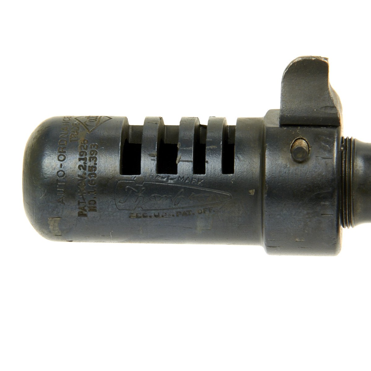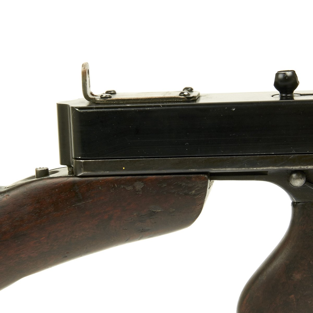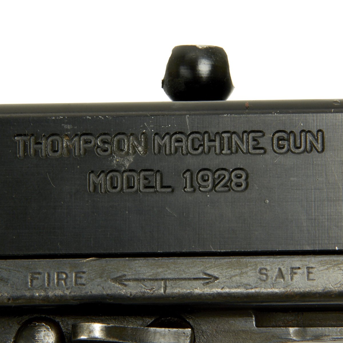 Original Item: Only One Available. This is a magnificent display gun built from excellent genuine WWII Thompson M-1928 parts and reassembled with a beautiful non-firing BATF approved new made anodized aluminum display receiver. Every part on this display gun is original WW2 manufacture other than the receiver. Original WW2 parts include: