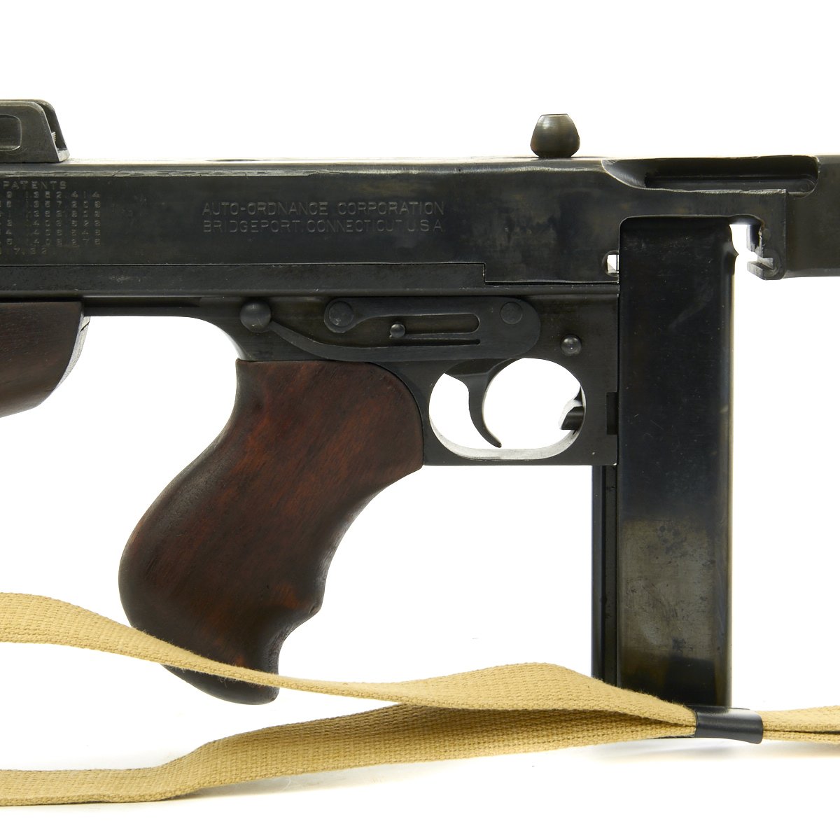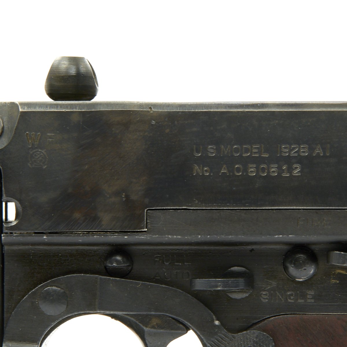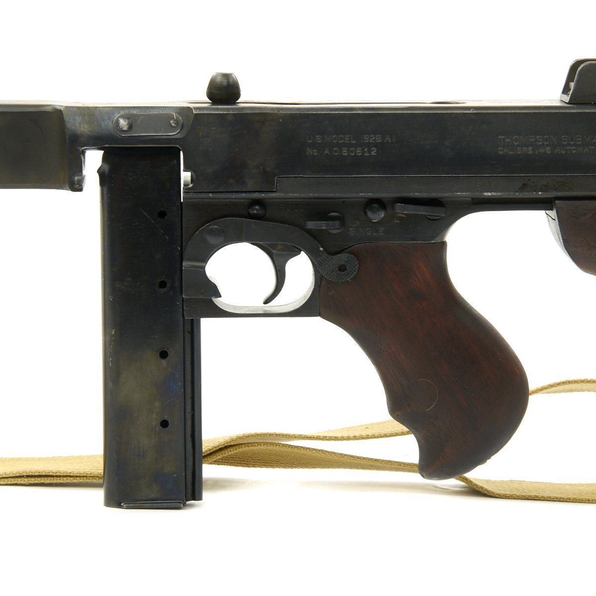 - 80% original reassembled ATF approved non-firing receiver (complete with original arsenal markings!) - Serial No. A.O.50512, indicating production by Auto-Ordnance, the company that designed the Thompson SMG.