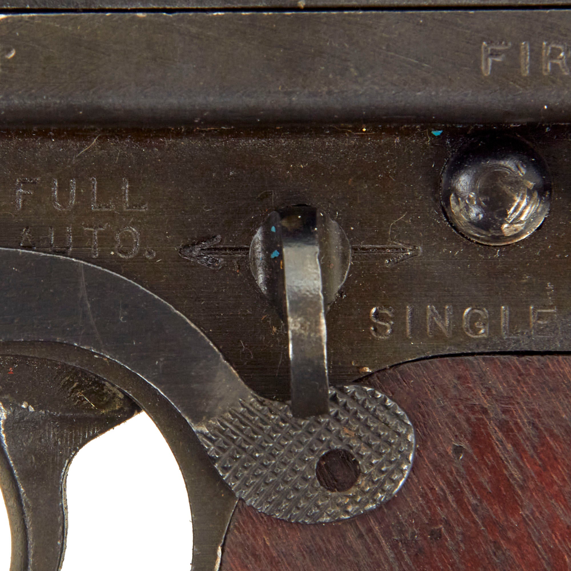 - 80% original reassembled ATF approved non-firing receiver (complete with original arsenal markings!) - Serial No. A.O. 67552, indicating production by Auto-Ordnance, the designer of the Thompson Submachine Gun.