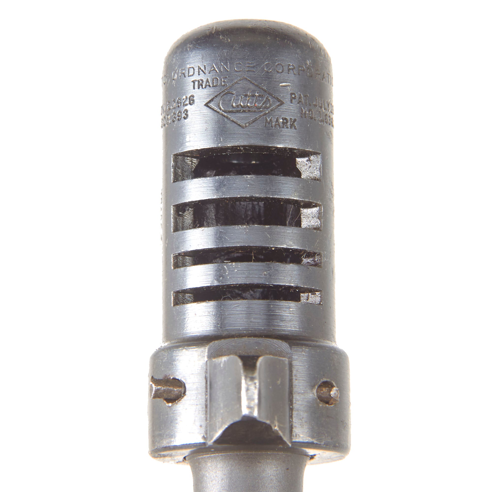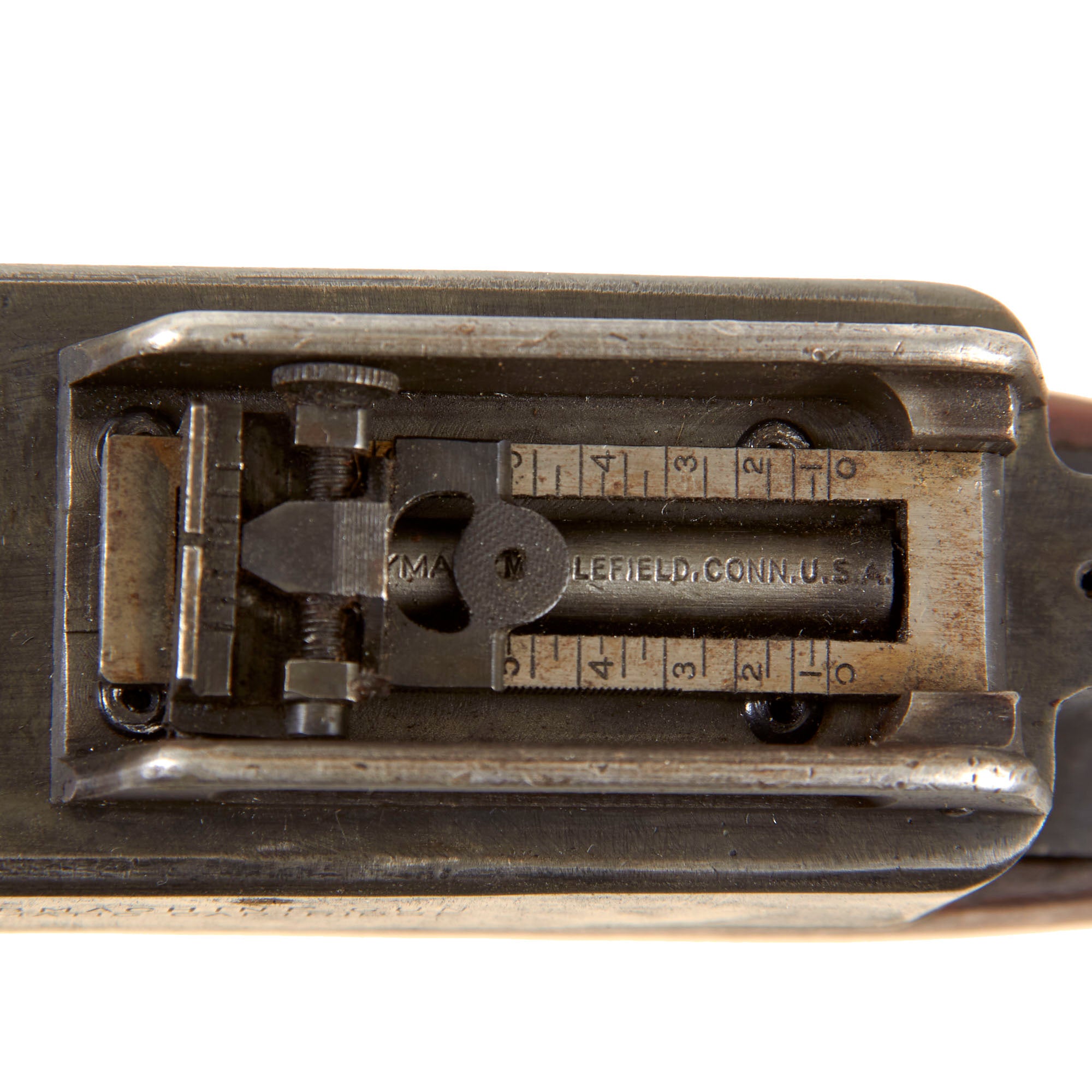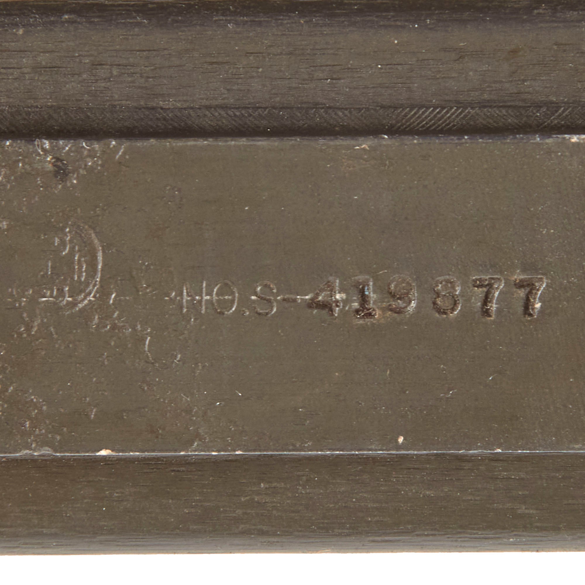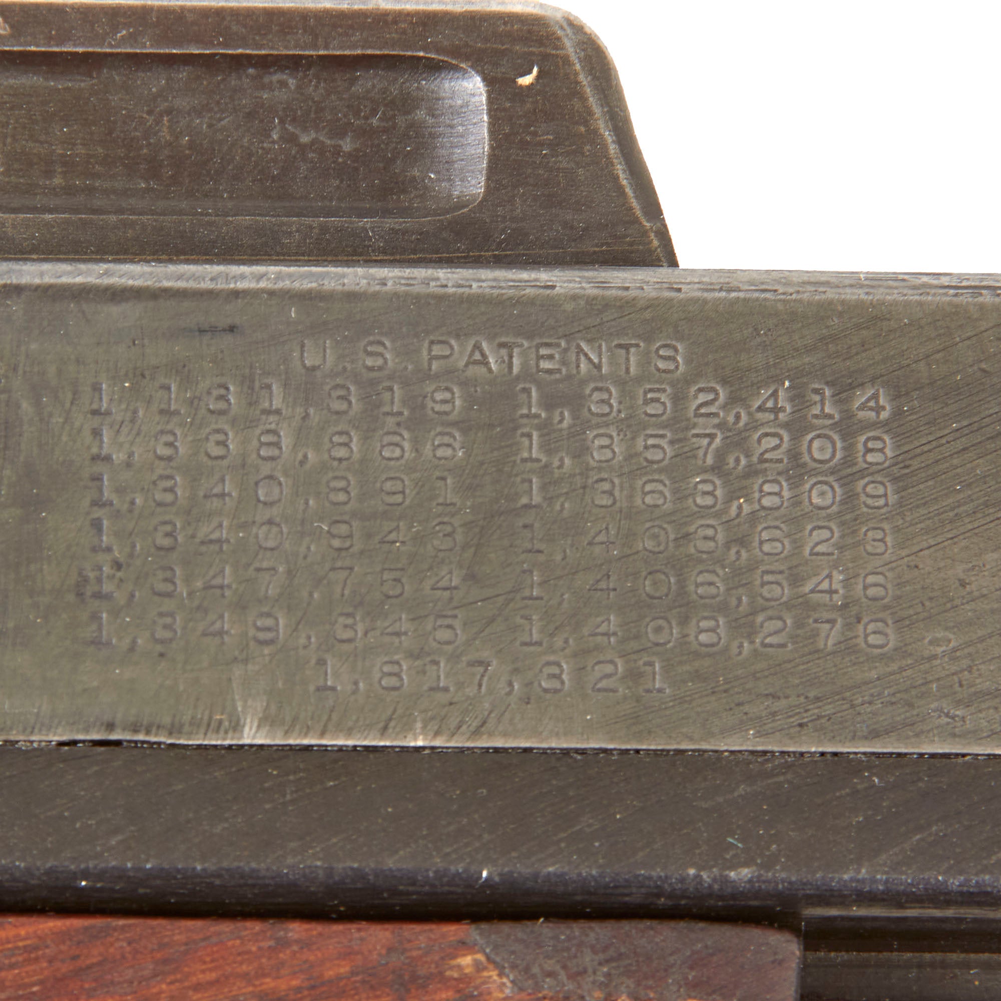 This example is typical of the early war issue Thompson M1928A1, with the more delicate adjustable Lyman Sight. It also has the early style buttstock, without the reinforcement bolt, and the sling swivel mounts are both the correct machined steel type. It has beautifully finished walnut furniture that has that red brown color only achieved after years of age, showing some great service wear on the fore grip and butt stock. The metalwork has a lovely aged patina, still retaining a lot of the original finish, while also showing wear from service.