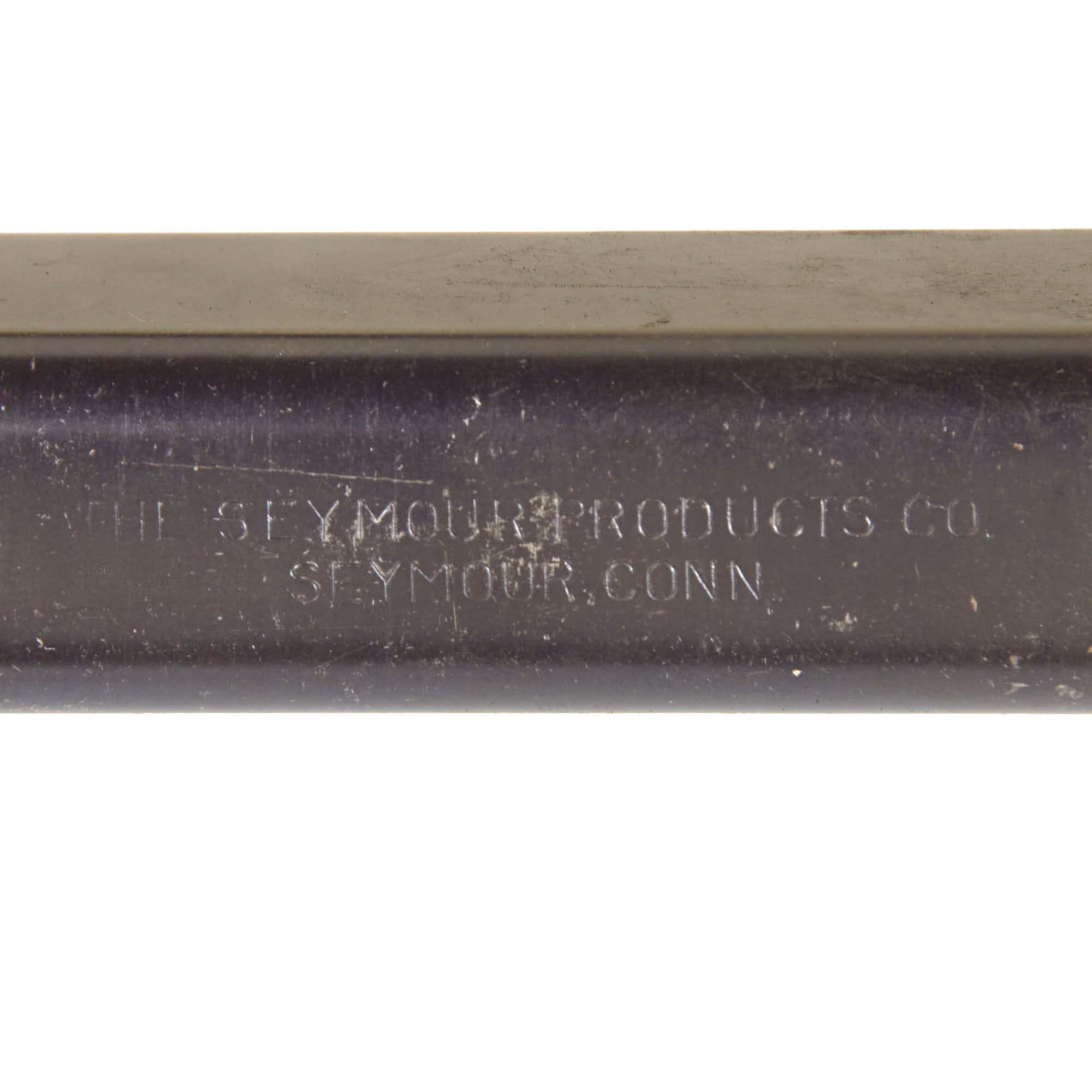 It has properly had a 25% section of the total length completely replaced entirely with solid steel bar stock. Meaning a 1/4 length section of the display receiver is solid steel, making this totally legal to own without a license of any kind. Every part on this display gun is original WWII manufacture other than 25% of the receiver replaced by solid steel. Additionally, an original bolt and actuator have been installed, welded into the forward position as required by the BATF, and other deactivated components may have been included as well. The barrel is live and has not been deactivated.