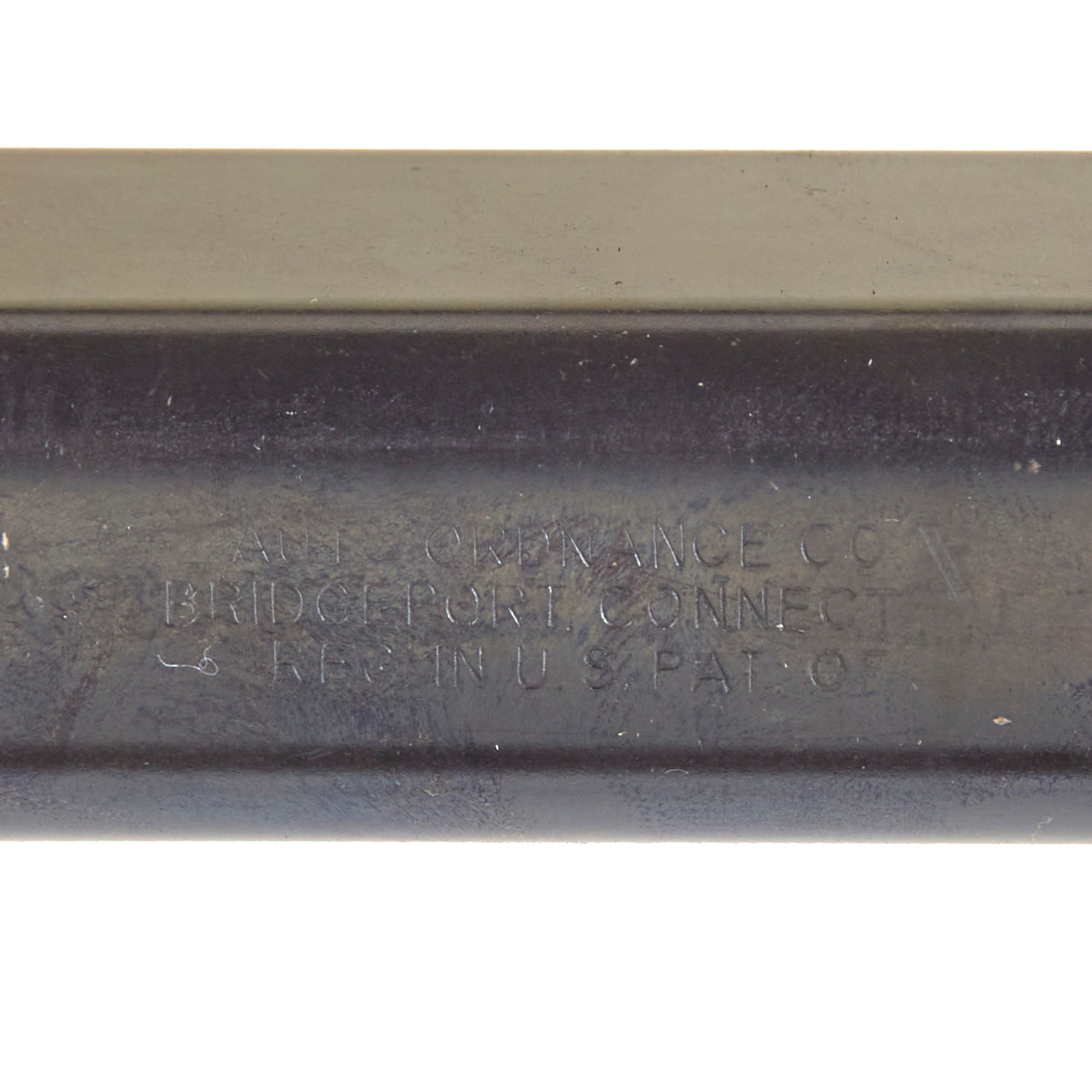 It has properly had a 25% section of the total length completely replaced entirely with solid steel bar stock. Meaning a 1/4 length section of the display receiver is solid steel, making this totally legal to own without a license of any kind. Every part on this display gun is original WWII manufacture other than the portions of solid steel replaced in the receiver (as required by BATF) and the replicated cocking handle.